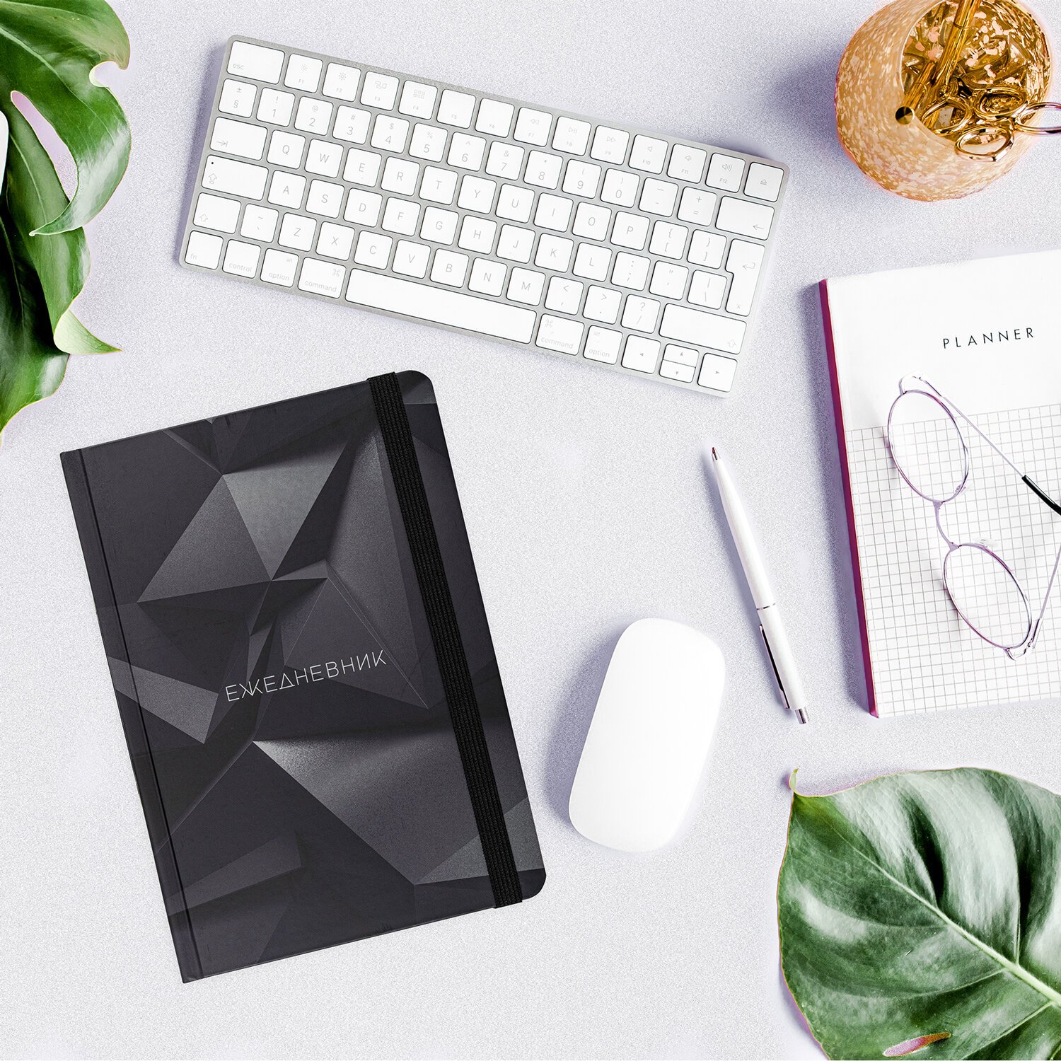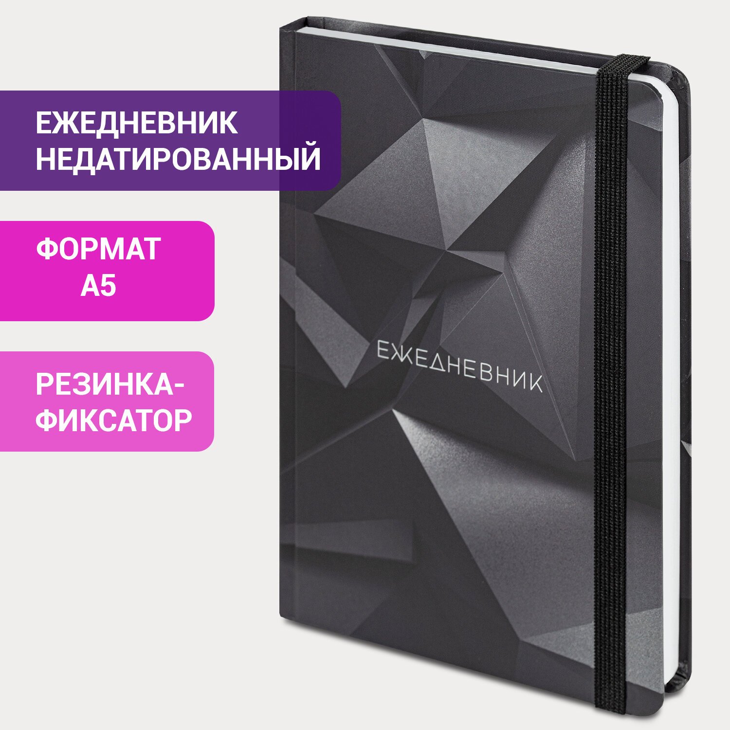 Ежедневник недатированный с резинкой А5 (145х203 мм), BRAUBERG, твердый, 128 л., "Geometry", 114553