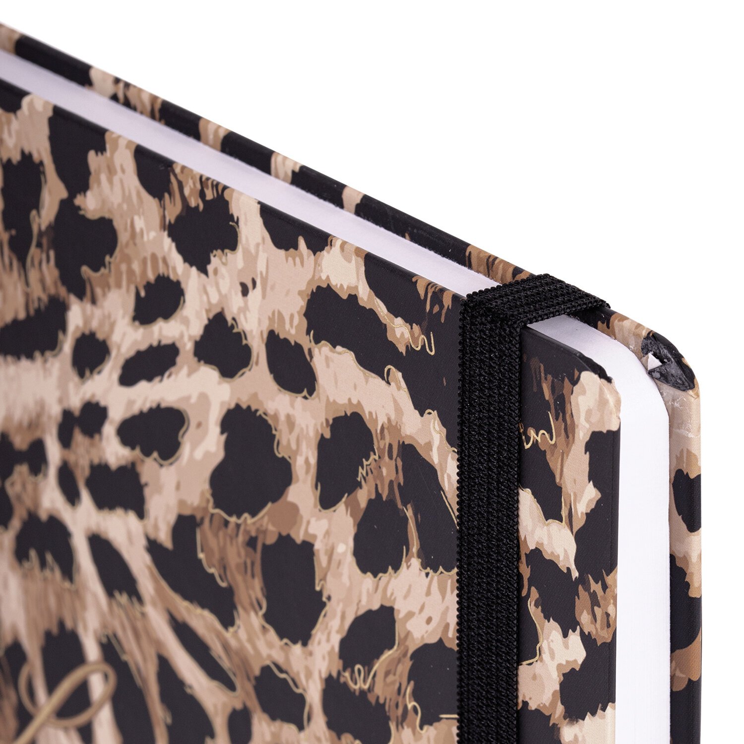 Ежедневник недатированный с резинкой А5 (145х203 мм), BRAUBERG, твердый, фольга, 128 л., "Leopard", 114561