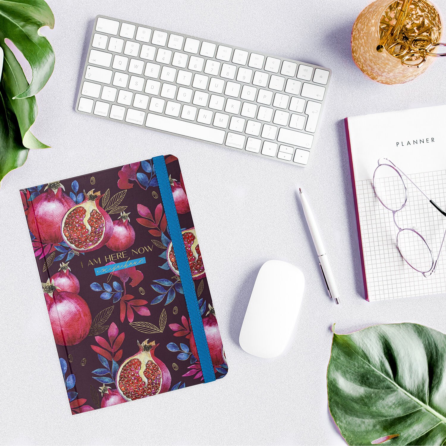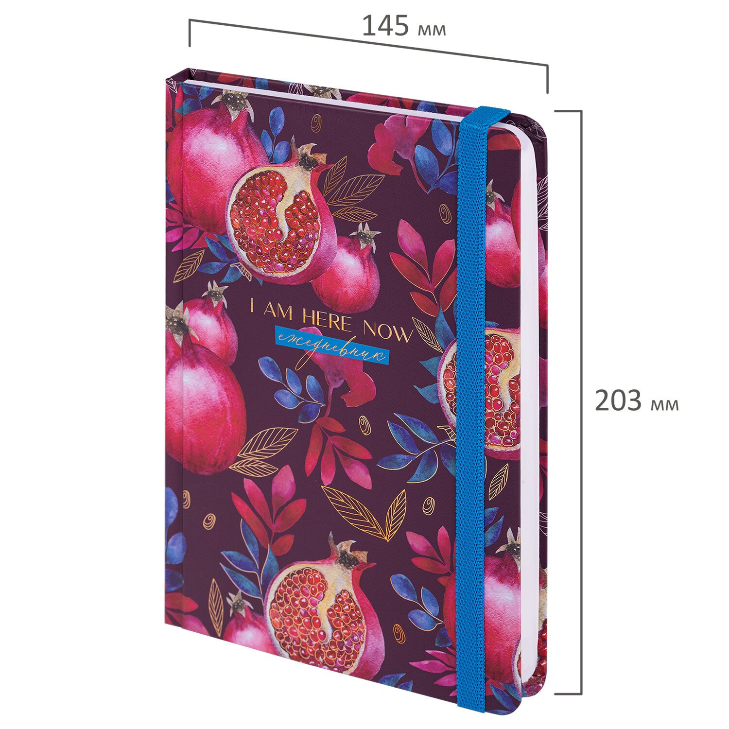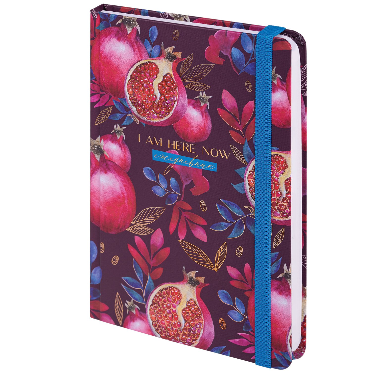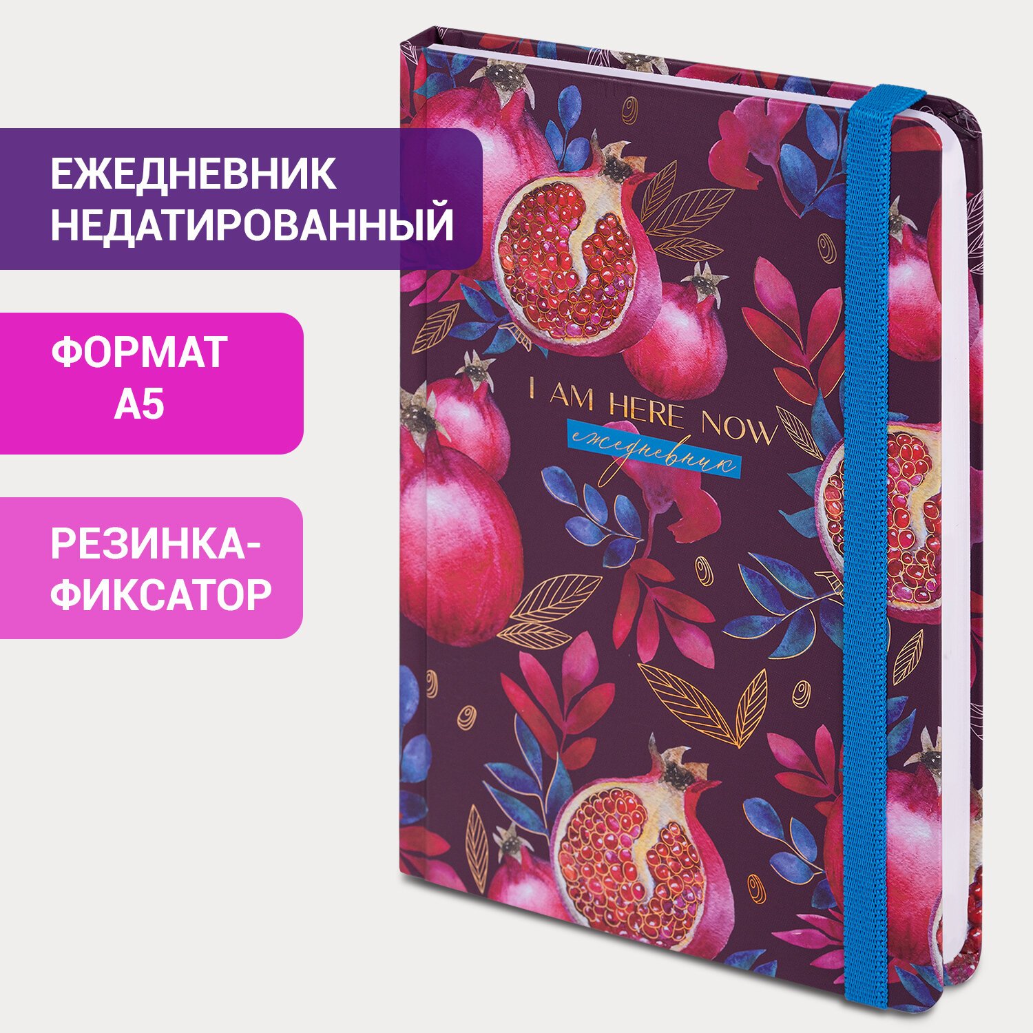 Ежедневник недатированный с резинкой А5 (145х203 мм), BRAUBERG, твердый, фольга, 128 л., "Pomegranate", 114562
