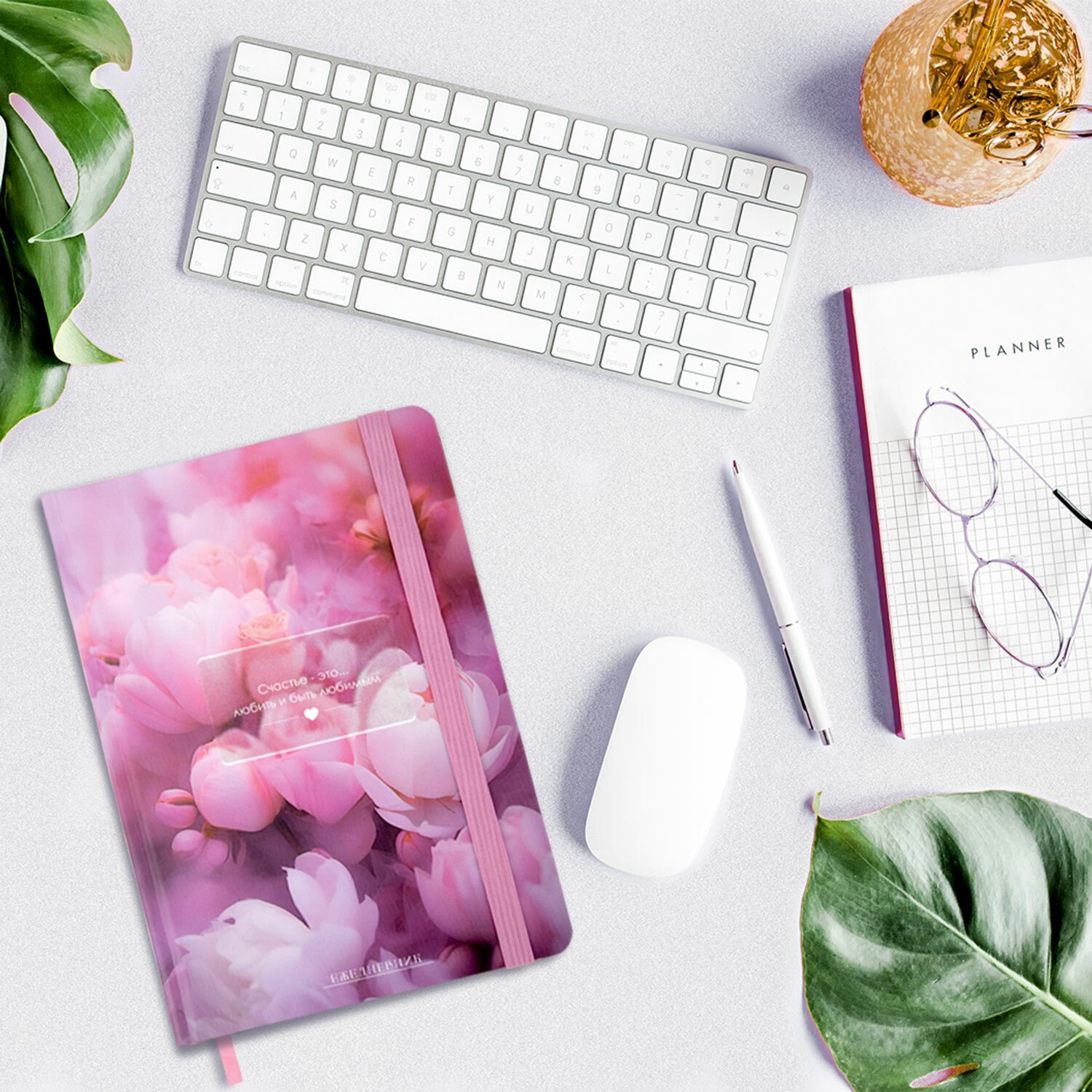 Ежедневник недатированный с резинкой А5 145х203мм, BRAUBERG, твердый, 128л, Peony, 116290