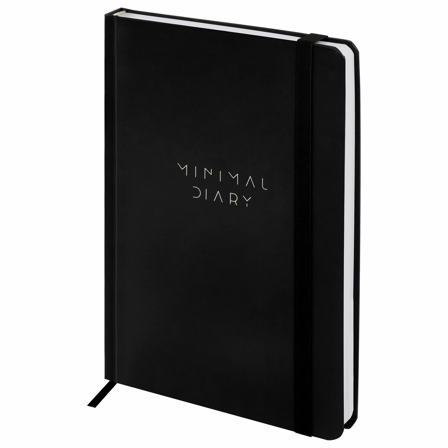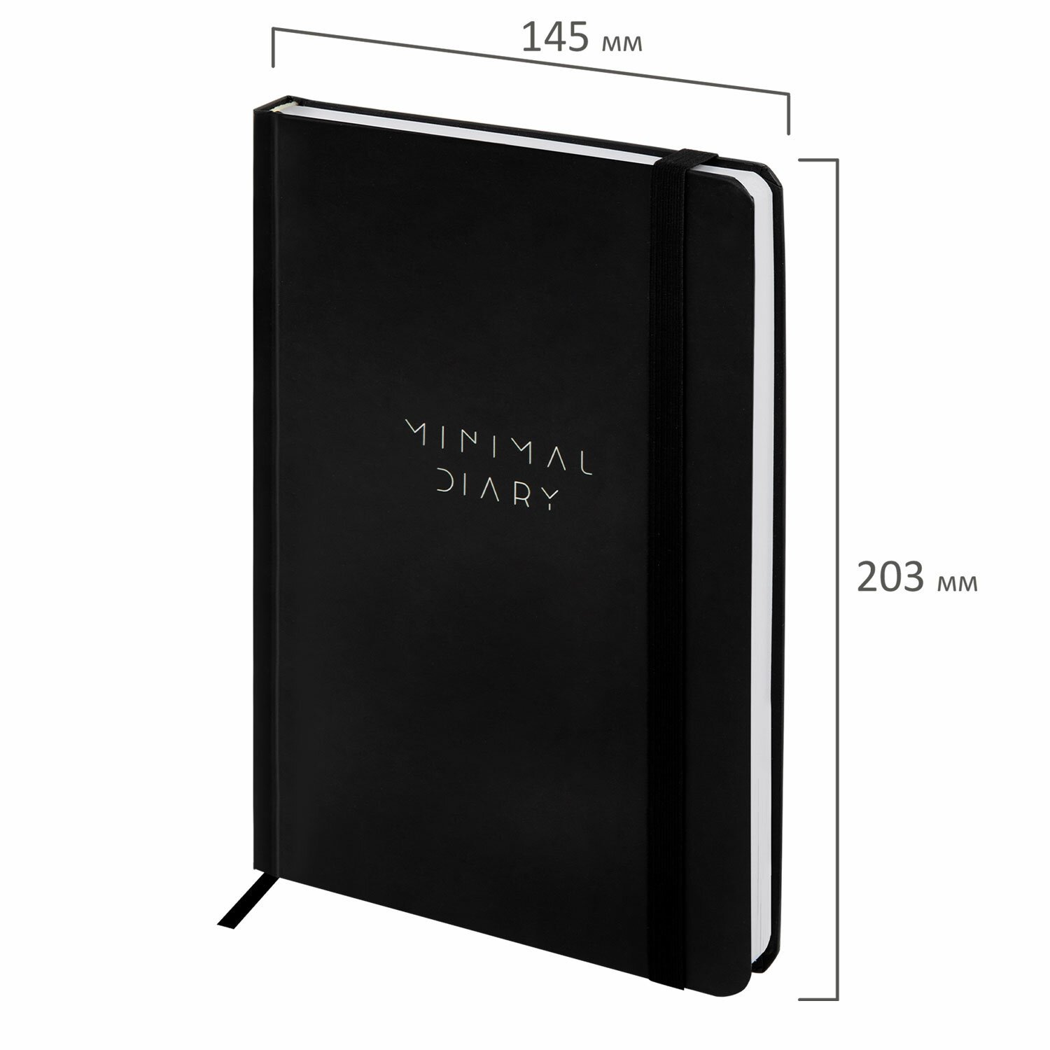 Ежедневник недатированный с резинкой А5 145х203мм, BRAUBERG, твердый, черный, 128л, Minimal, 116284