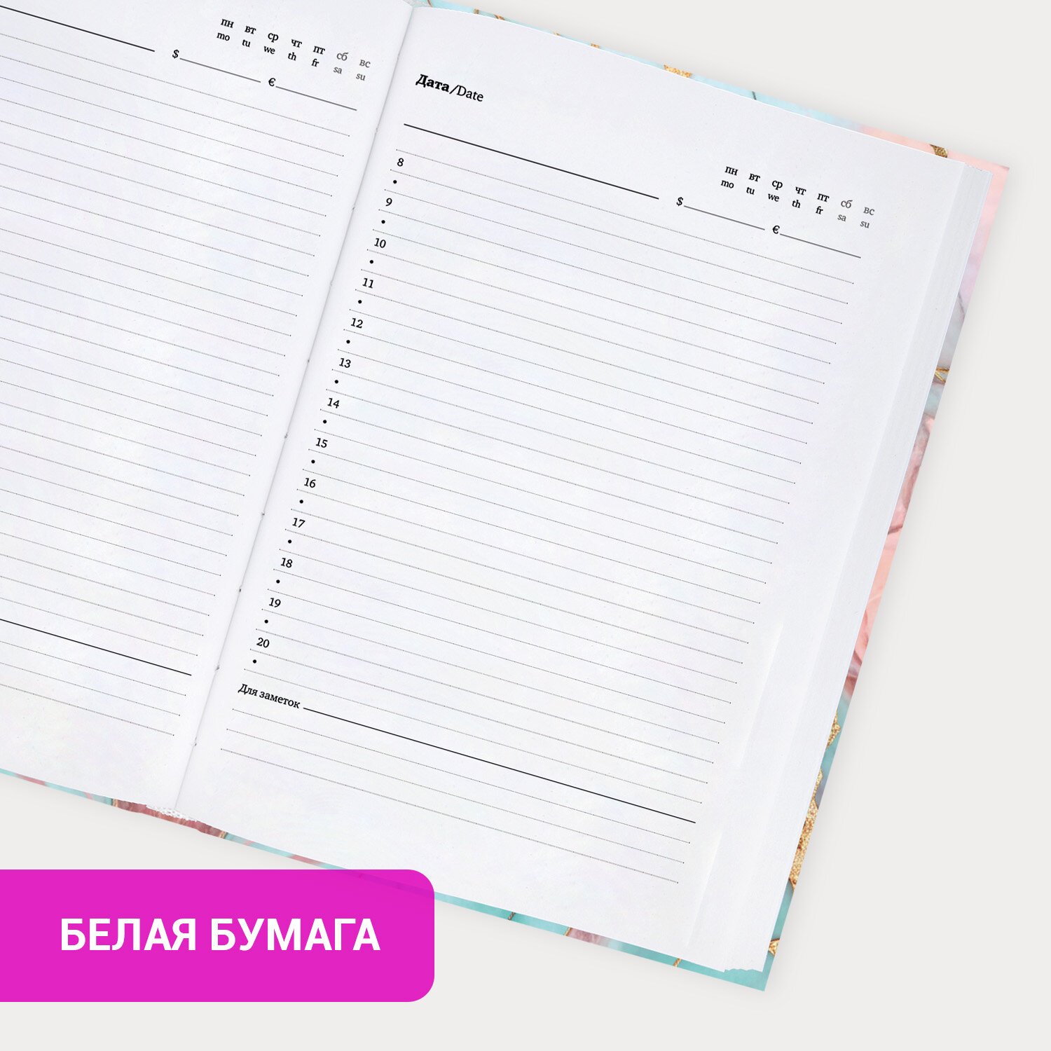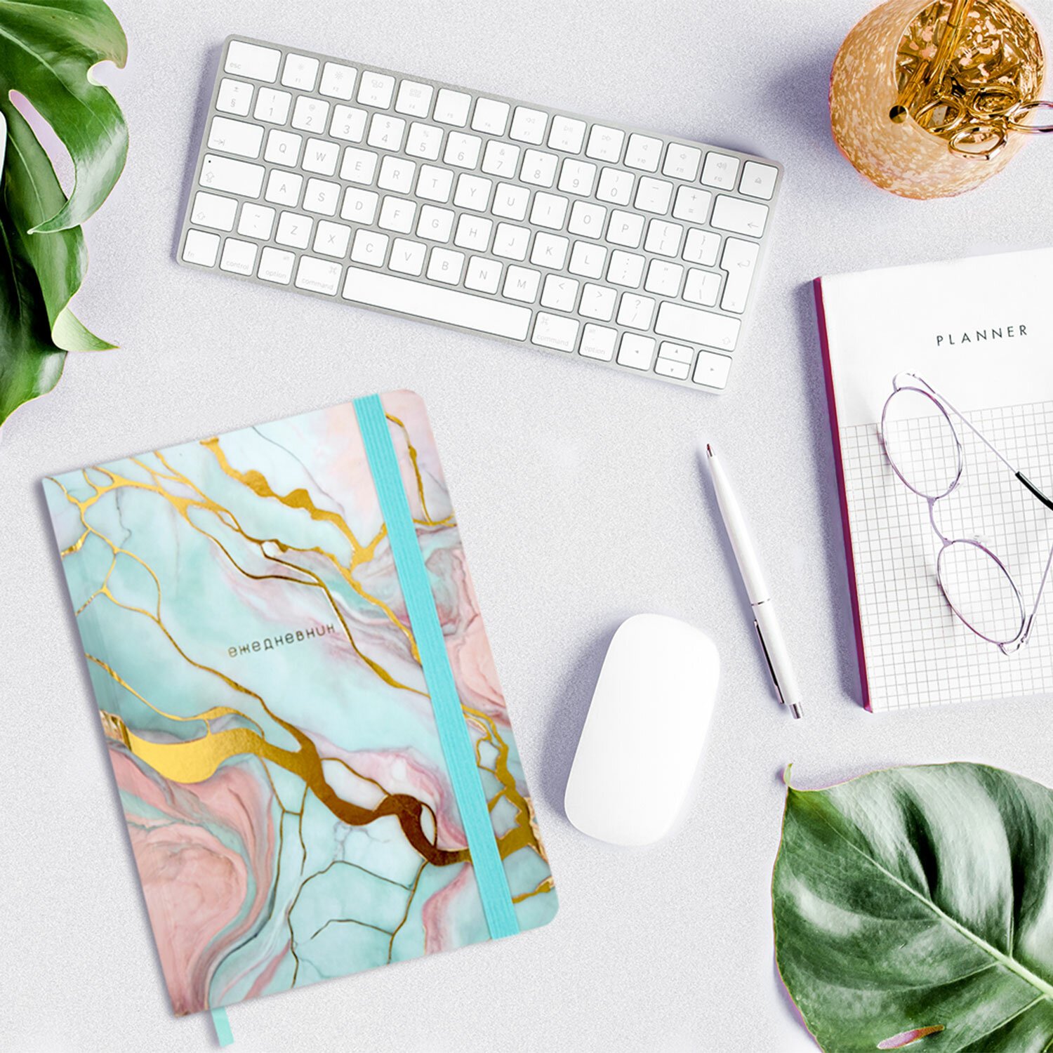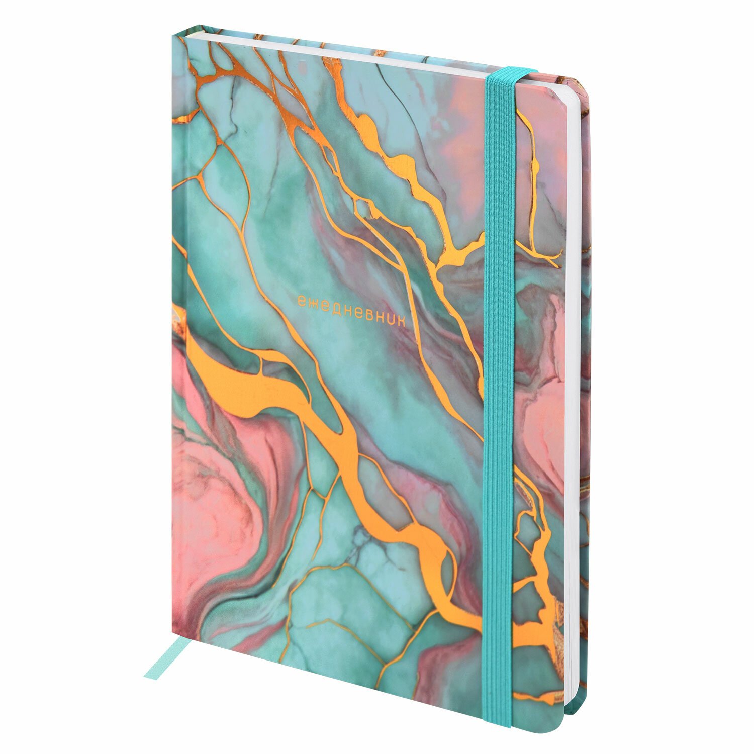 Ежедневник недатированный с резинкой А5 145х203мм BRAUBERG твердый, фольга,128л, Marble stone,116292
