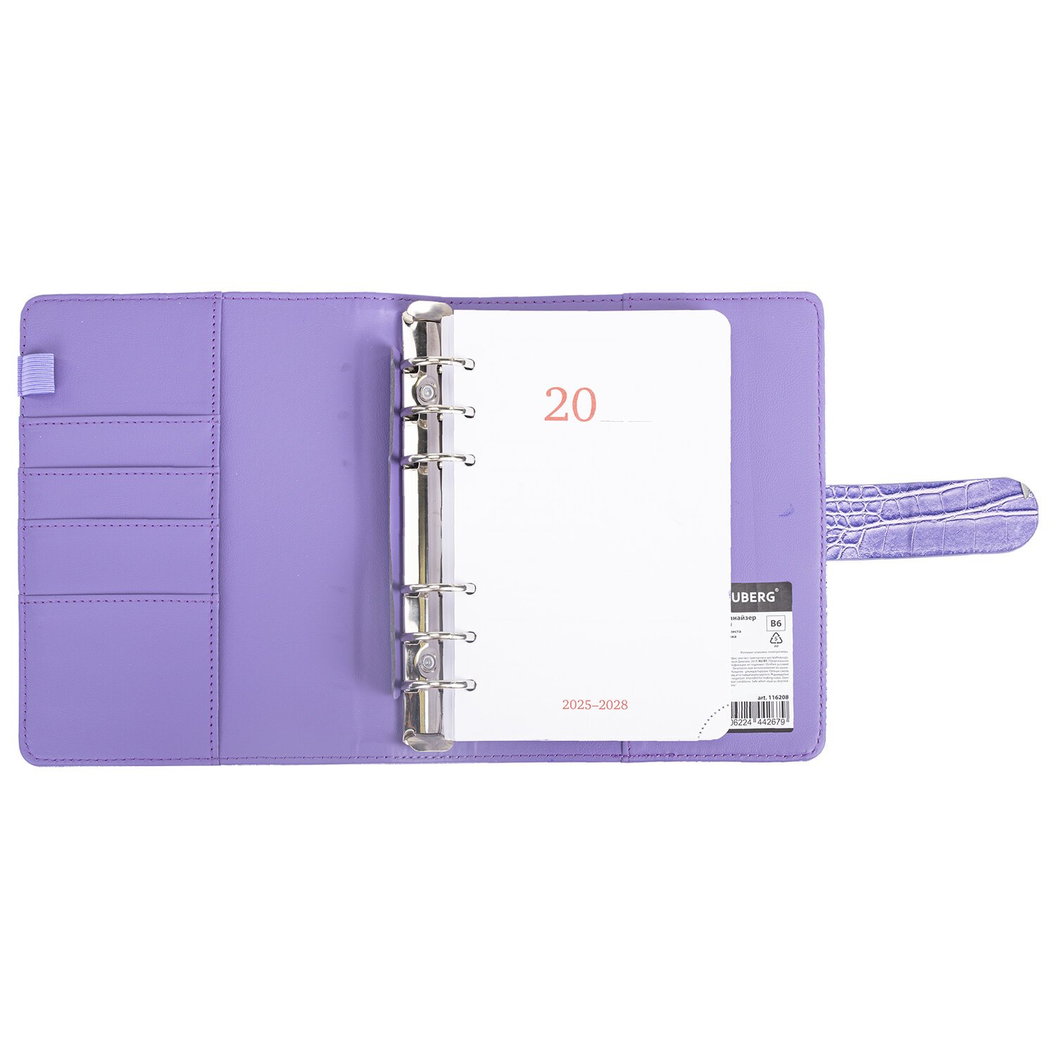 Ежедневник-органайзер недатированный B6 150x190мм BRAUBERG "Comodo", под кожу, 160л, сиреневый, 116208