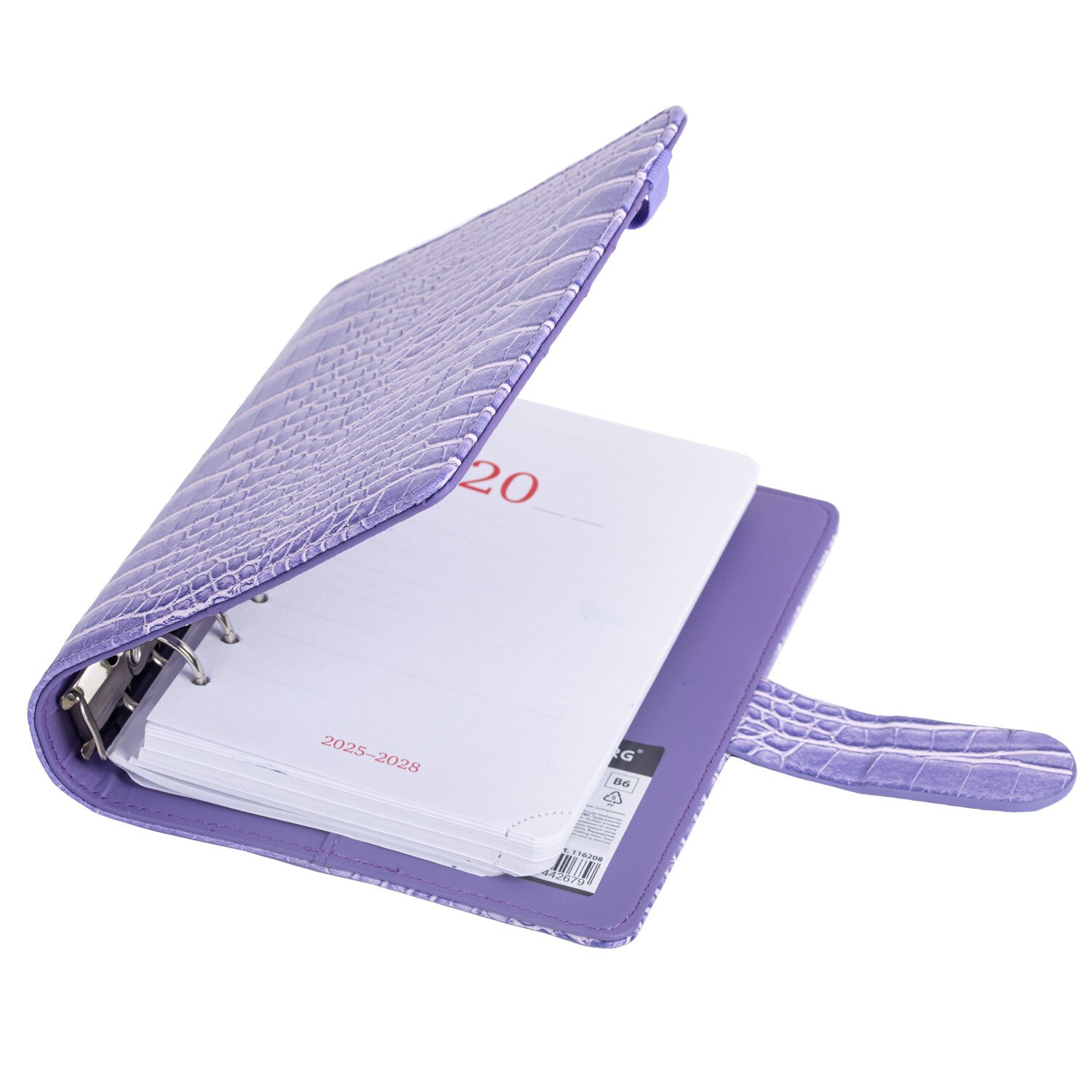 Твердая обложка с кольцевым механизмом оснащена дополнительными карманами для хранения бумаг, карточек и мелочей. Съемный внутренний блок включает 160 листов белой бумаги плотностью 70 г/м2. Благодаря формату B6+ (150x190мм) ежедневник удобно использовать как в офисе, так и на выездных деловых встречах.