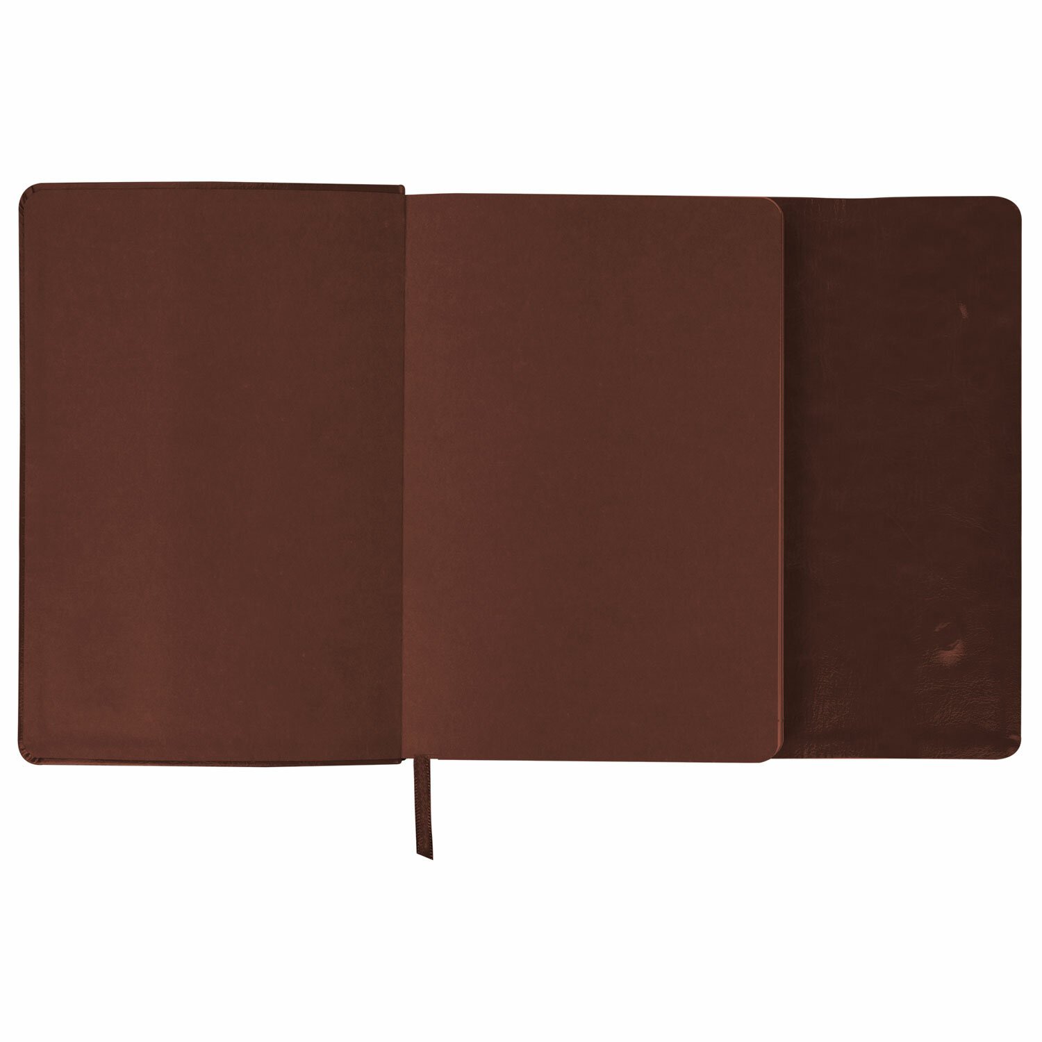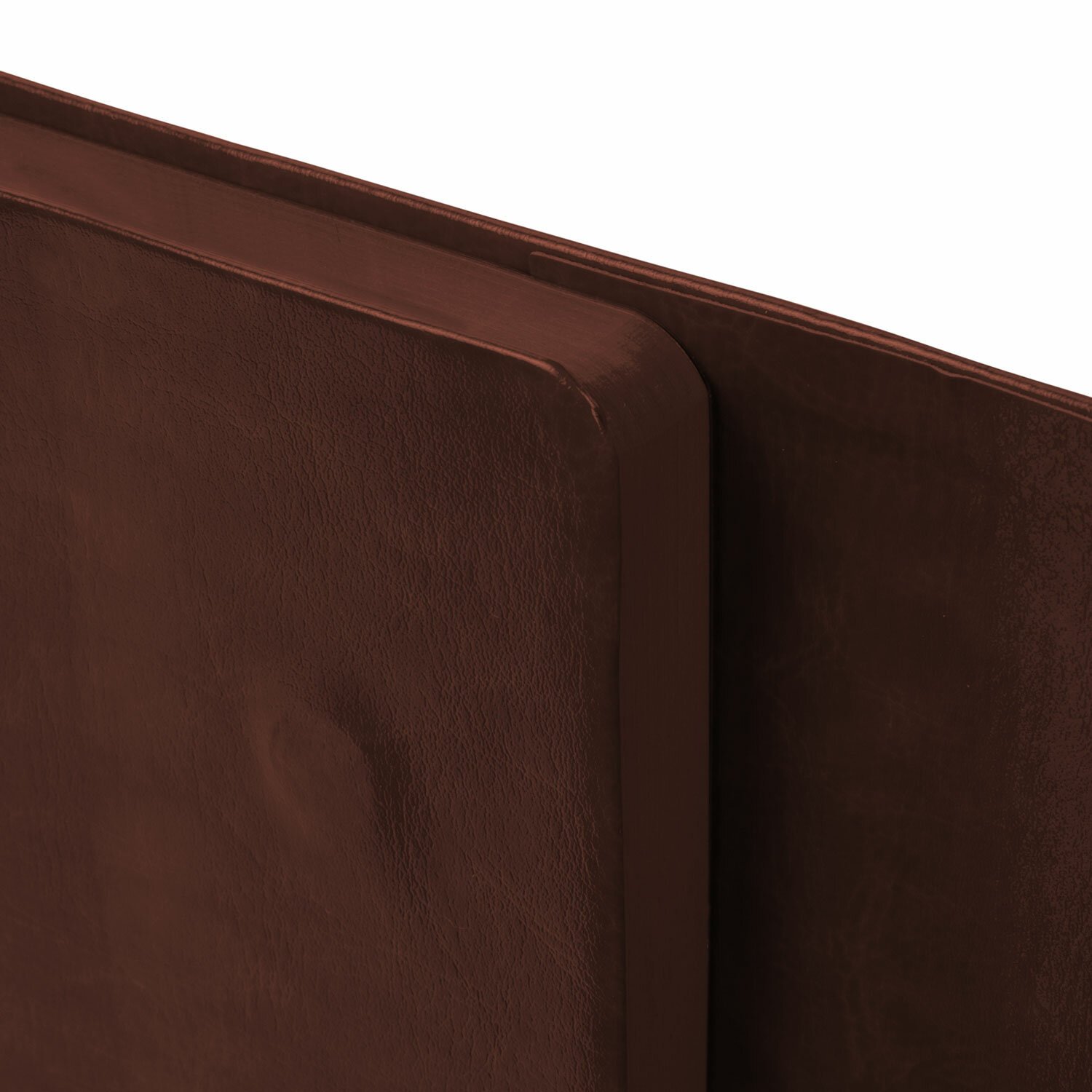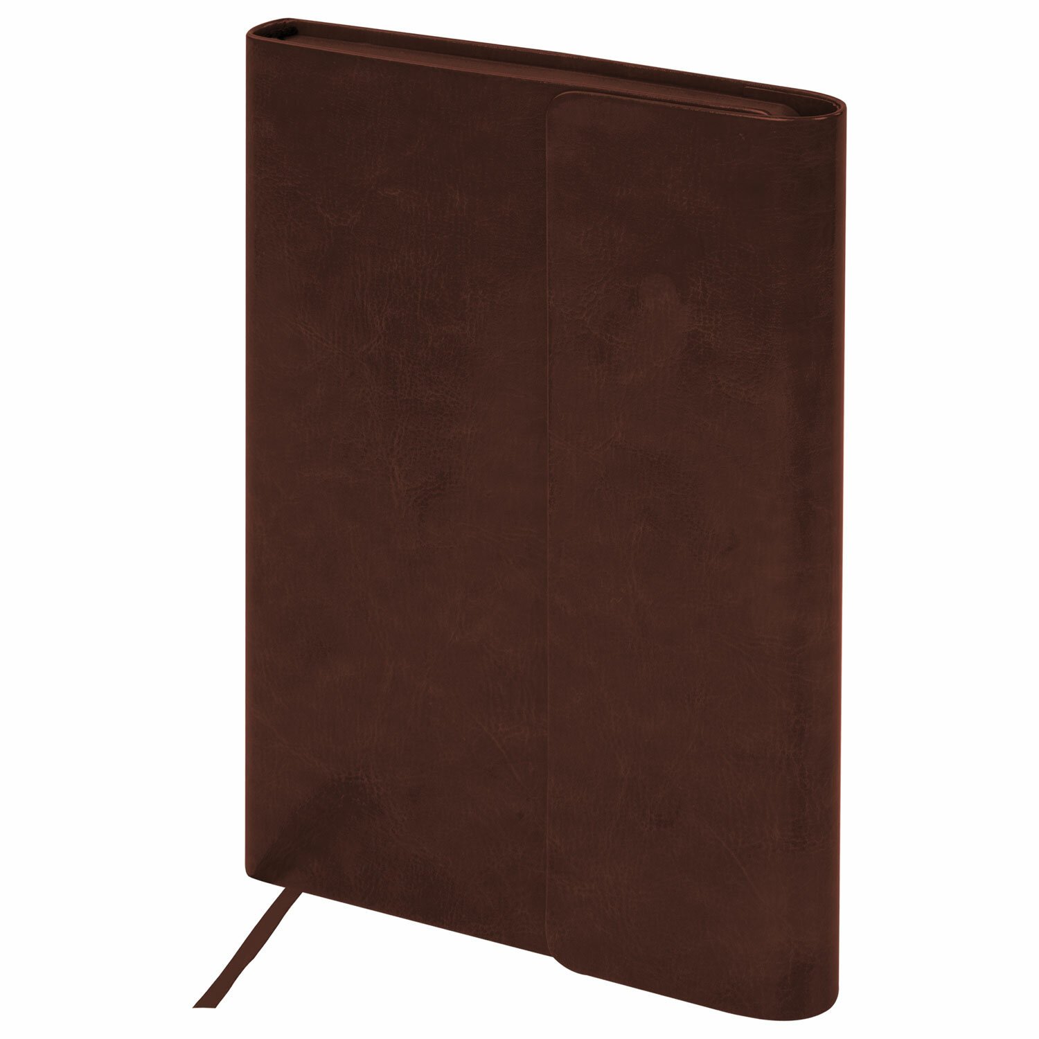 Внутренний блок включает 160 листов белой бумаги плотностью 70 г/м2. Каждая страничка имеет перфорированный угол. Благодаря стандартному формату А5 ежедневник удобно использовать как в офисе, так и на выездных деловых встречах. Интегральная (мягкая) обложка, выполненная в классическом коричневом цвете и стилизованная под гладкую кожу, фиксируется магнитным клапаном, поэтому ежедневник не откроется в сумке или портфеле и страницы не помнутся. Подходит для горячего тиснения.