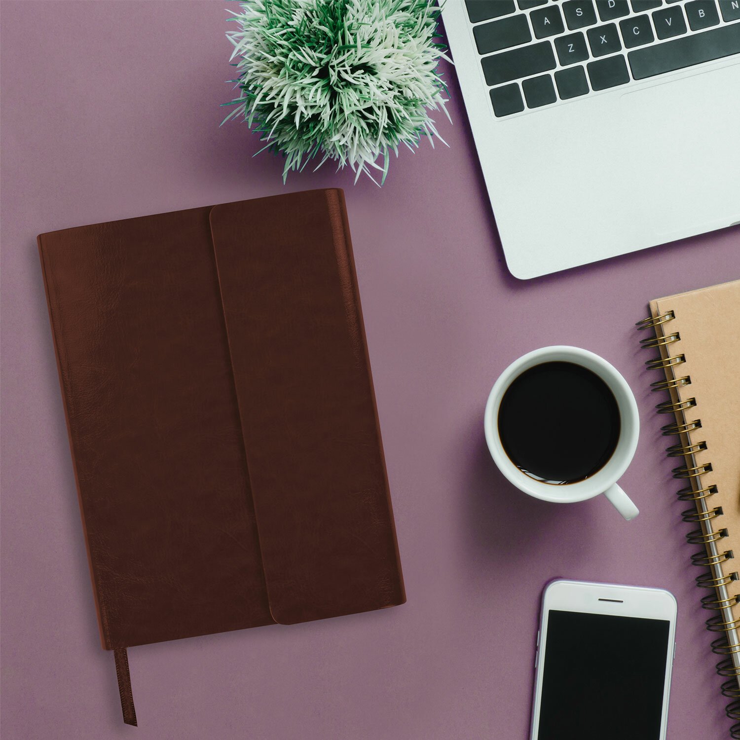 Ежедневник с магнитным клапаном недатированный, под кожу, А5, коричневый, BRAUBERG "Magnetic X", 113280