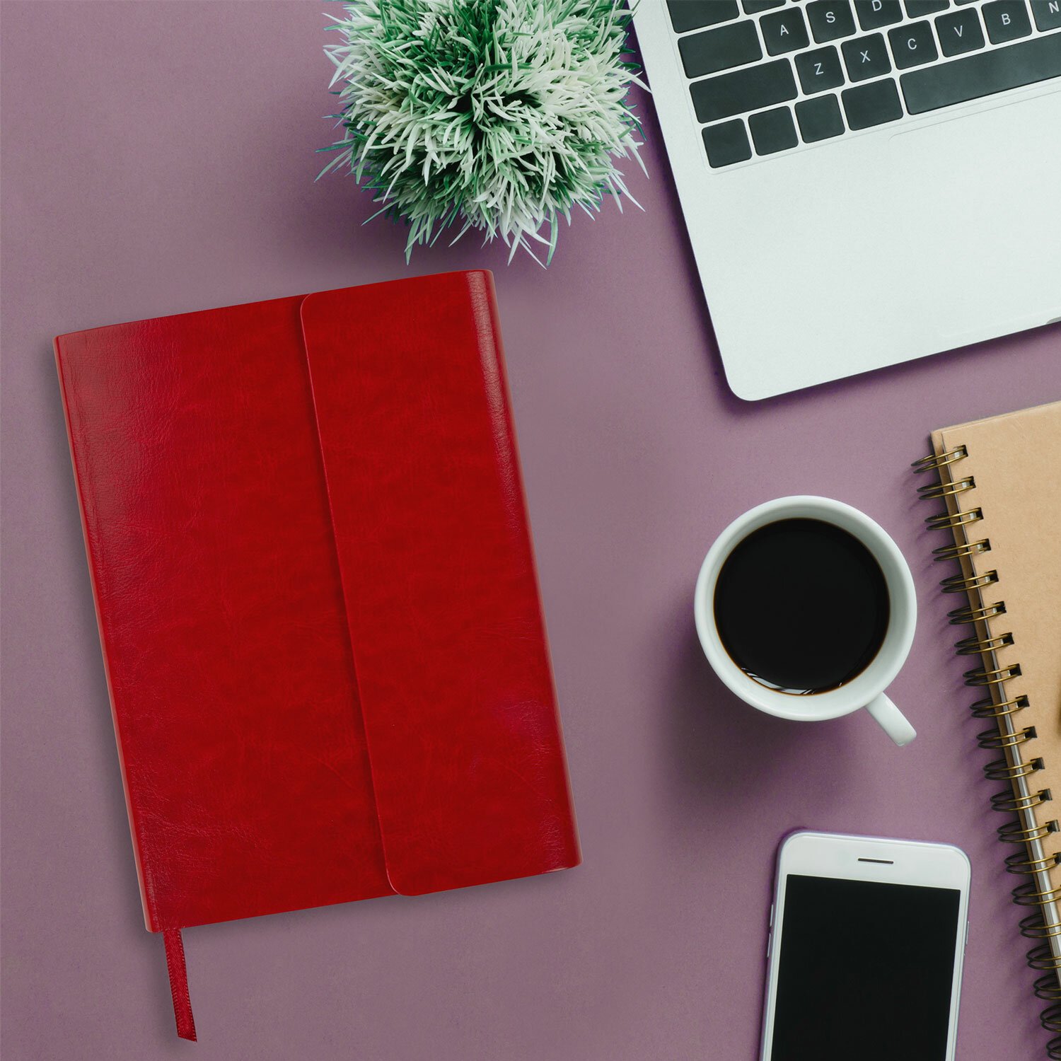 Ежедневник с магнитным клапаном недатированный, под кожу, А5, красный, BRAUBERG "Magnetic X", 113281