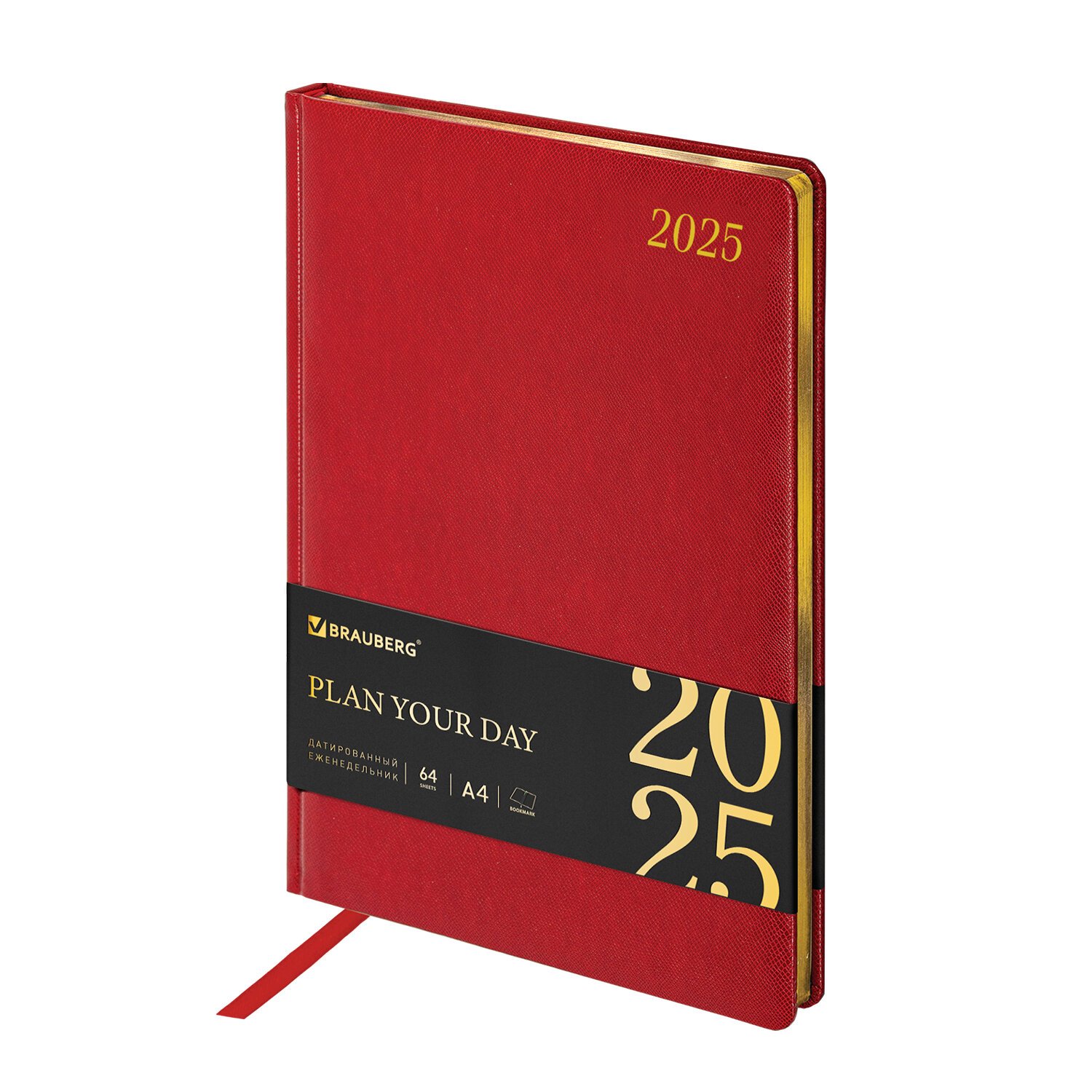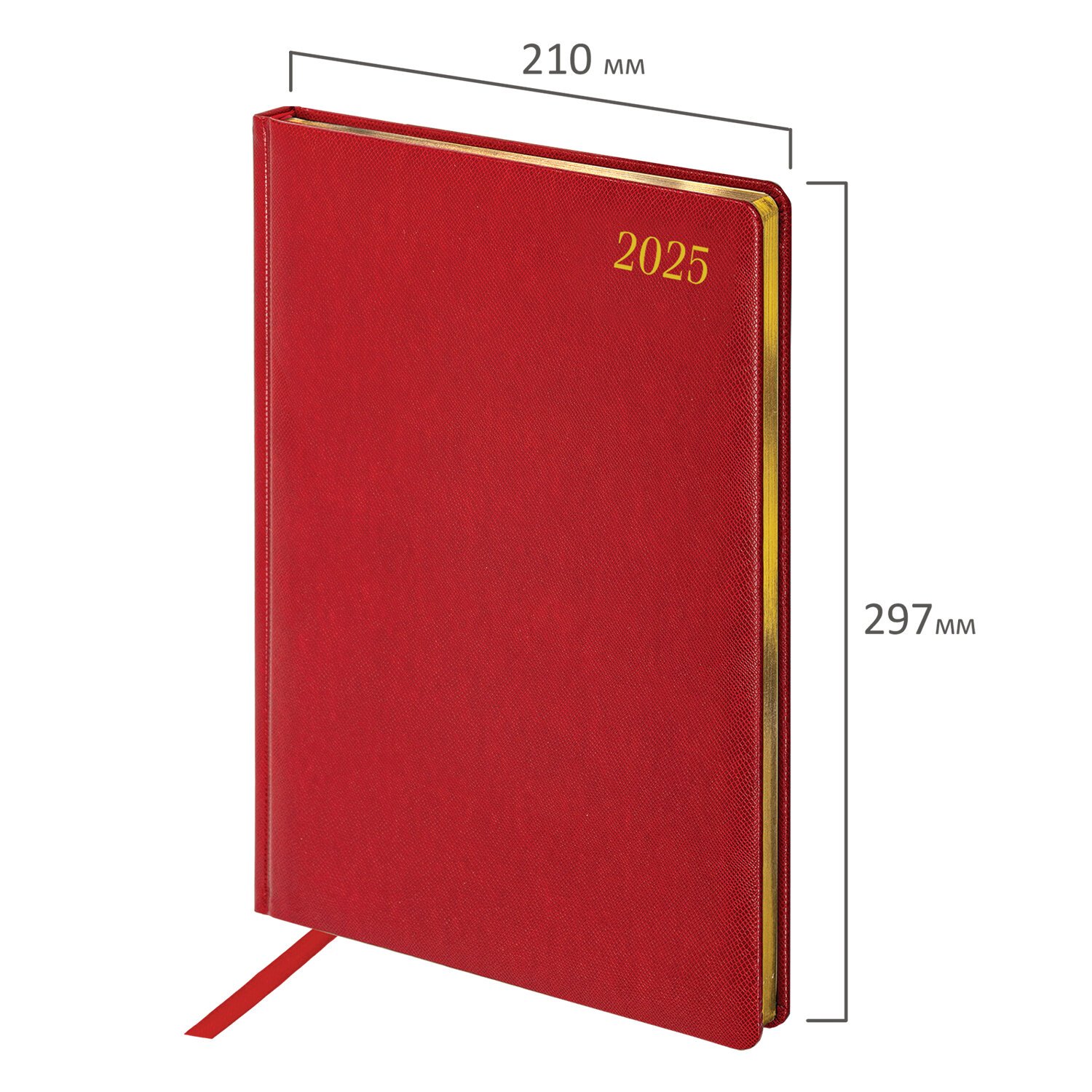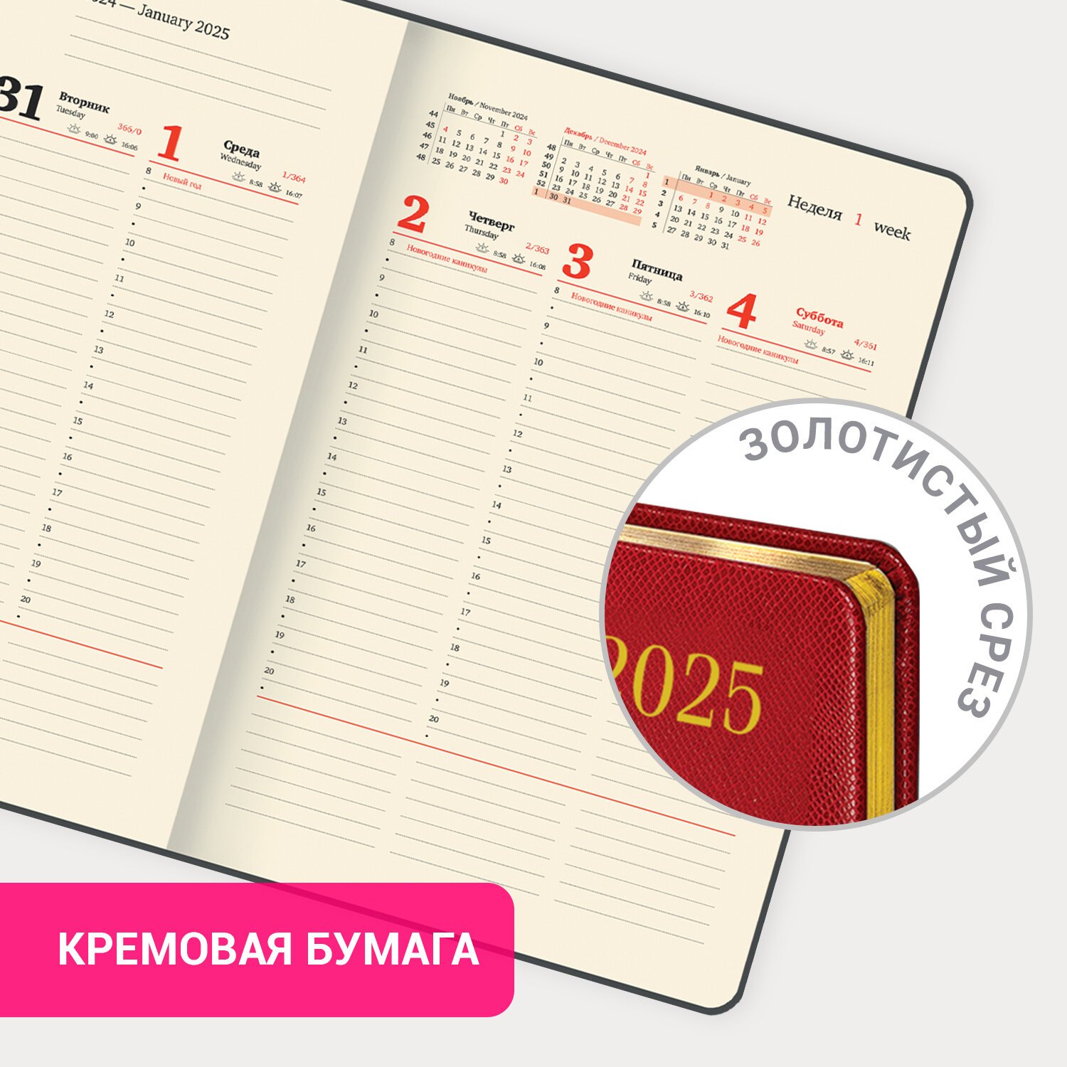 Еженедельник датированный 2025, 210х297 мм, А4, BRAUBERG "Iguana", под кожу, красный, 115948