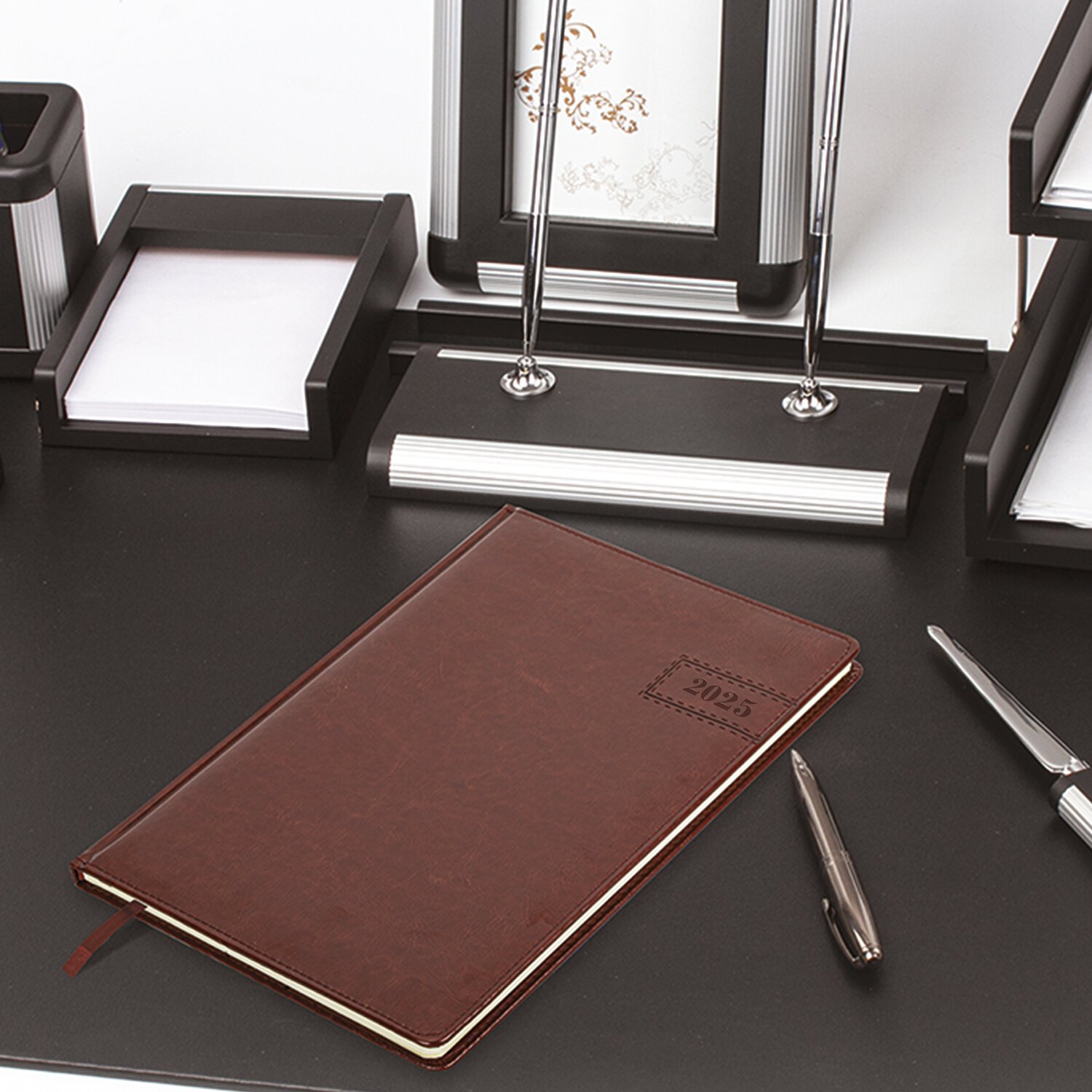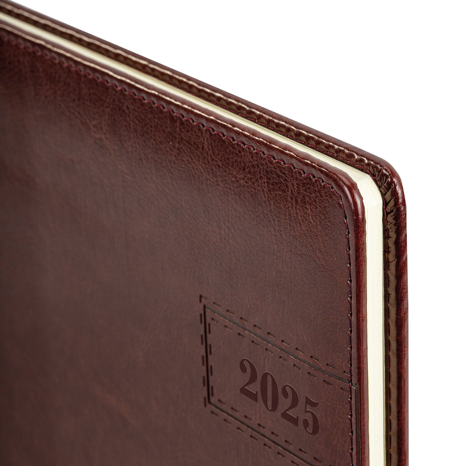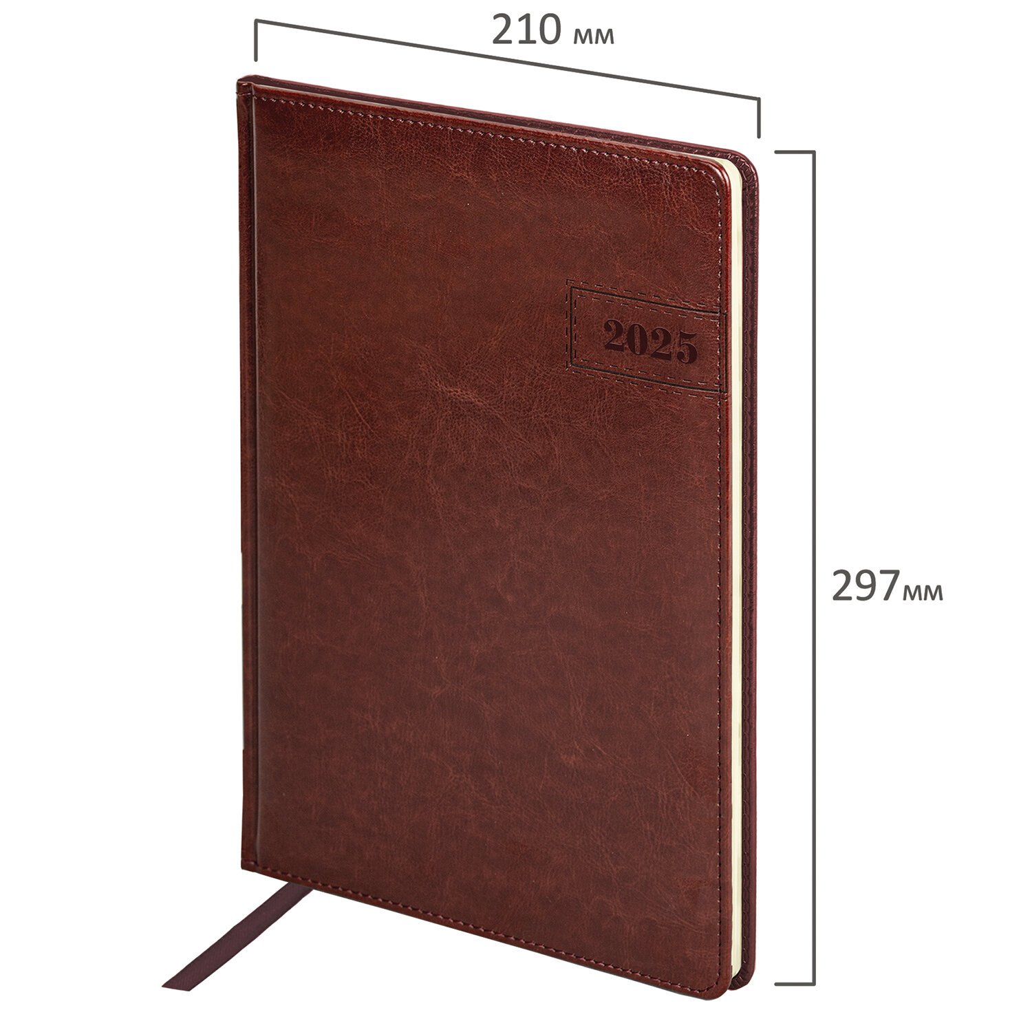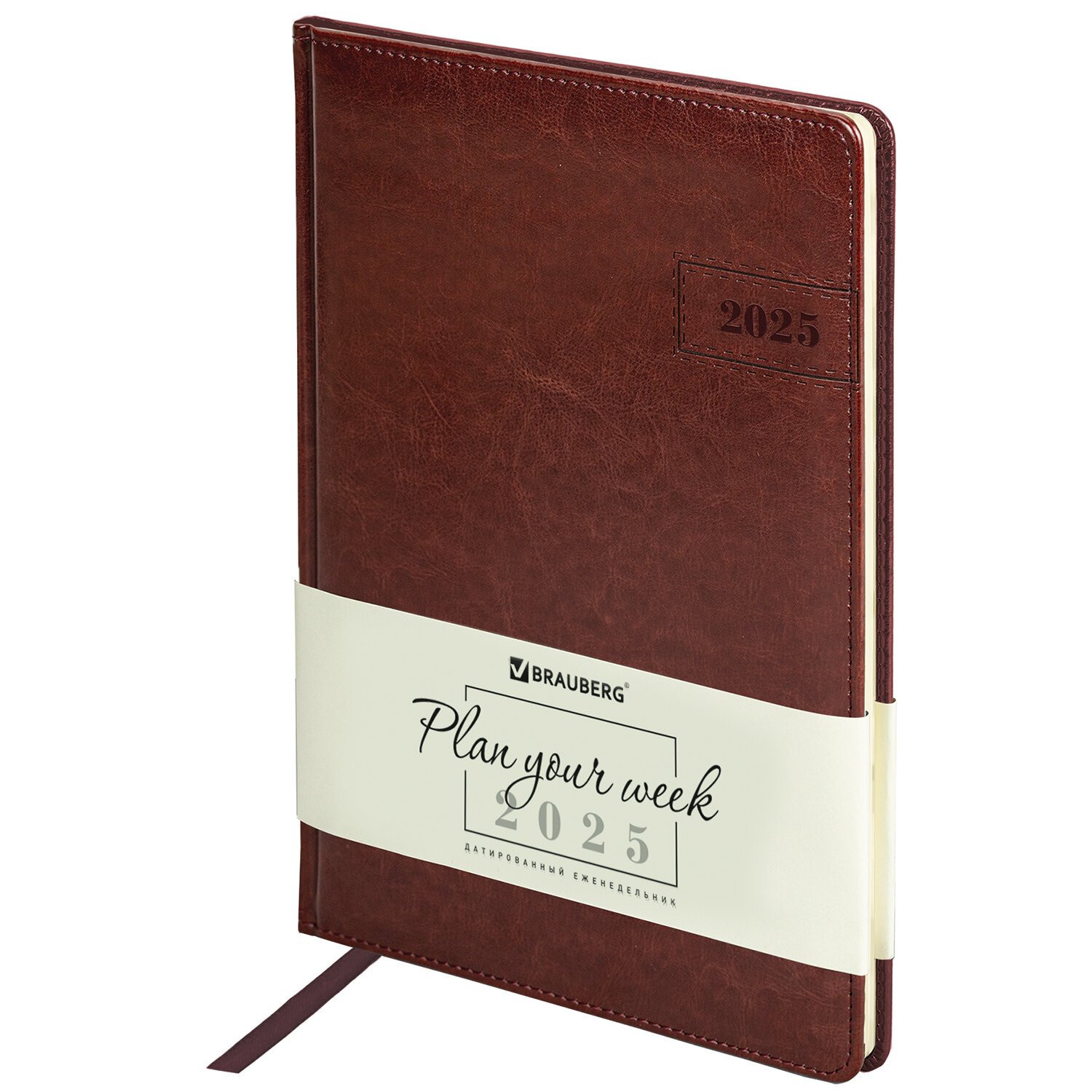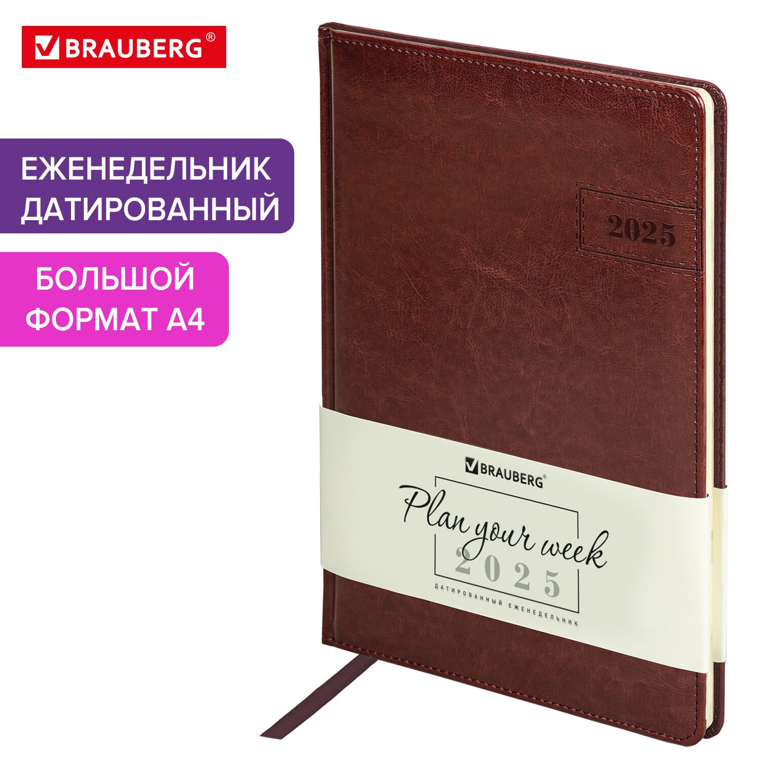 Еженедельник датированный 2025, 210х297 мм, А4, BRAUBERG "Imperial", под кожу, коричневый, 115943