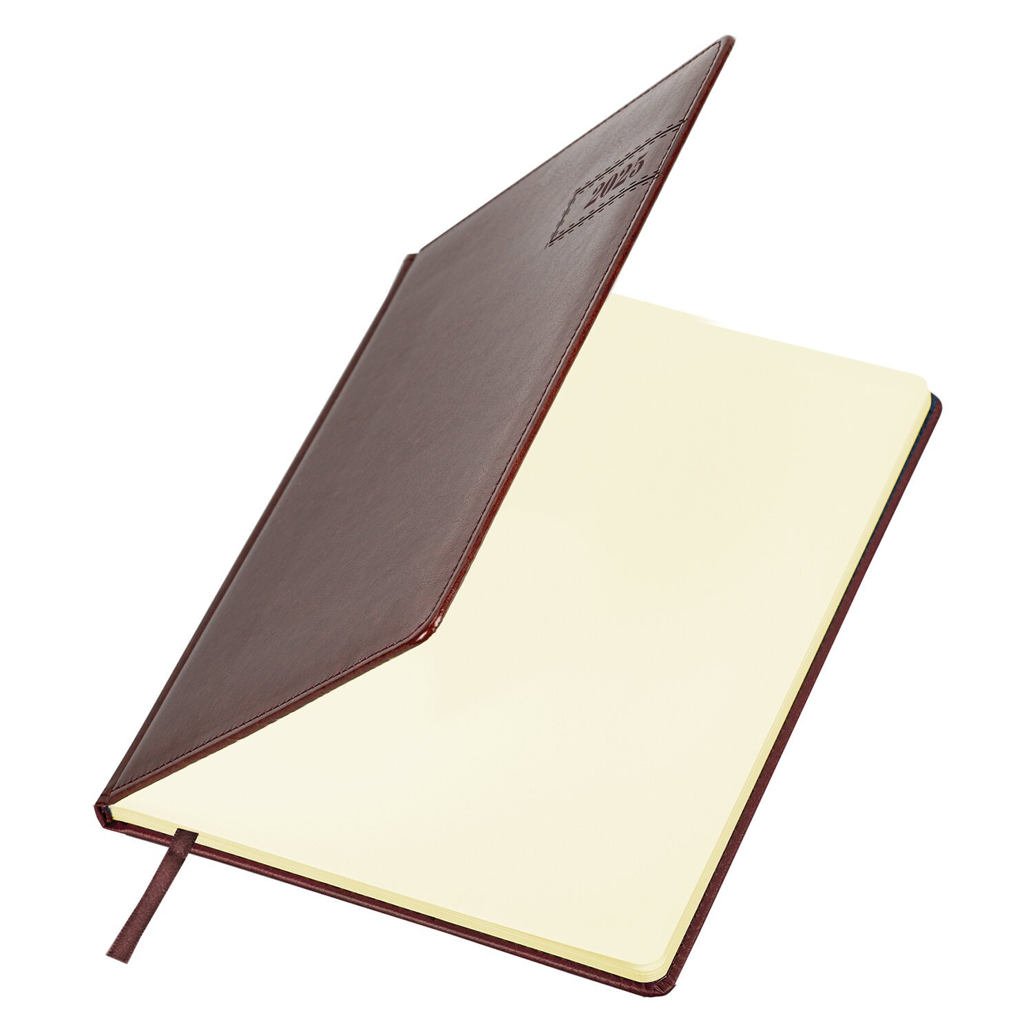 Внутренний блок включает 64 листа кремовой бумаги плотностью 70 г/м2. Благодаря большому формату А4 еженедельник удобно использовать как в офисе, так и на выездных деловых встречах. Твердая обложка, стилизованная под фактурную кожу коричневого цвета, подходит для горячего тиснения. Дополнением является закладка-ляссе, с помощью которой при необходимости можно быстро открыть еженедельник на нужной странице. Для заметок в еженедельнике имеется 7 страниц в конце внутреннего блока. Еженедельник снабжен обширным справочным материалом.