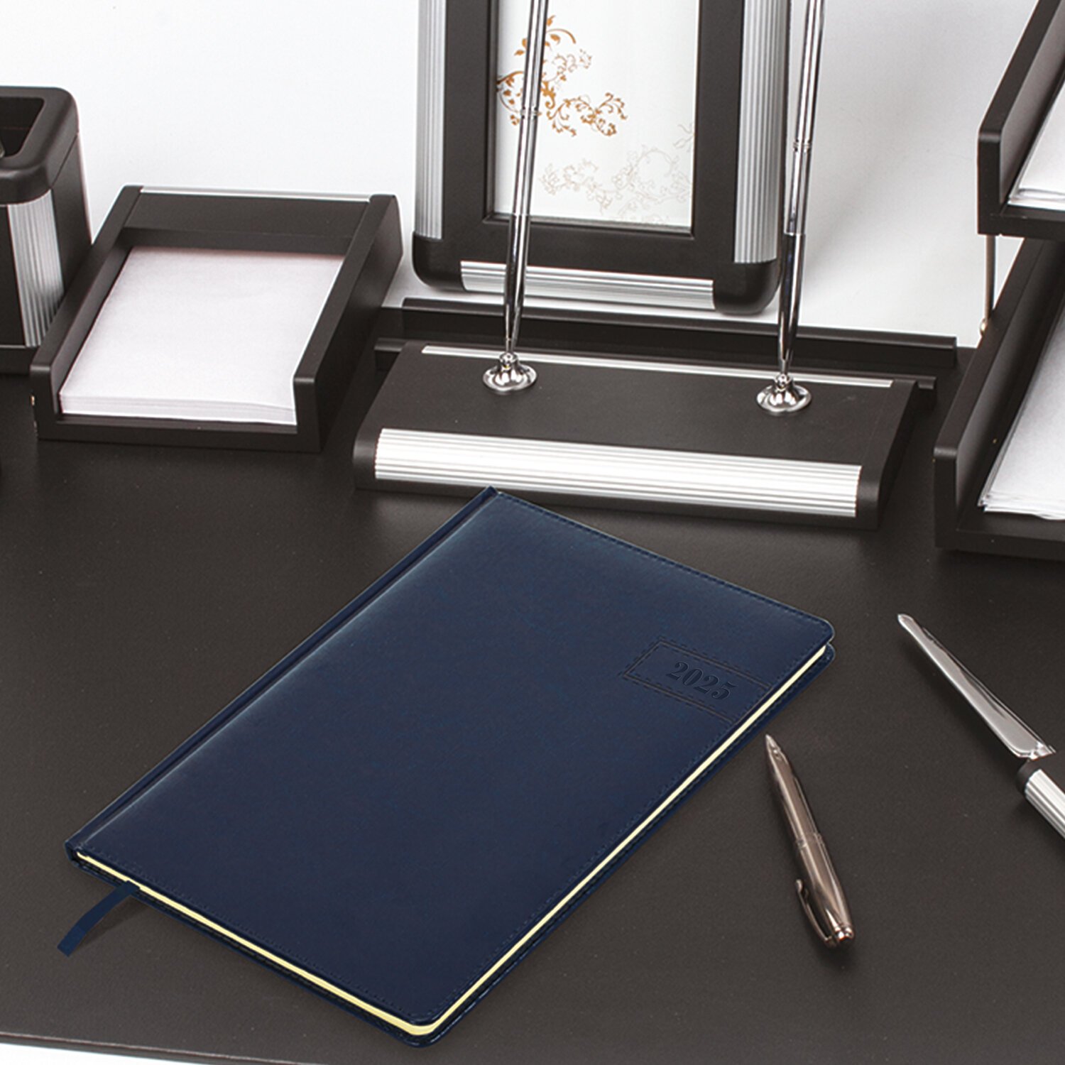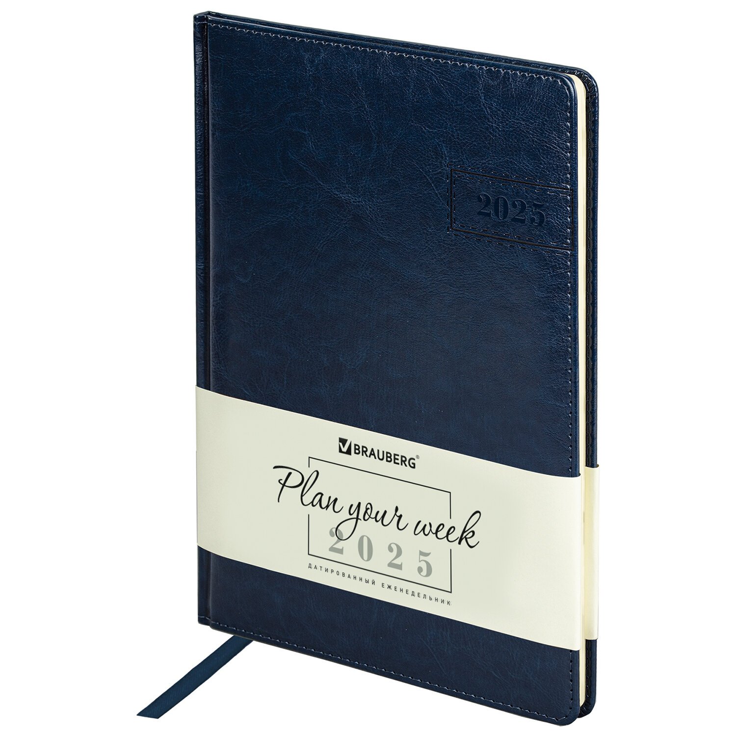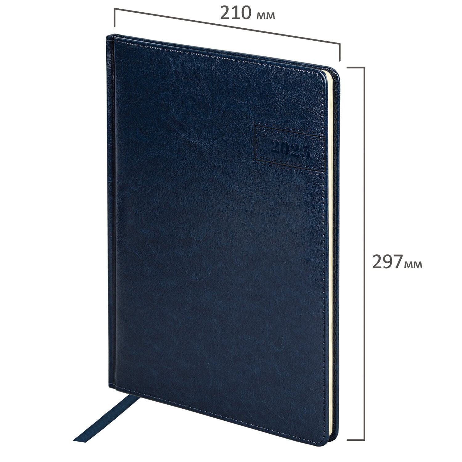 Еженедельник датированный 2025, 210х297 мм, А4, BRAUBERG "Imperial", под кожу, синий, 115944