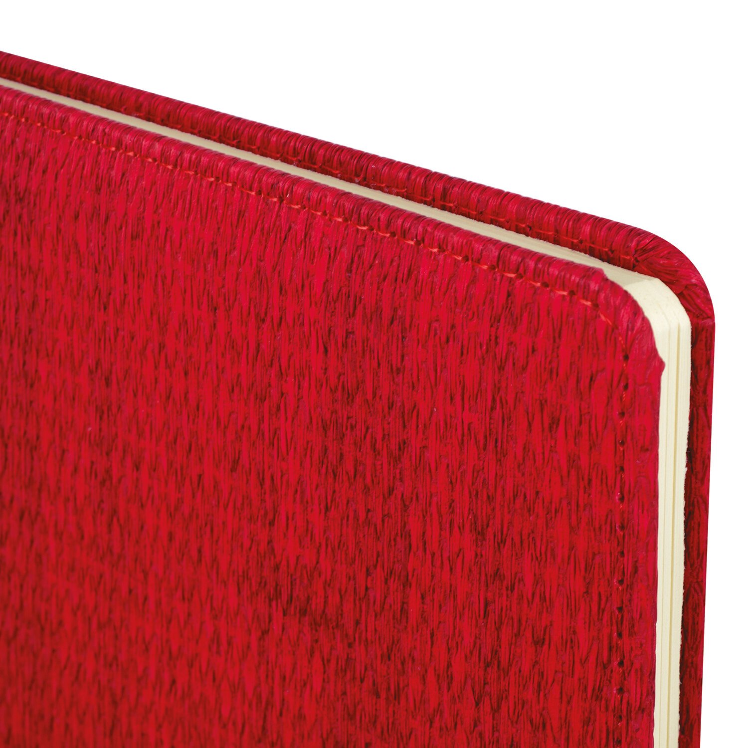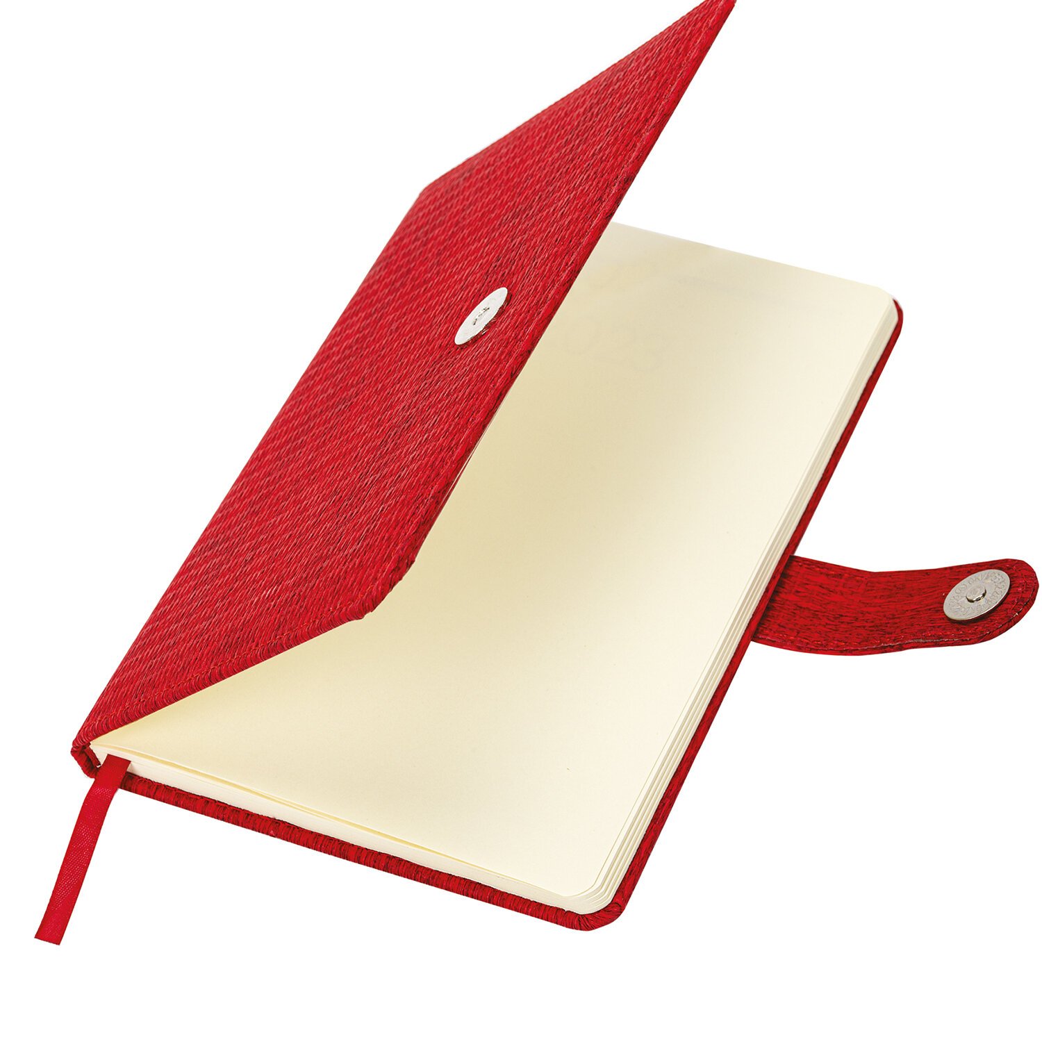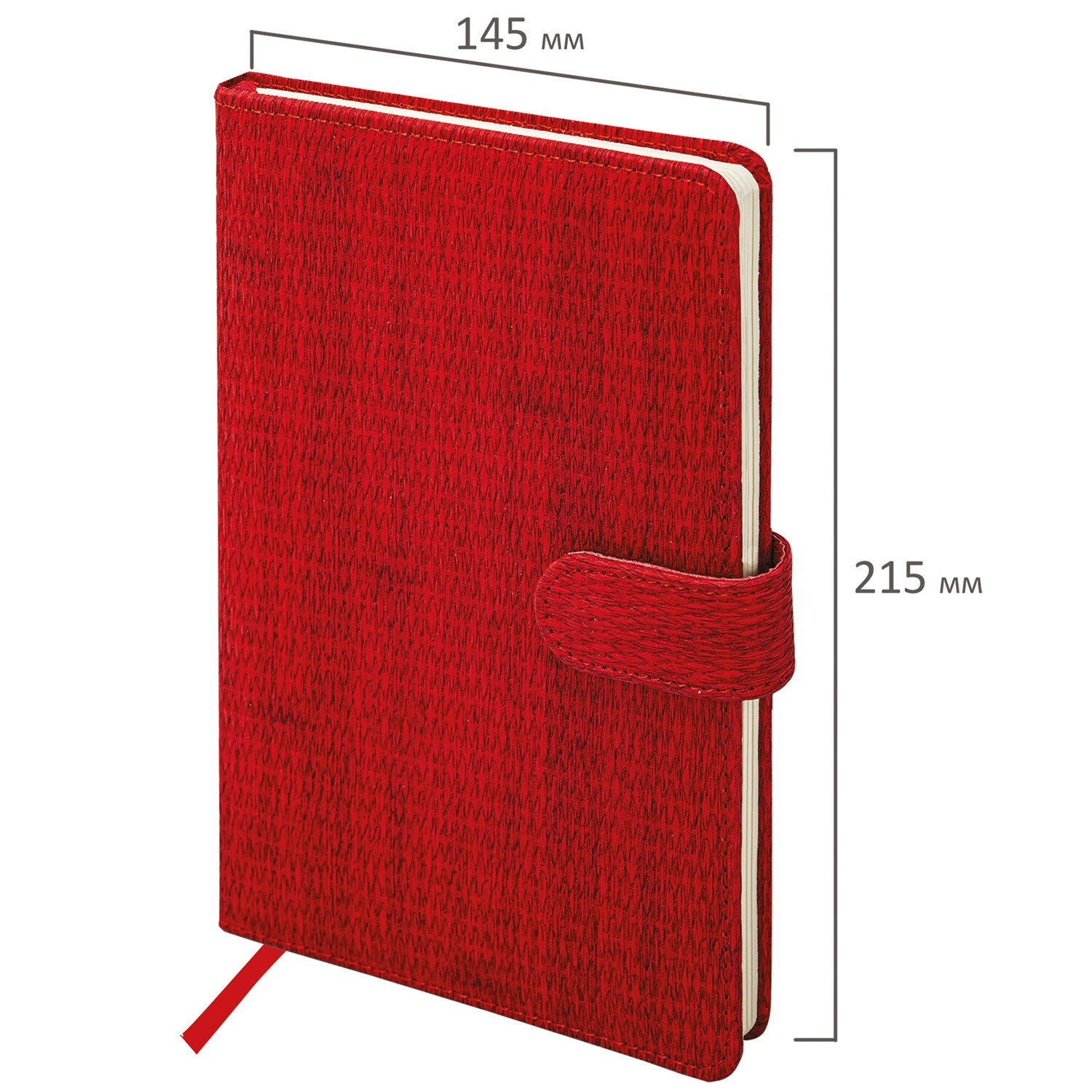 Внутренний блок включает 64 листа тонированной бумаги плотностью 70 г/м2. Благодаря стандартному формату А5 еженедельник удобно использовать как в офисе, так и на выездных деловых встречах. Твердая обложка, стилизованная под кожу с текстурной выработкой, фиксируется магнитной застежкой, поэтому еженедельник не откроется в сумке или портфеле и страницы не помнутся. Подходит для горячего тиснения. Дополнением является закладка-ляссе, с помощью которой при необходимости можно быстро открыть еженедельник на нужной странице. Для заметок в еженедельнике имеется 7 страниц в конце внутреннего блока. Помимо прочего, еженедельник снабжен обширным справочным материалом. Выполнен в классическом красном цвете.