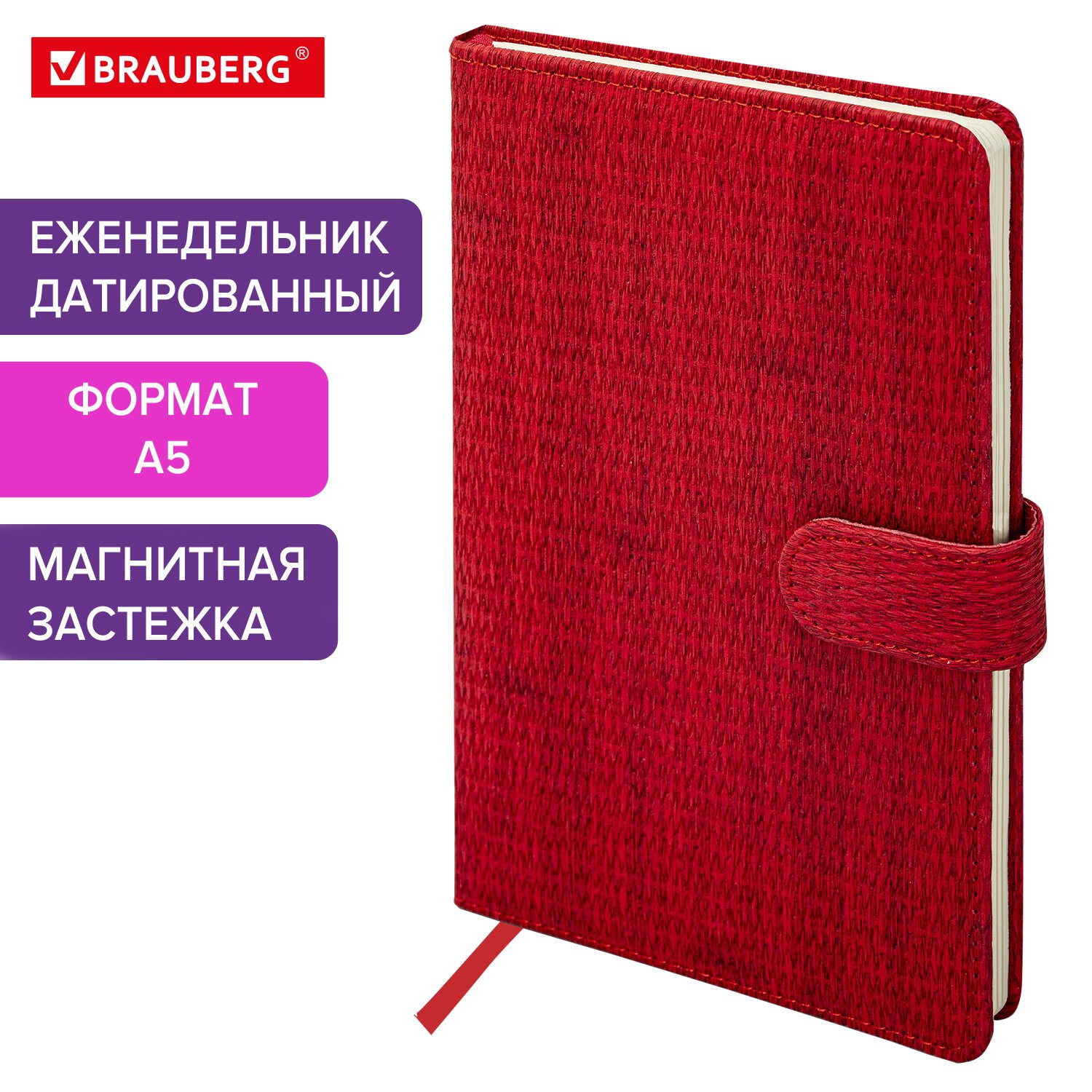Еженедельник датированный 2025 А5 145х215 мм BRAUBERG "Augustus", под кожу, красный, 115950