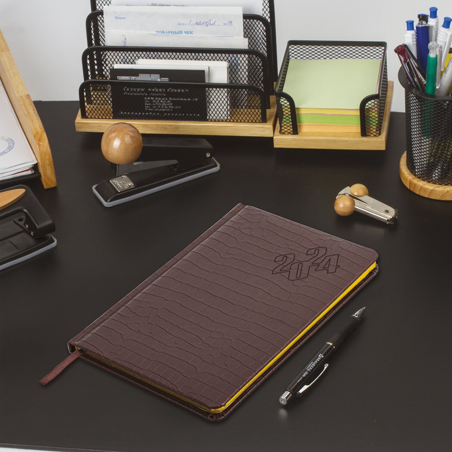 Датированный еженедельник BRAUBERG "Comodo" – великолепная возможность прикоснуться к легендарной рептилии. Обложка, стилизованная под кожу крокодила, и насыщенный цвет делают этот деловой аксессуар изысканным.