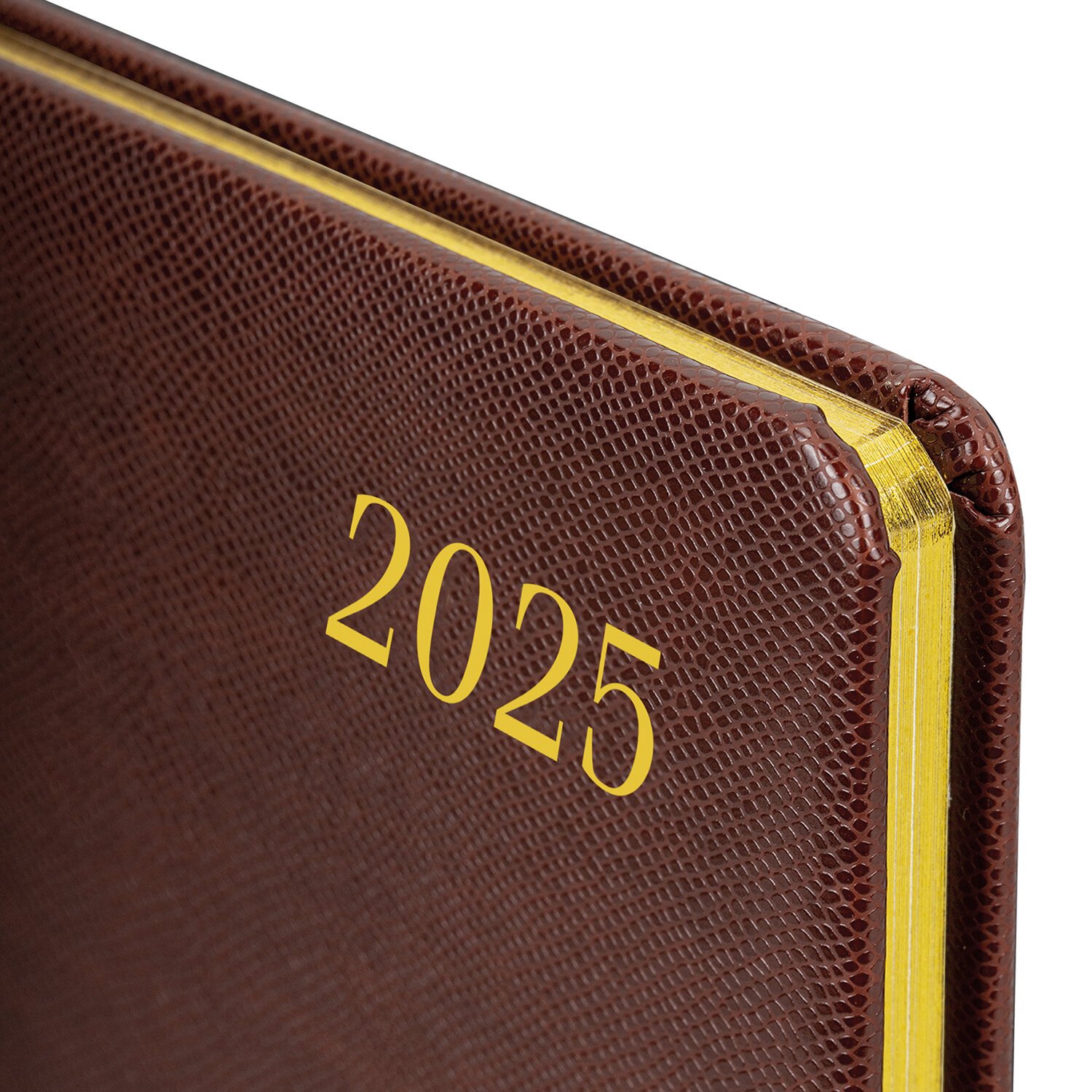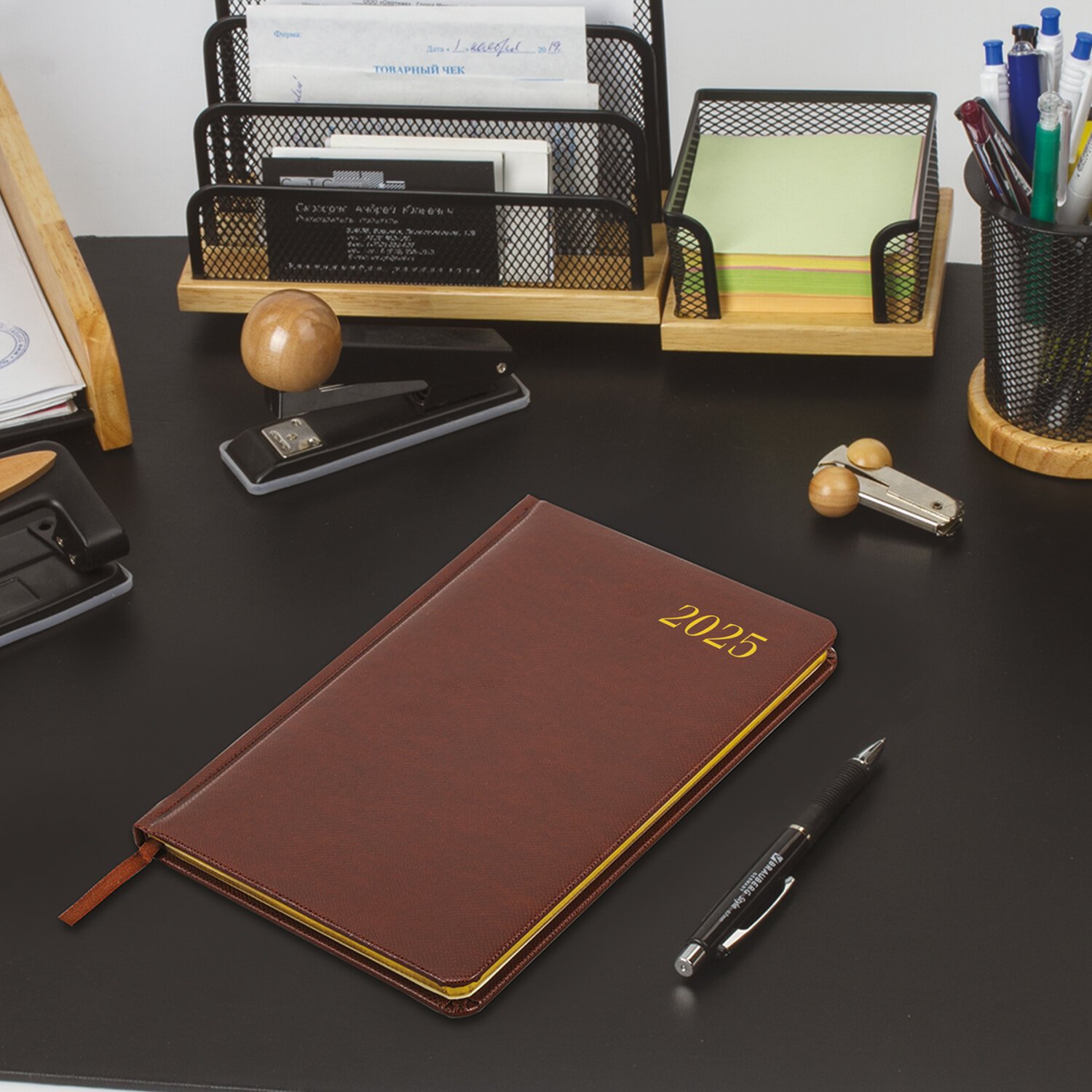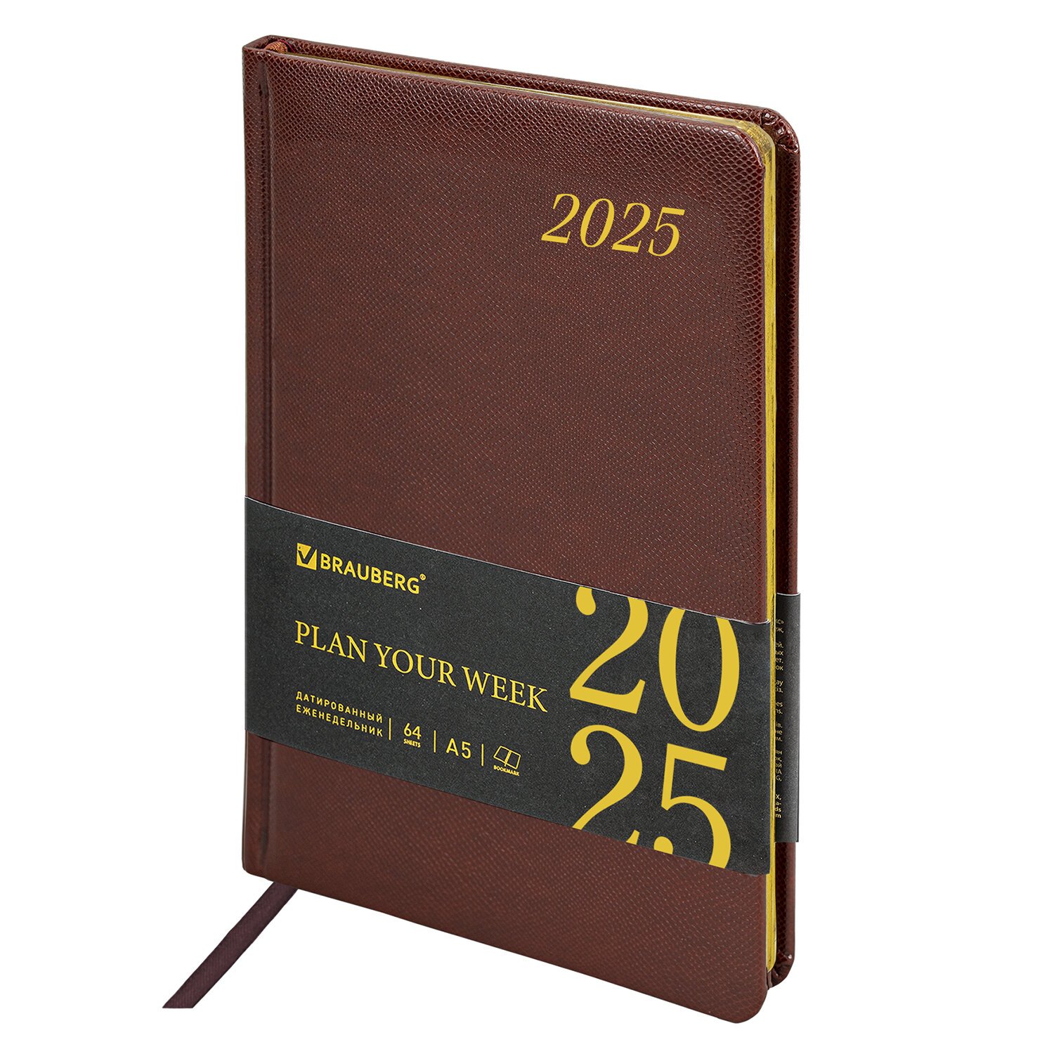 Еженедельник датированный 2025, А5, 145х215 мм, BRAUBERG "Iguana", под кожу, коричневый, 115959