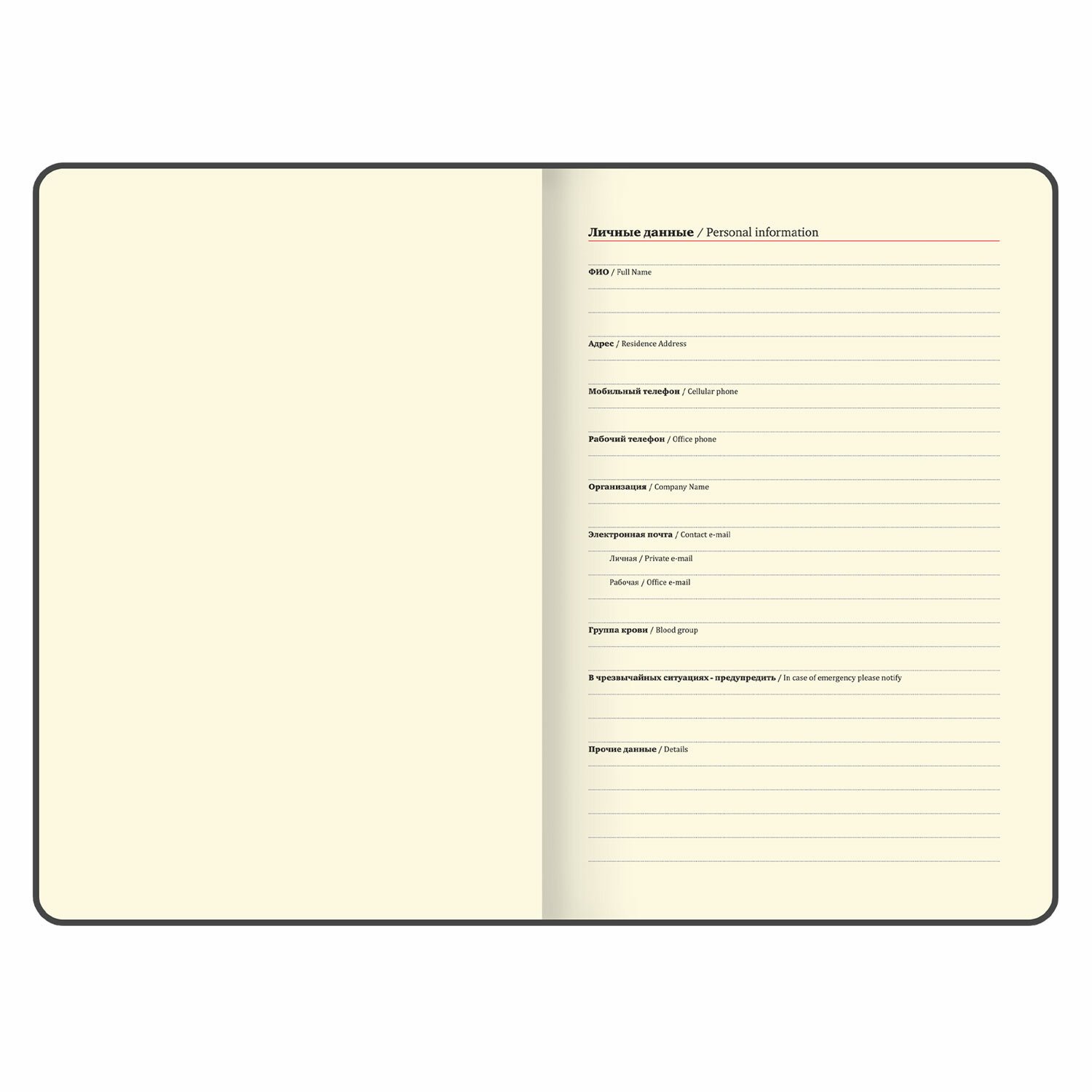 Внутренний блок включает 64 листа тонированной бумаги плотностью 70 г/м2. Благодаря стандартному формату А5 еженедельник удобно использовать как в офисе, так и на выездных деловых встречах. Твердая обложка, стилизованная под гладкую кожу, выполнена в благородном коричневом цвете и подходит для горячего тиснения. Дополнением является закладка-ляссе, с помощью которой при необходимости можно быстро открыть еженедельник на нужной странице. Для заметок в еженедельнике имеется 7 страниц в конце внутреннего блока. Еженедельник снабжен обширным справочным материалом.