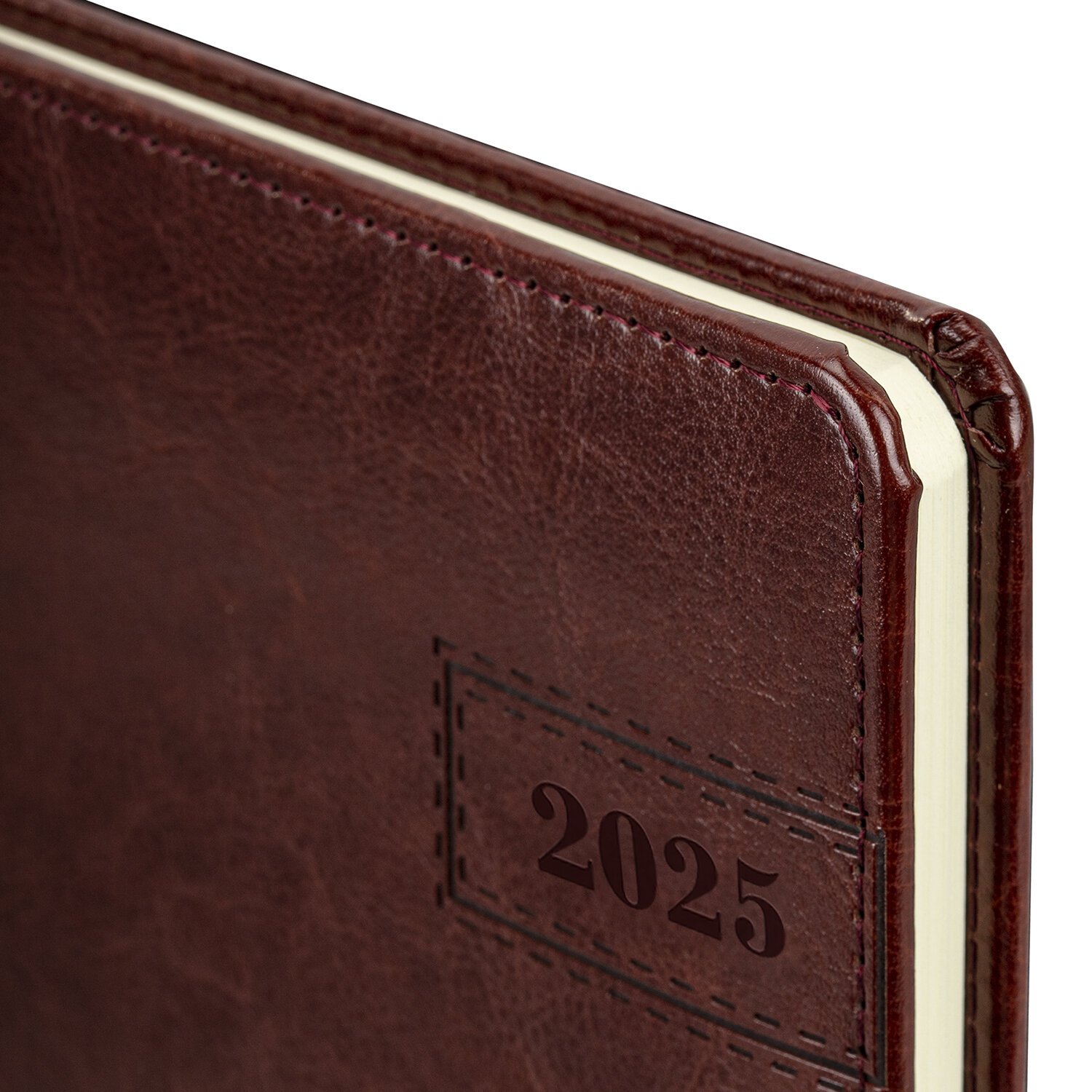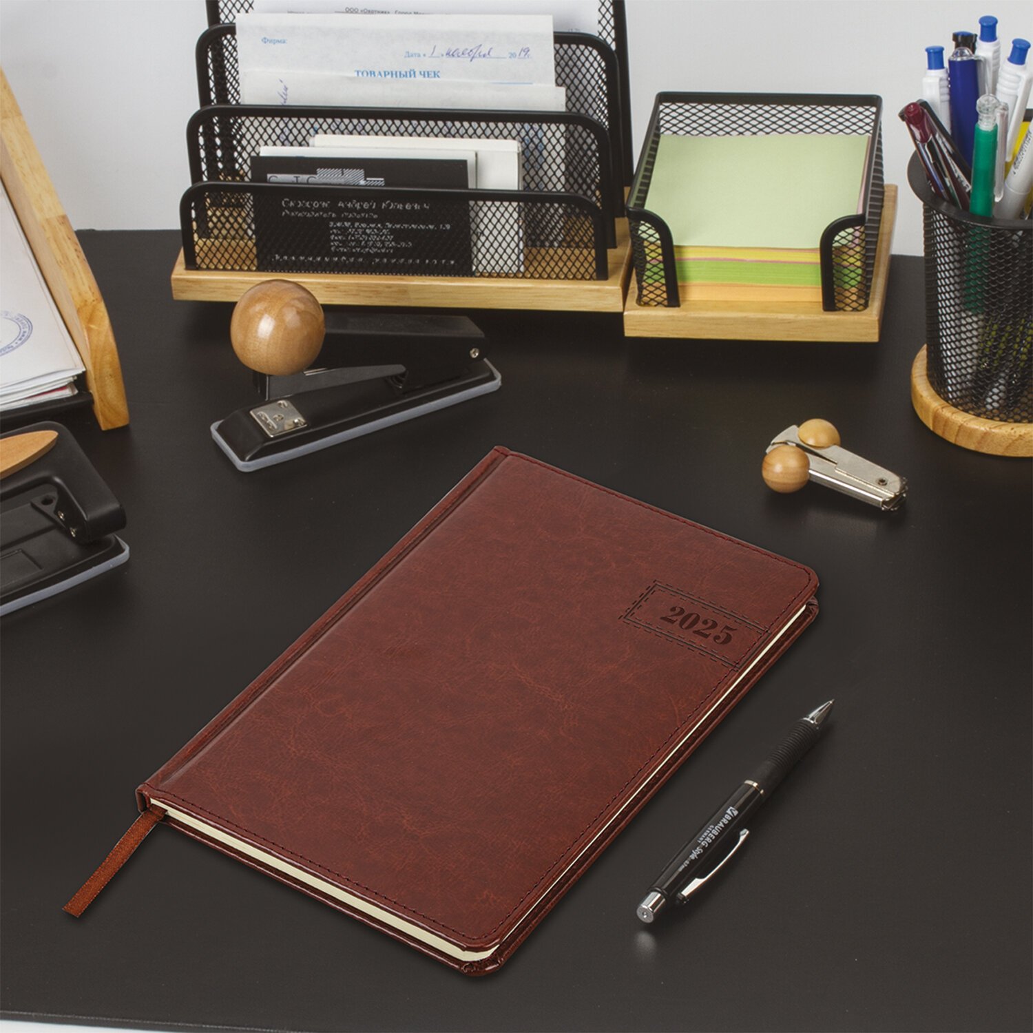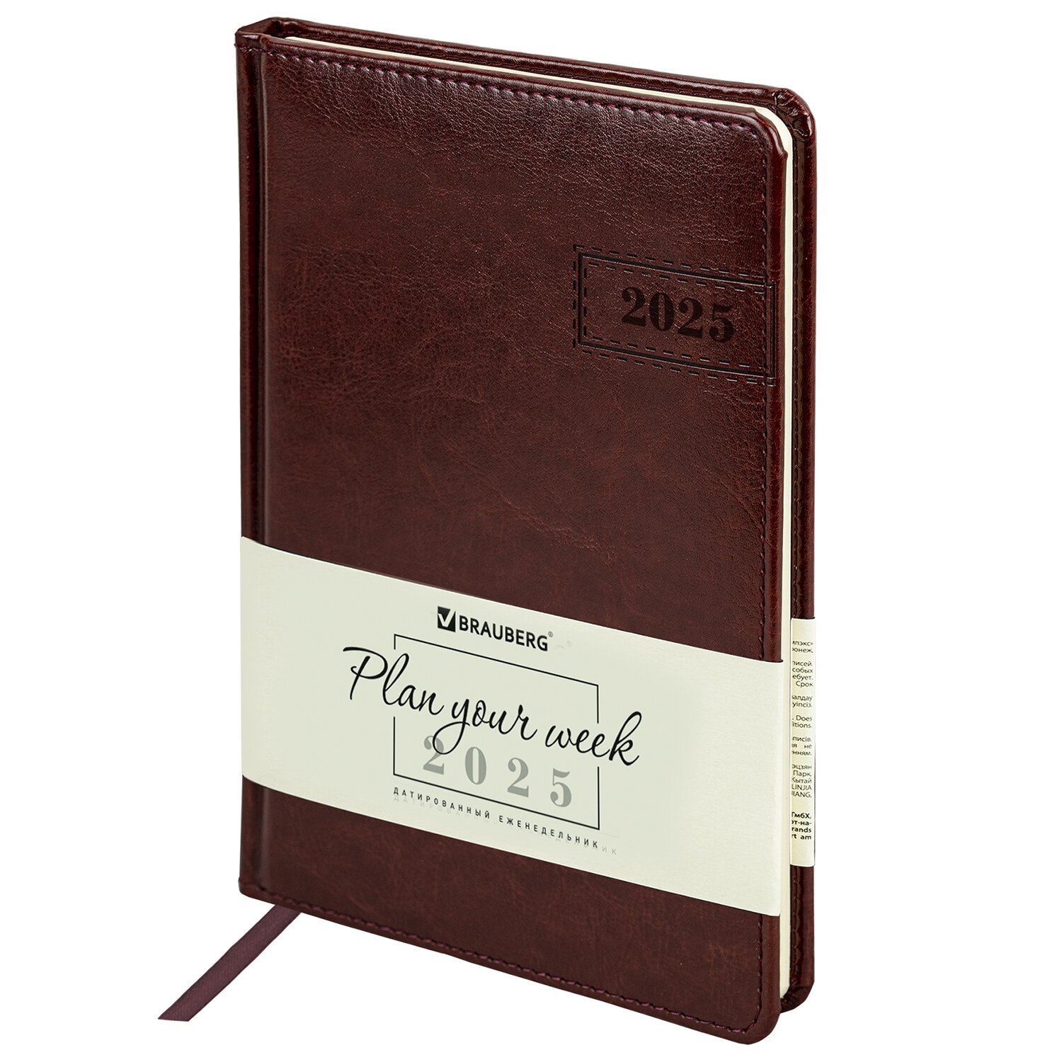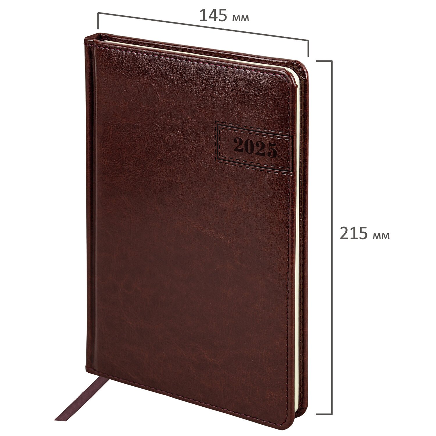 Еженедельник датированный 2025, А5, 145х215 мм, BRAUBERG "Imperial", под кожу, коричневый, 115963