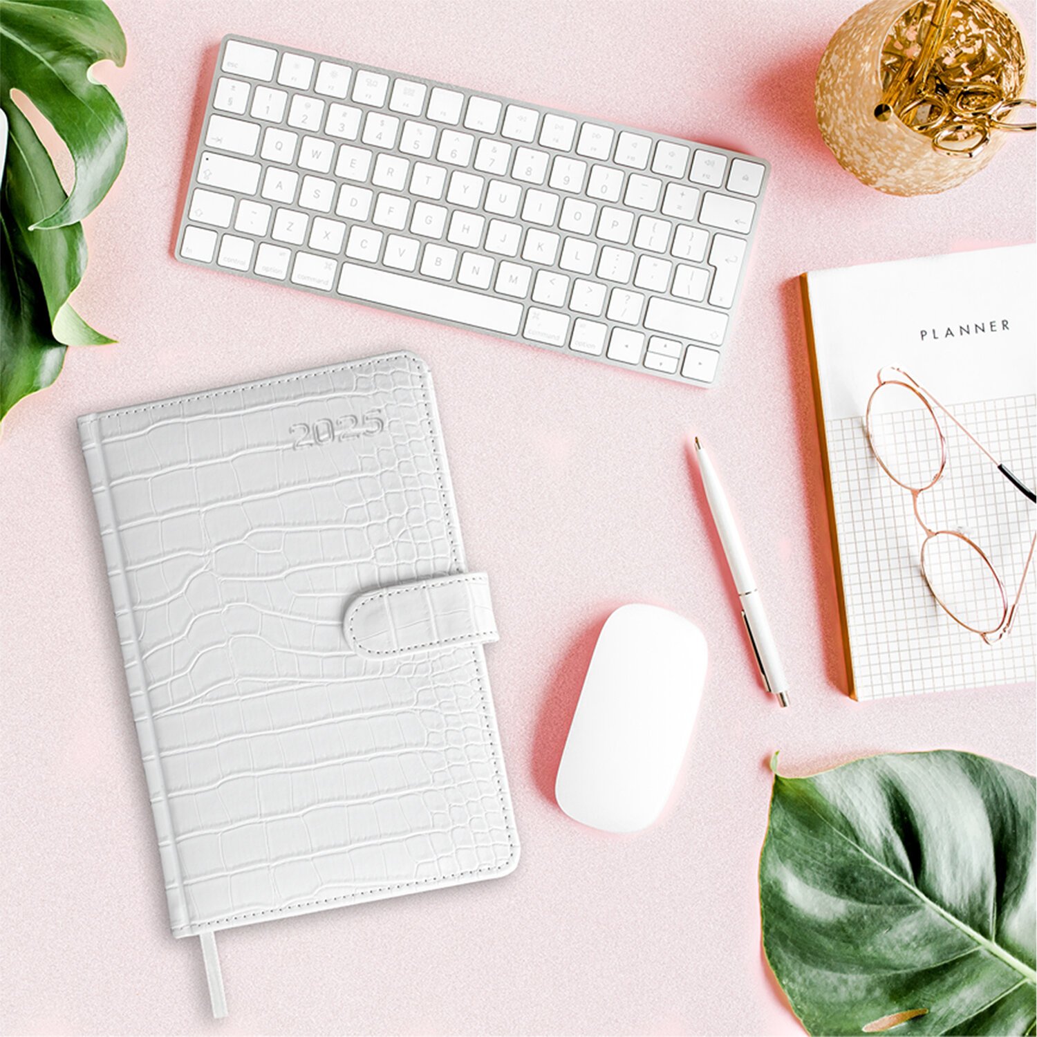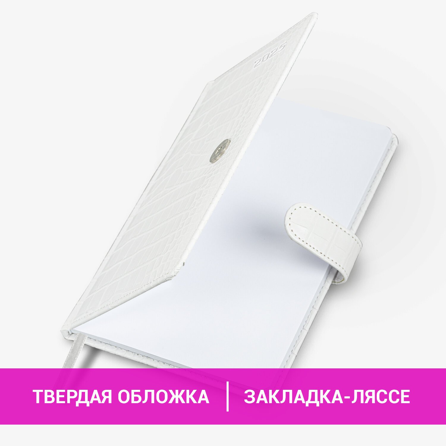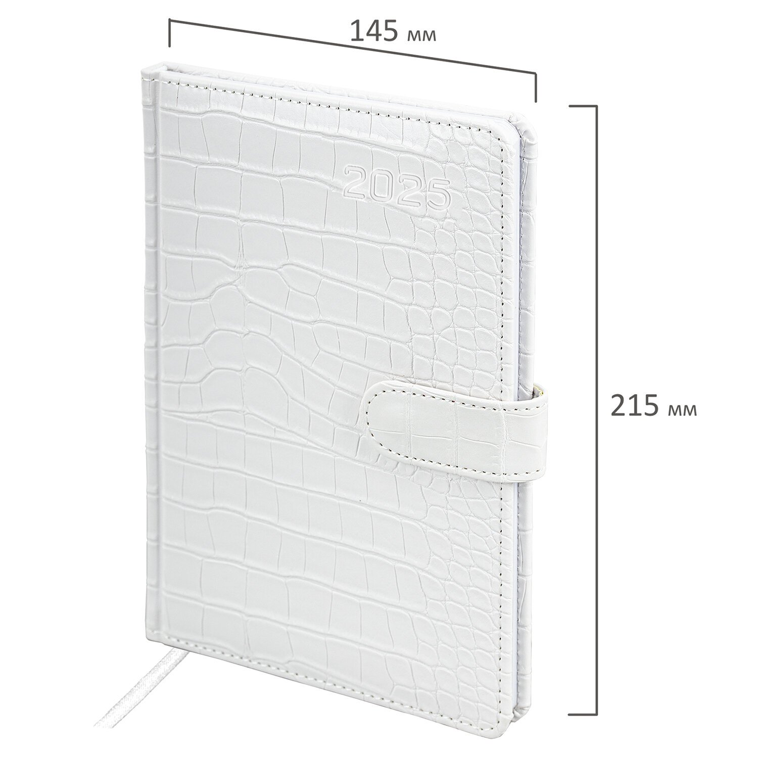 Еженедельник датированный 2025, А5, 145х215 мм, BRAUBERG "Party", под кожу, белый, 115969