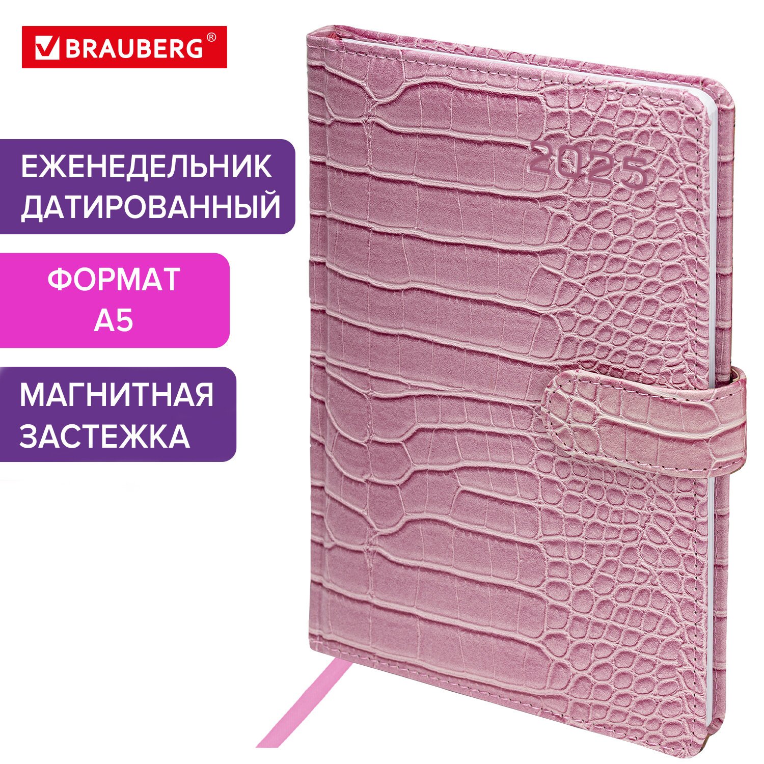 Еженедельник датированный 2025, А5, 145х215 мм, BRAUBERG "Party", под кожу, коралловый, 115968