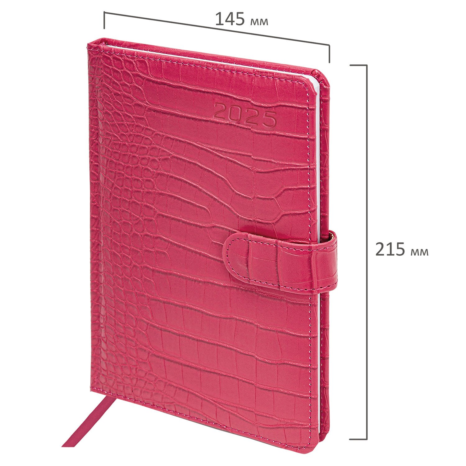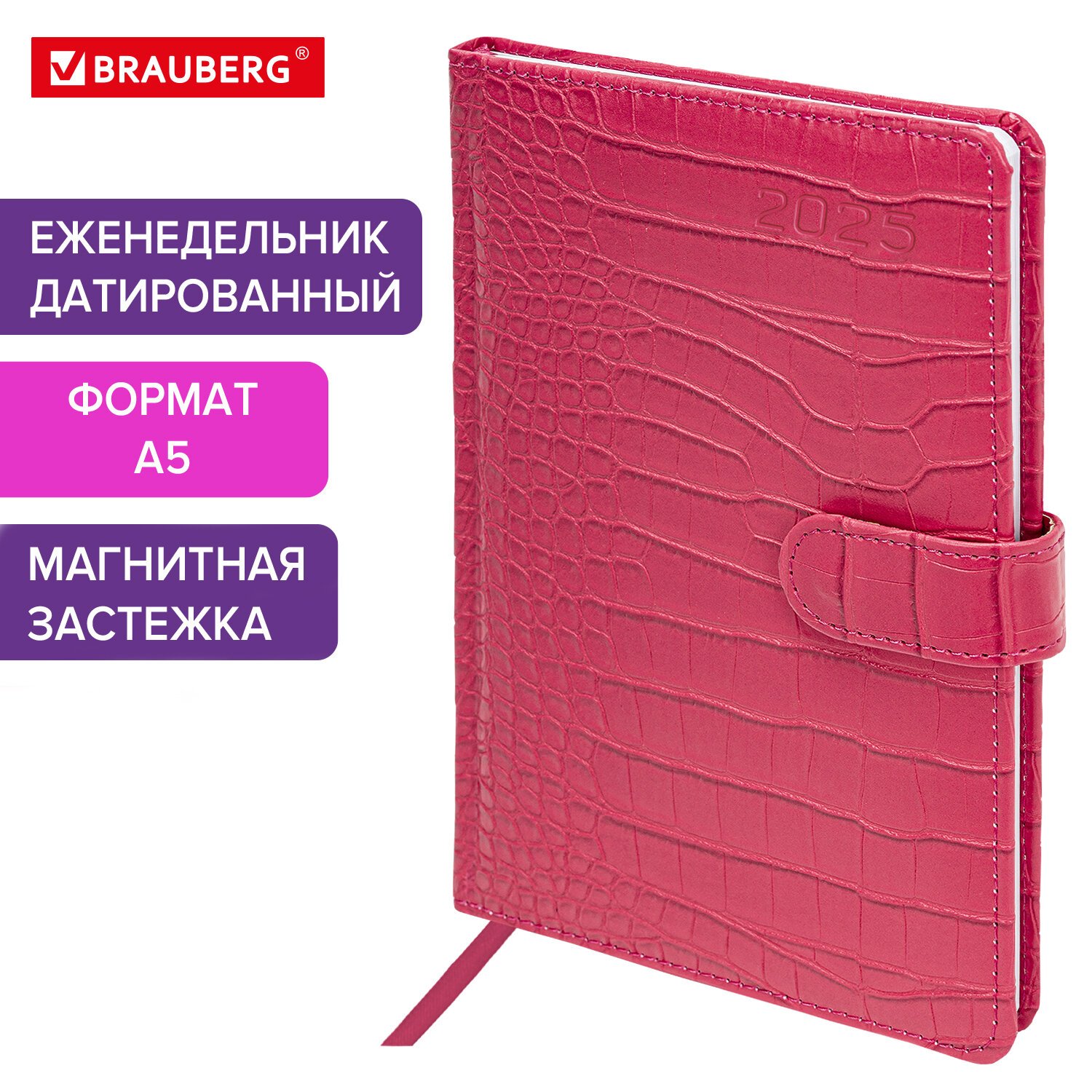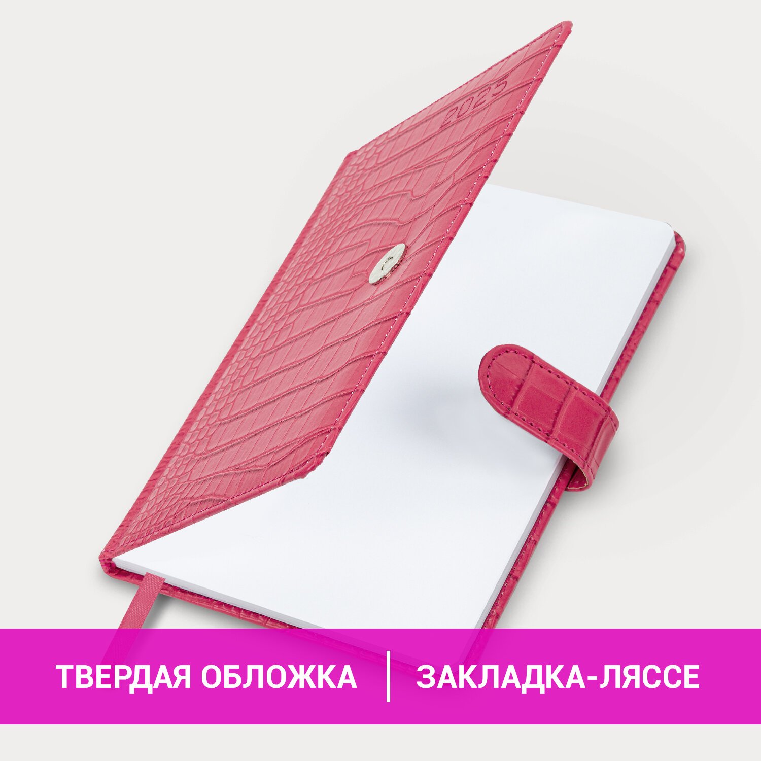 Еженедельник датированный 2025, А5, 145х215 мм, BRAUBERG "Party", под кожу, розовый, 115966