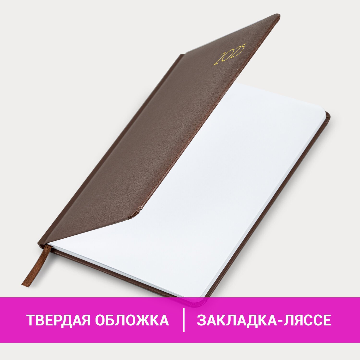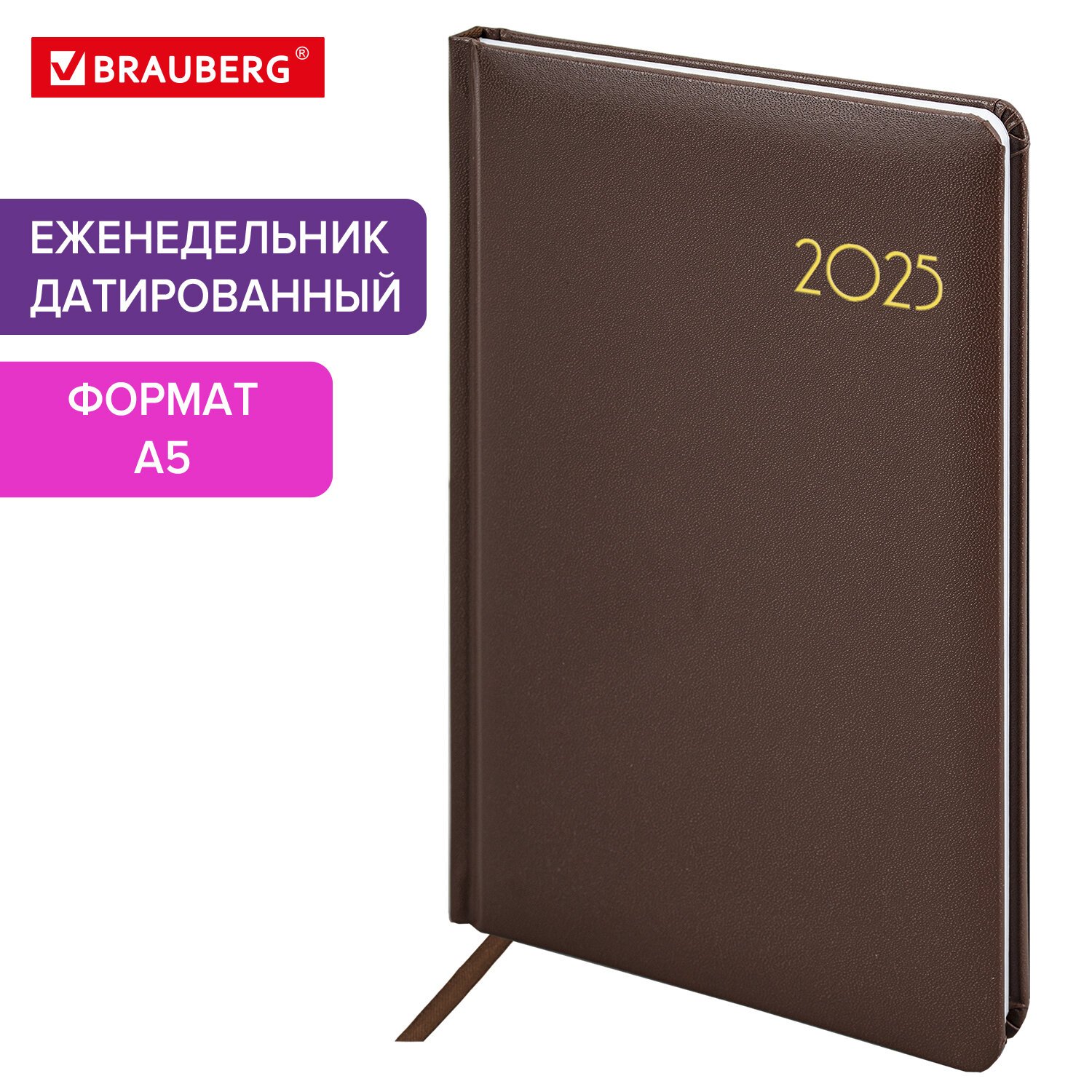 Еженедельник датированный 2025, А5, 145х215 мм, BRAUBERG "Select", балакрон, коричневый, 115973