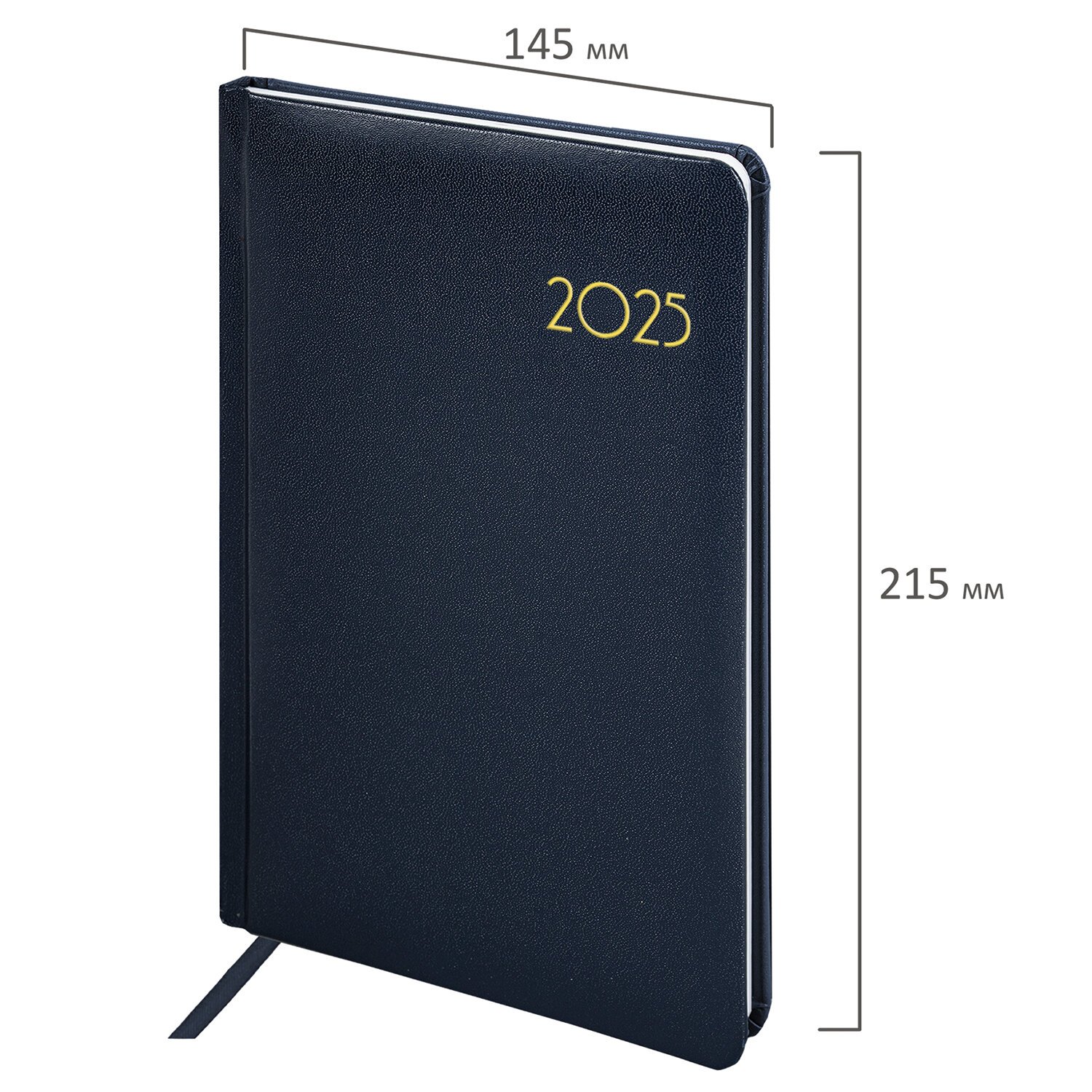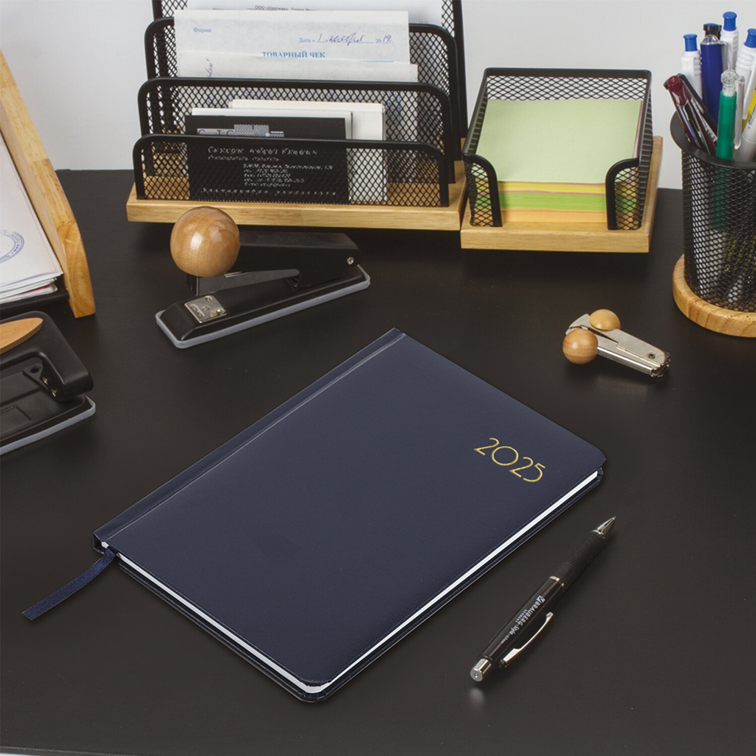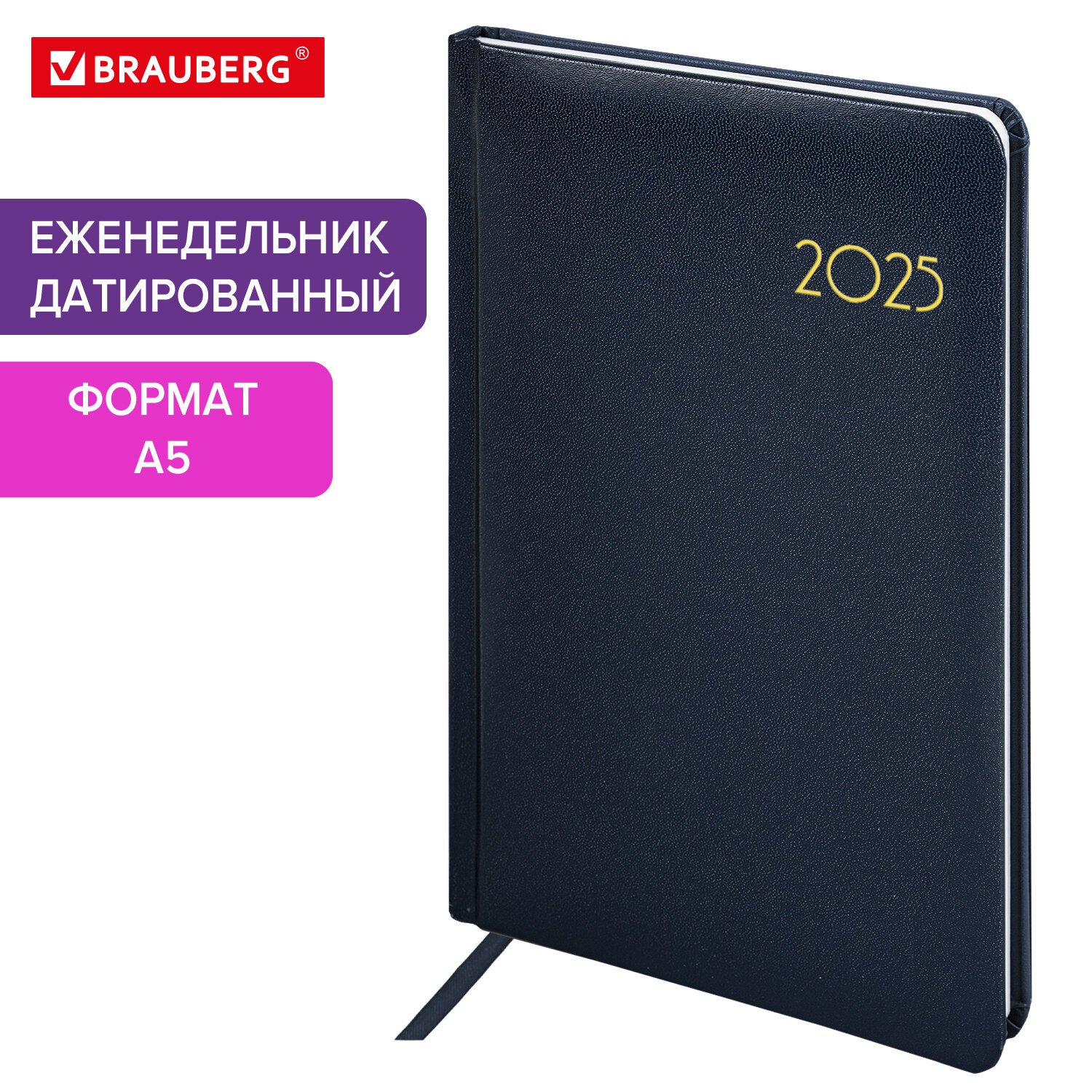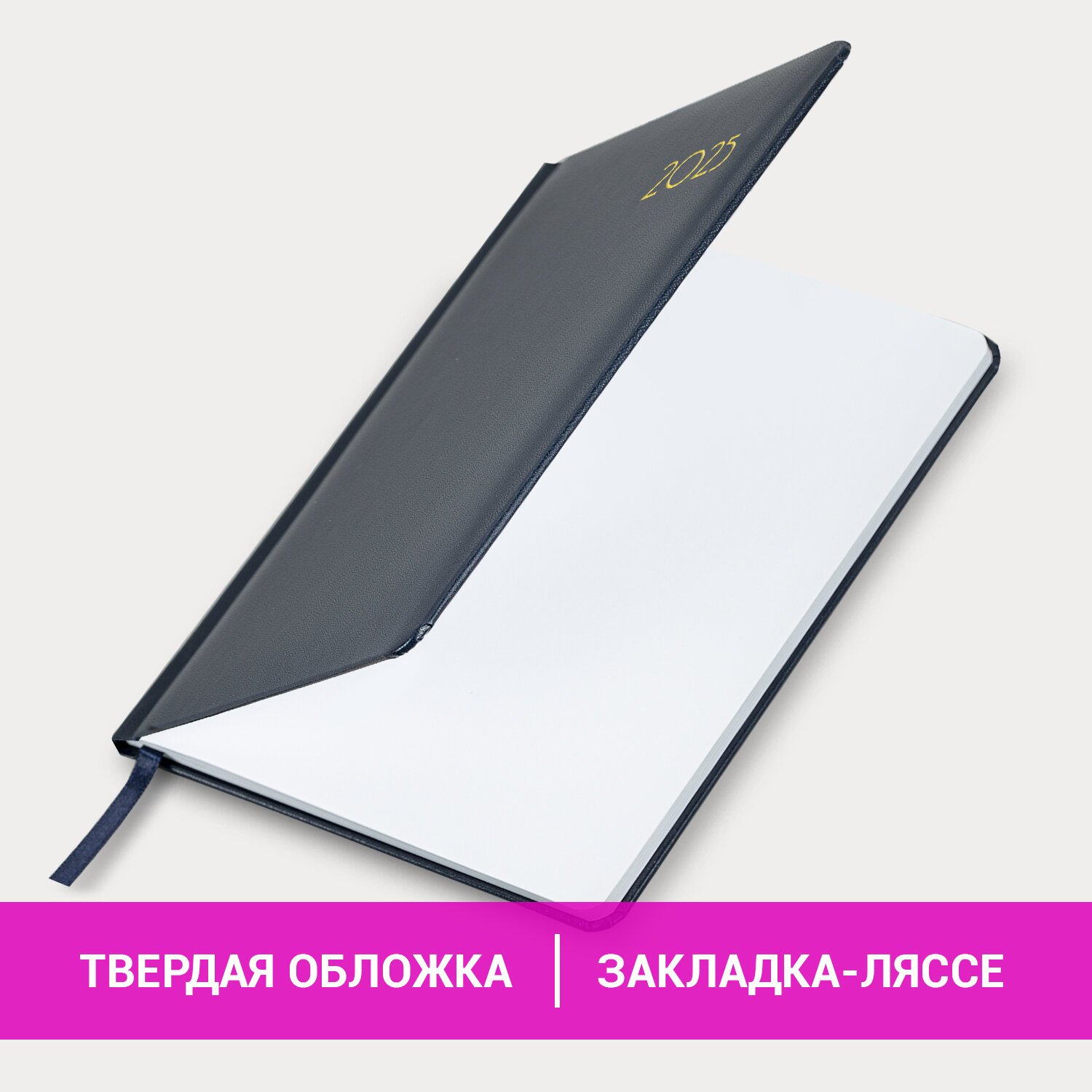 Еженедельник датированный 2025, А5, 145х215 мм, BRAUBERG "Select", балакрон, темно-синий, 115971
