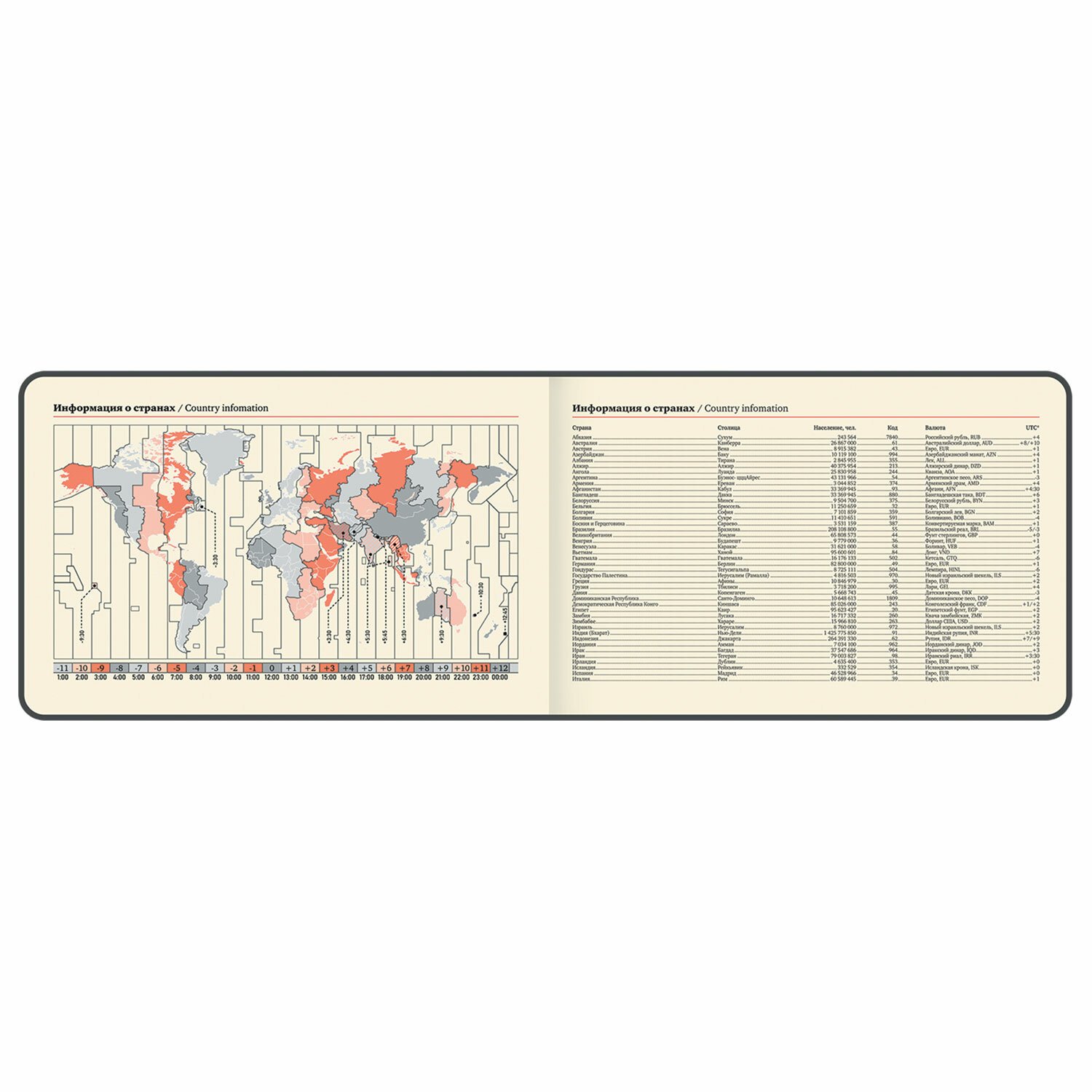 Внутренний блок включает 64 листа тонированной бумаги плотностью 70 г/м2. Благодаря малому формату А6 еженедельник удобно использовать как в офисе, так и на выездных деловых встречах. Гибкая обложка, стилизованная под гладкую кожу, подходит для горячего тиснения. Дополнением является закладка-ляссе, с помощью которой при необходимости можно быстро открыть еженедельник на нужной странице. Для заметок в еженедельнике имеется 7 страниц в конце внутреннего блока. Помимо прочего, еженедельник снабжен обширным справочным материалом. Выполнен в классическом красном цвете.
