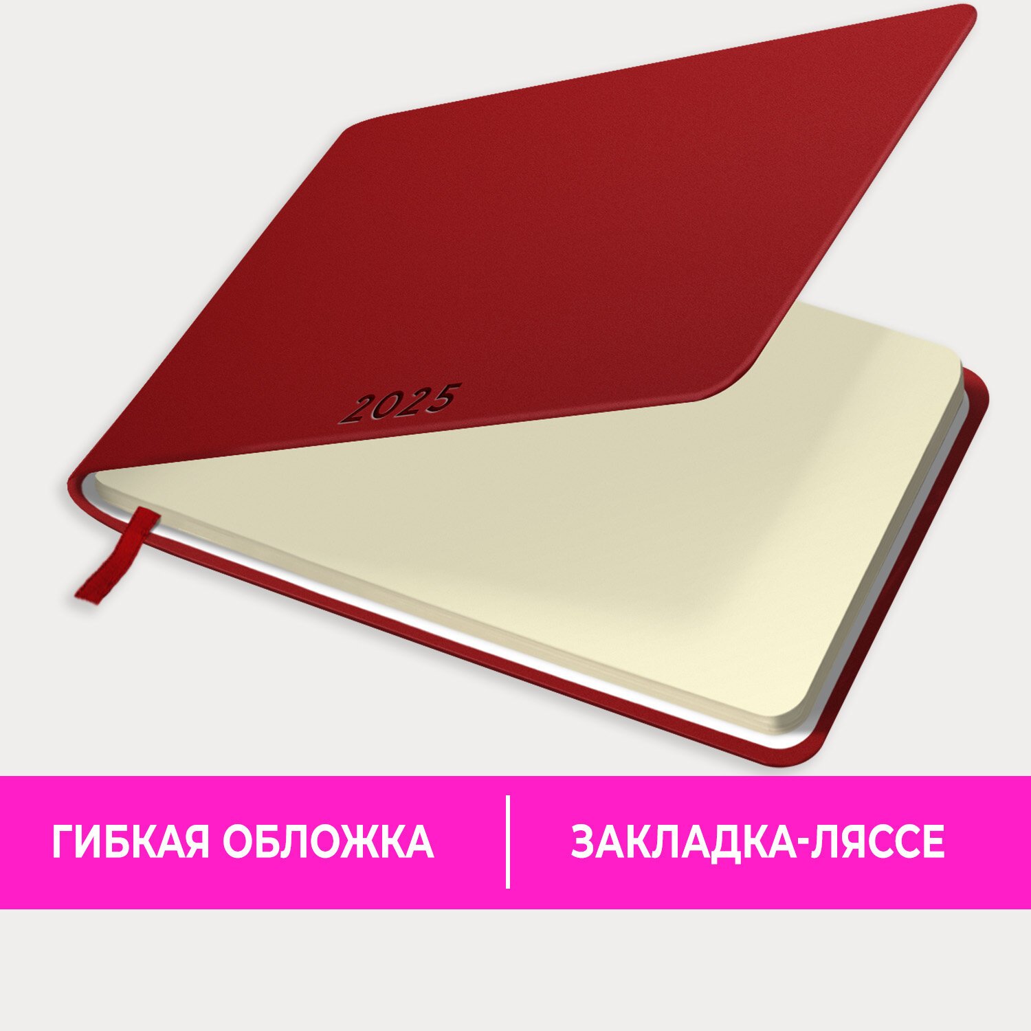 Еженедельник датированный 2025 МАЛЫЙ ФОРМАТ 95х155 мм А6, BRAUBERG "Unique", красный, 115996