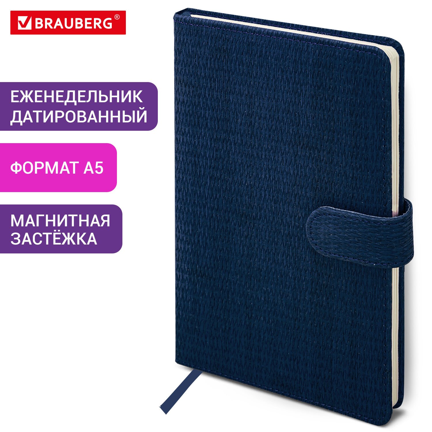 Еженедельник датированный 2026 А5 145х215мм BRAUBERG Augustus, под кожу, темно-синий, 117164