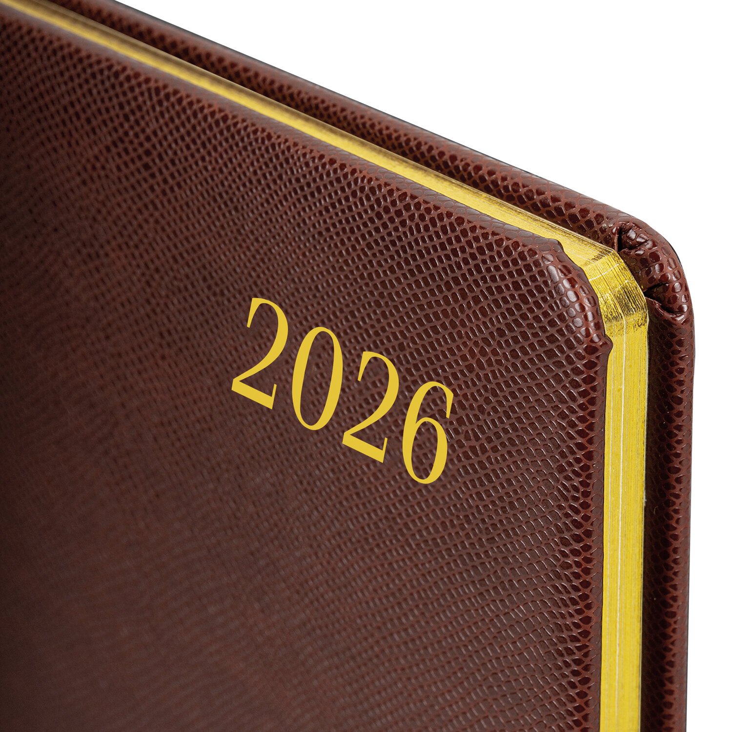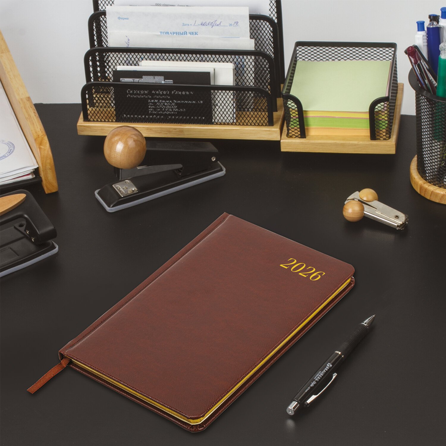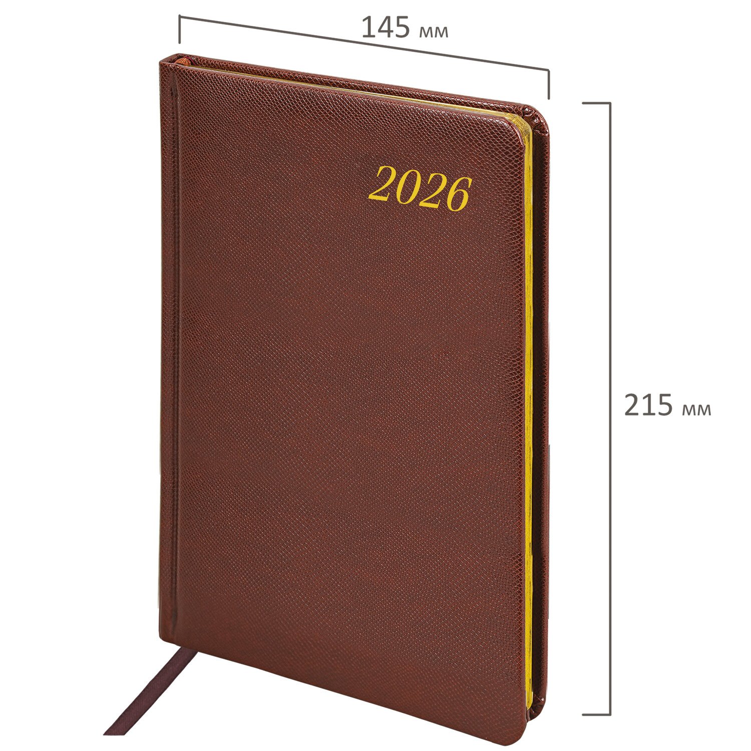 Еженедельник датированный 2026 А5 145х215мм BRAUBERG Imperial, под кожу, коричневый, 117173
