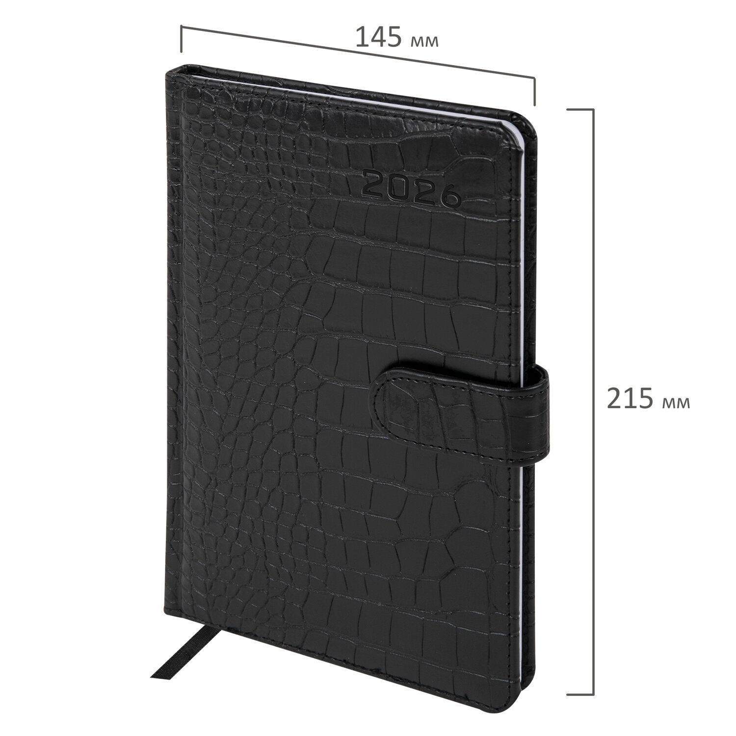 Еженедельник датированный 2026 А5 145х215мм BRAUBERG Party, под кожу, черный, 117180