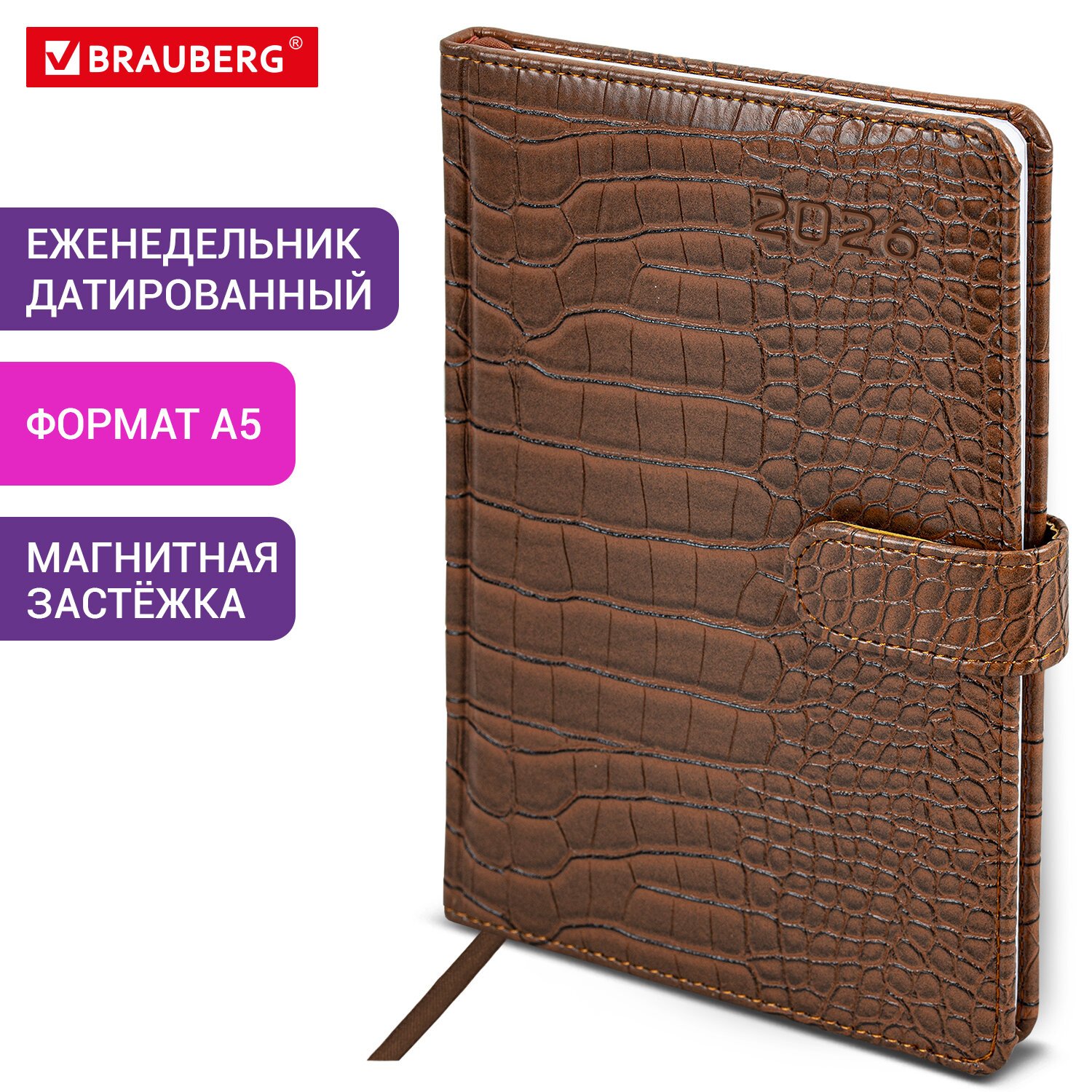 Еженедельник датированный 2026 А5 145х215мм BRAUBERG Party, под кожу, коричневый, 117177