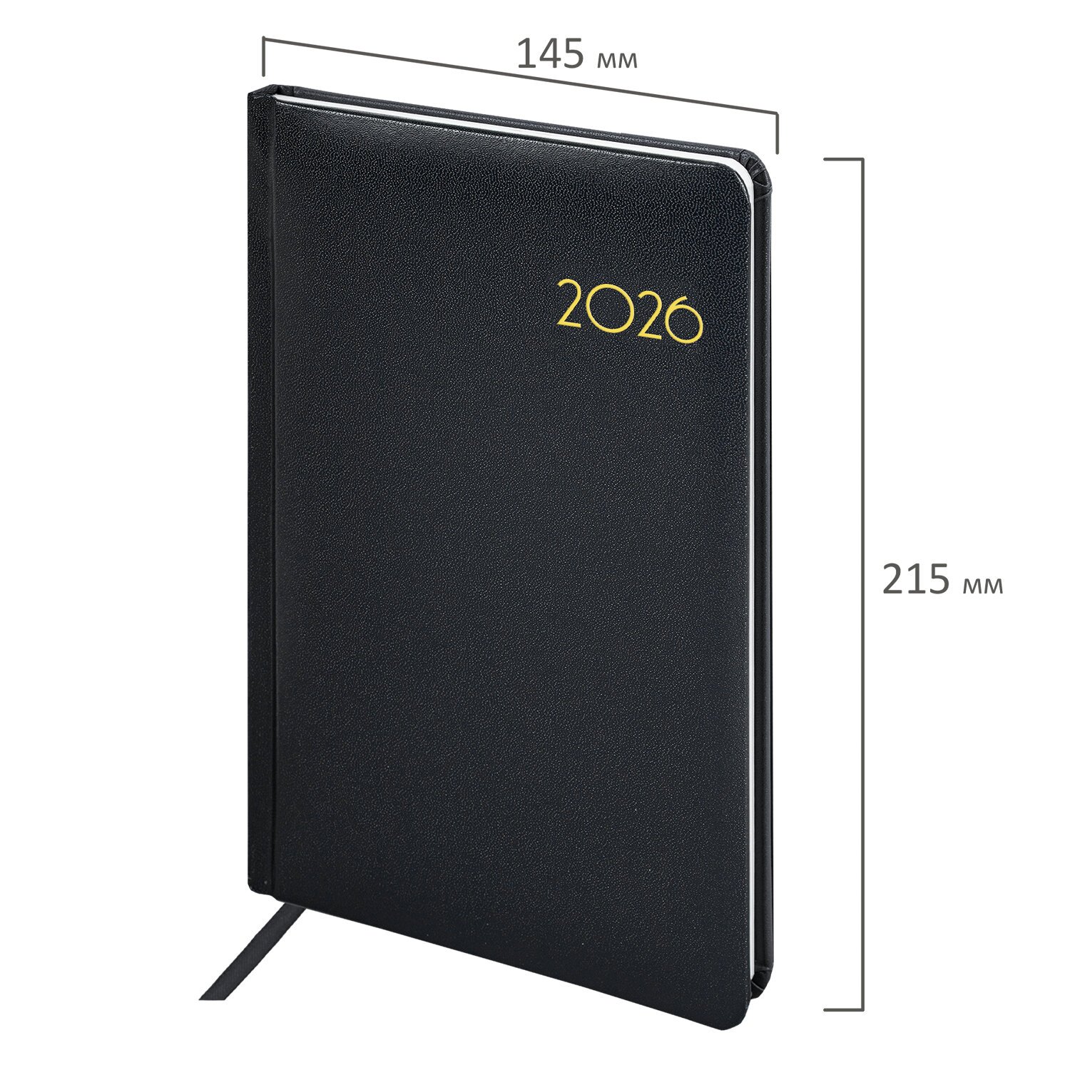 Еженедельник датированный 2026 А5 145х215мм BRAUBERG Imperial, под кожу, черный, 117175