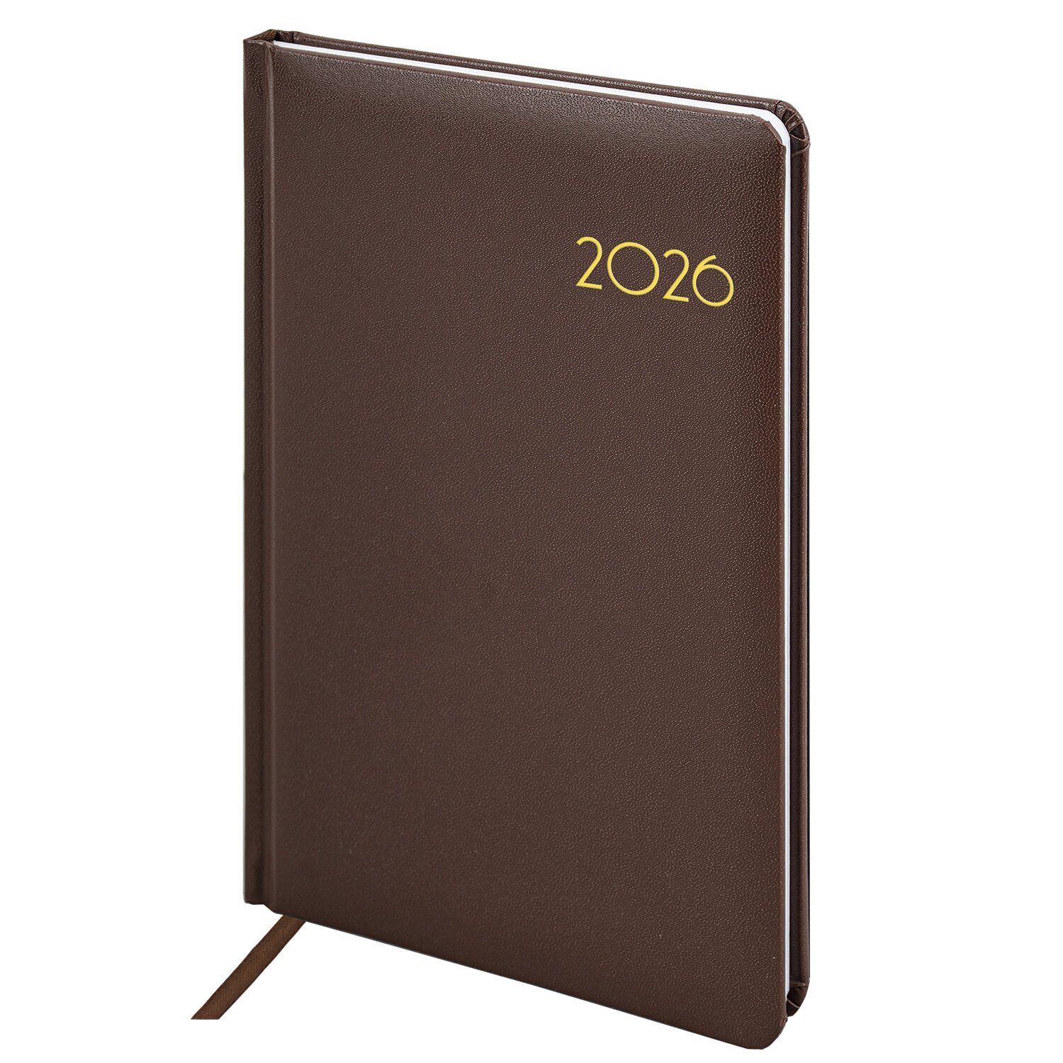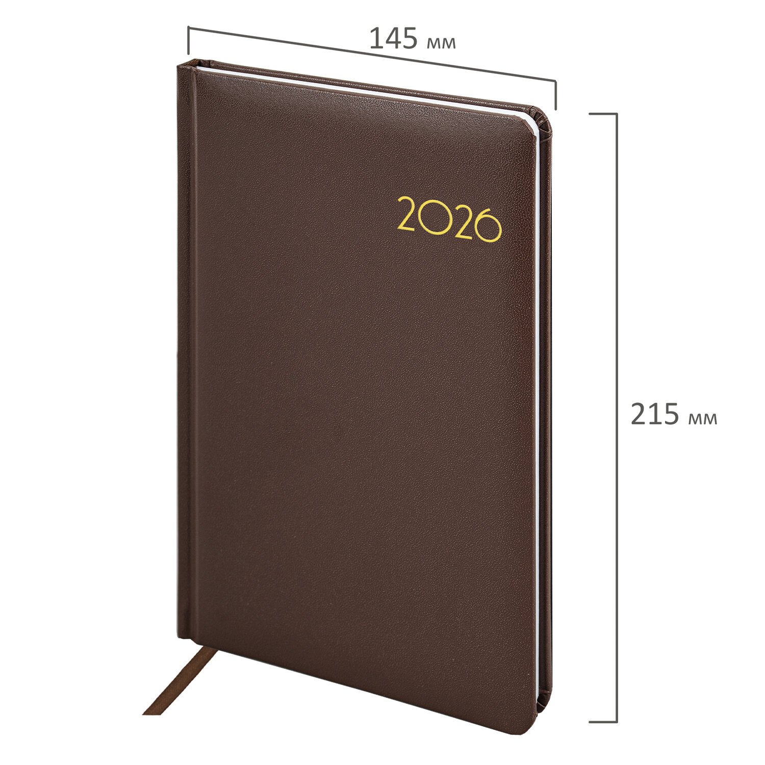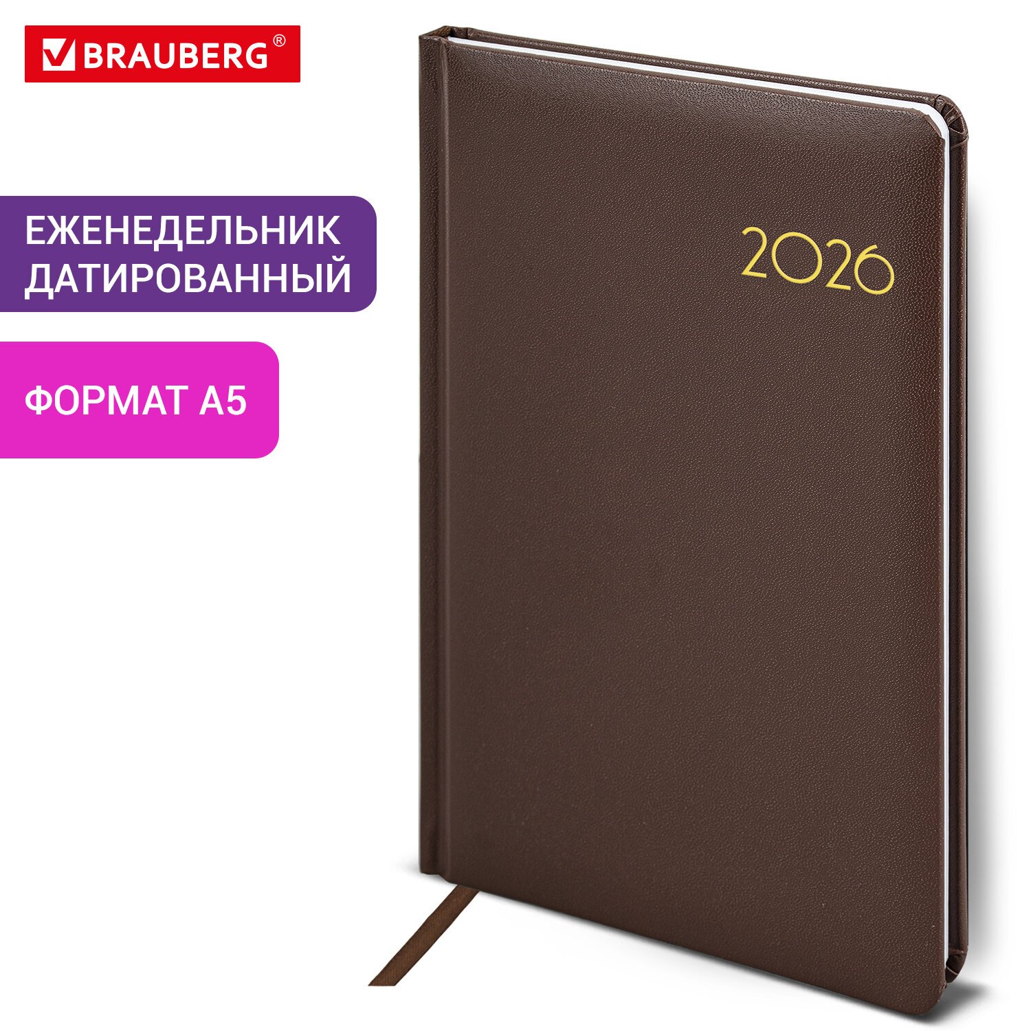 Еженедельник датированный 2026 А5 145х215мм BRAUBERG Select, балакрон, коричневый, 117183