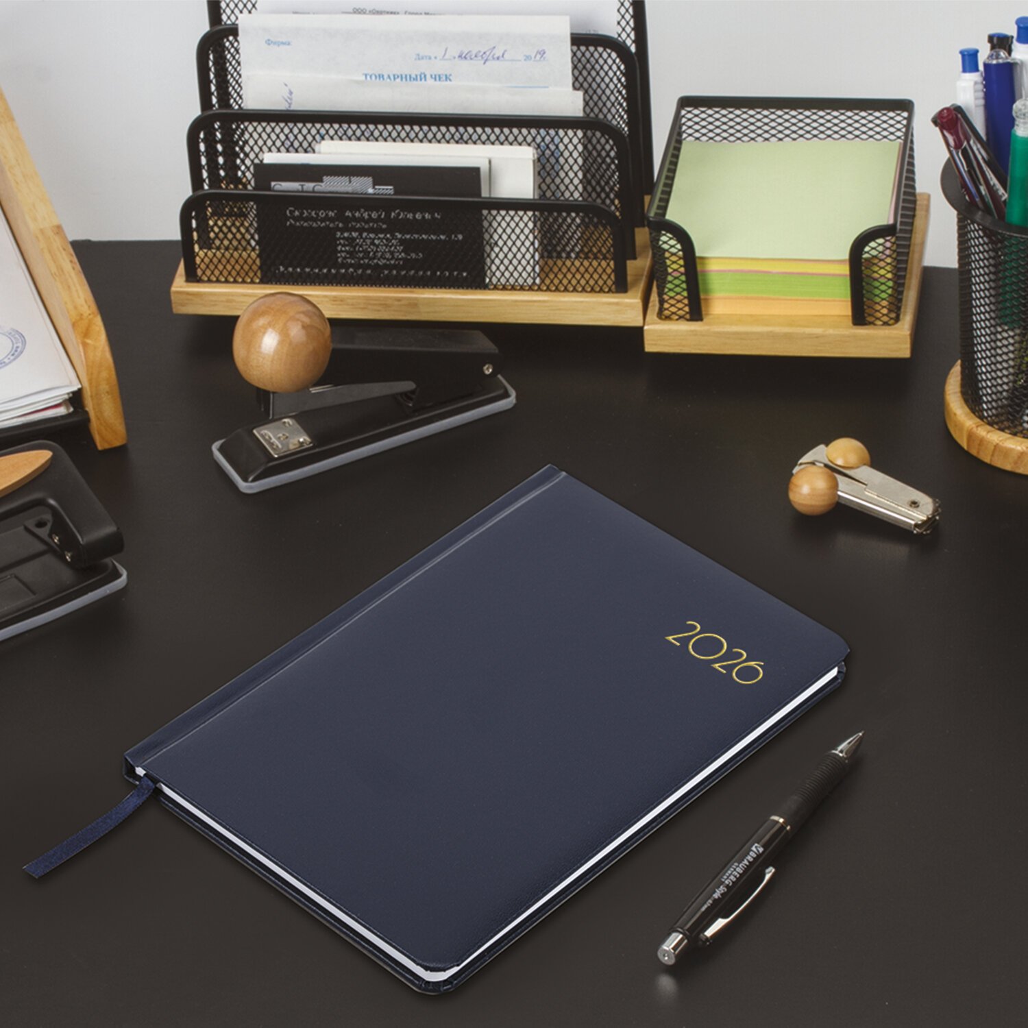 Еженедельник датированный 2026 А5 145х215мм BRAUBERG Select, балакрон, темно-синий, 117181