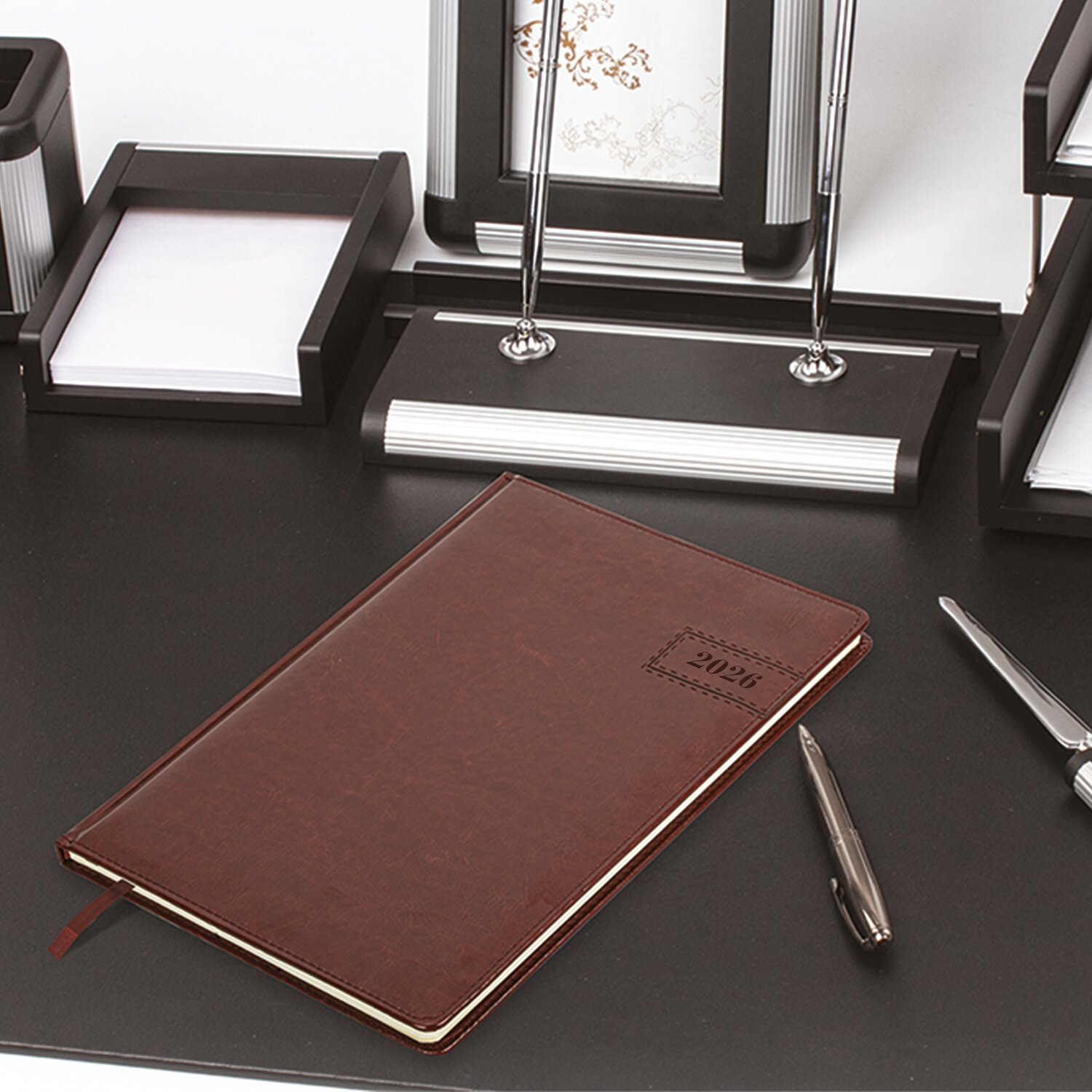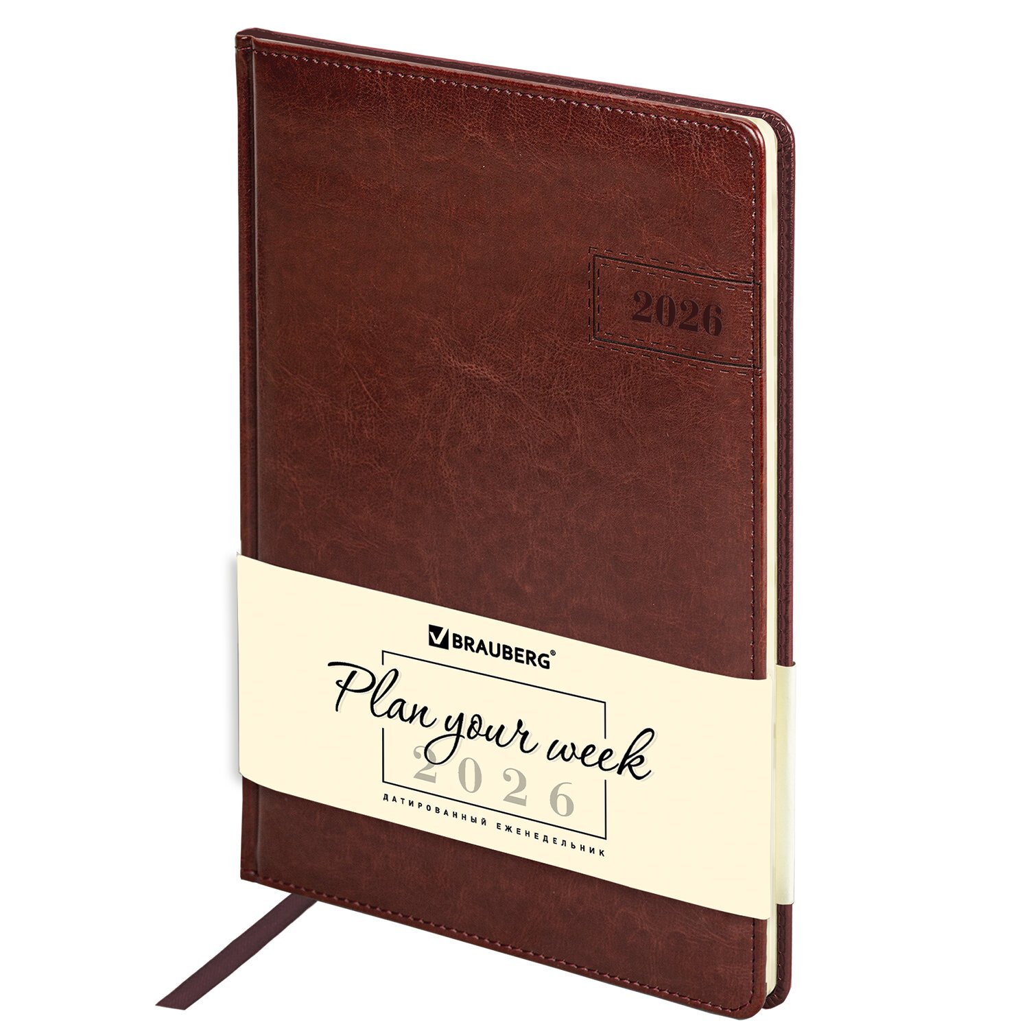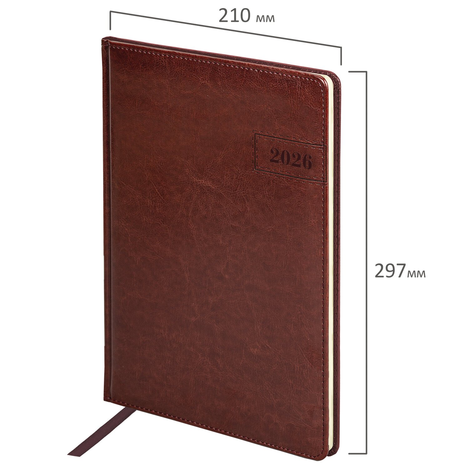 Еженедельник датированный 2026 БОЛЬШОЙ ФОРМАТ 210х297мм А4 BRAUBERG Imperial, под кожу, коричневый, 117156