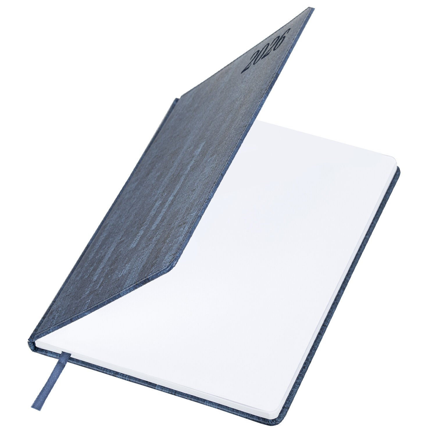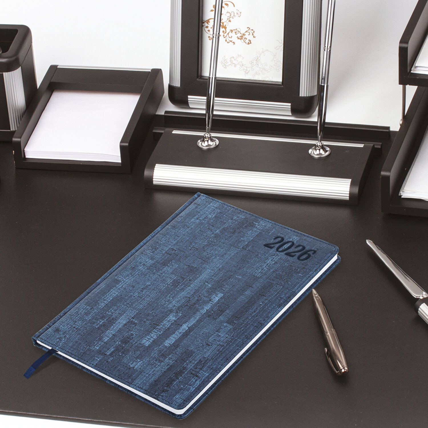 Еженедельник датированный 2026 БОЛЬШОЙ ФОРМАТ 210х297мм А4 BRAUBERG Wood, под кожу, синий, 117158