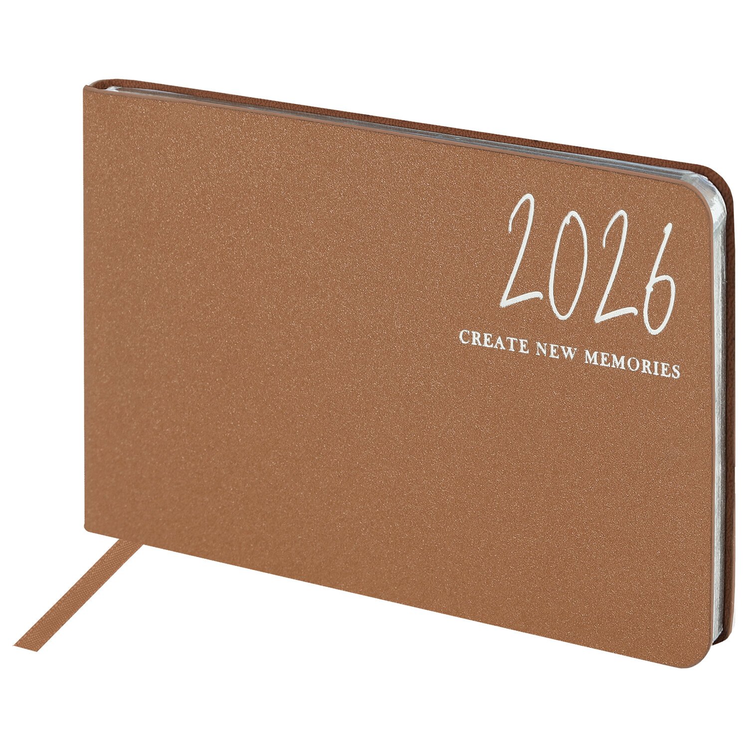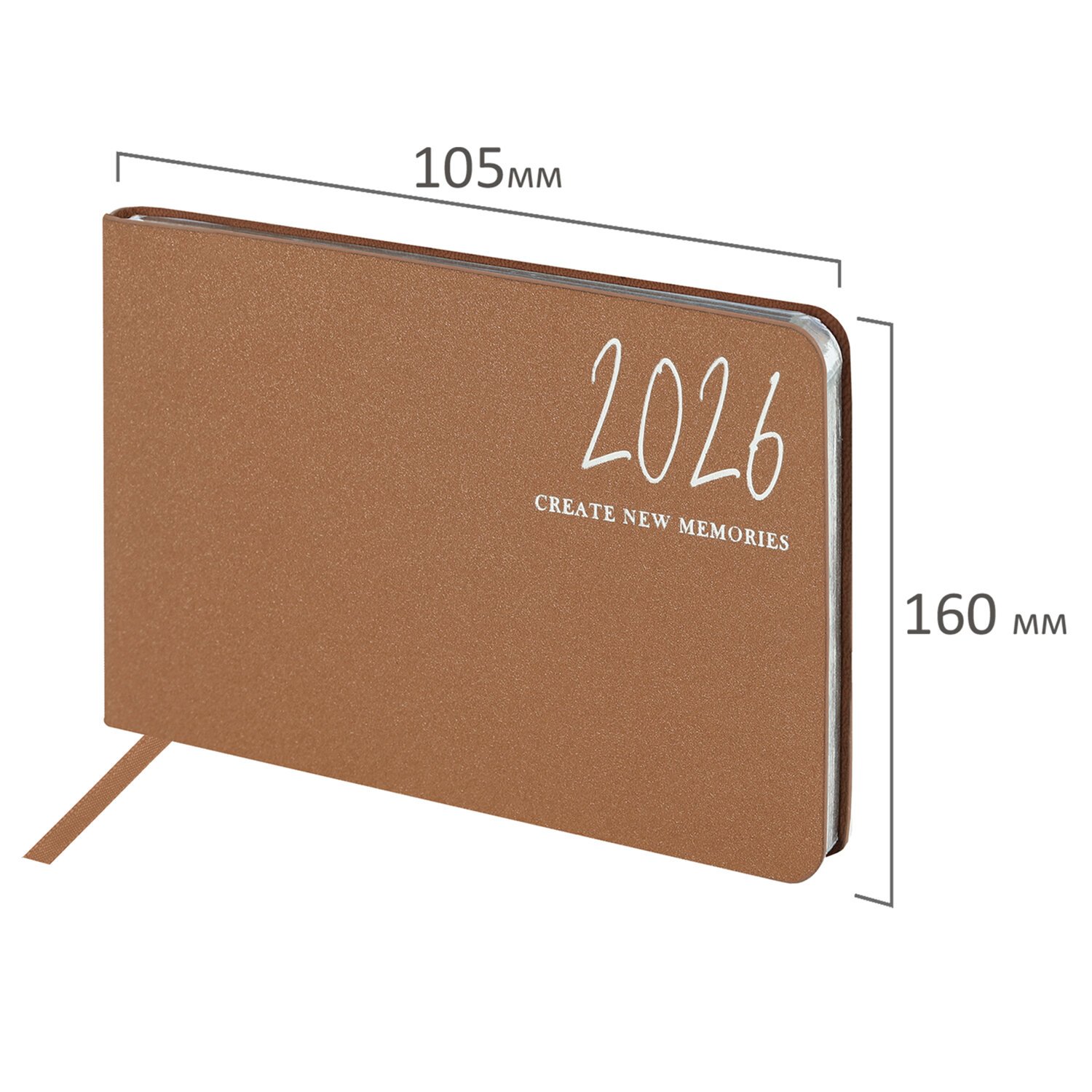 Еженедельник датированный 2026 МАЛЫЙ ФОРМАТ 105х160мм А6 BRAUBERG Blaze, фольга, бежевый, 117216