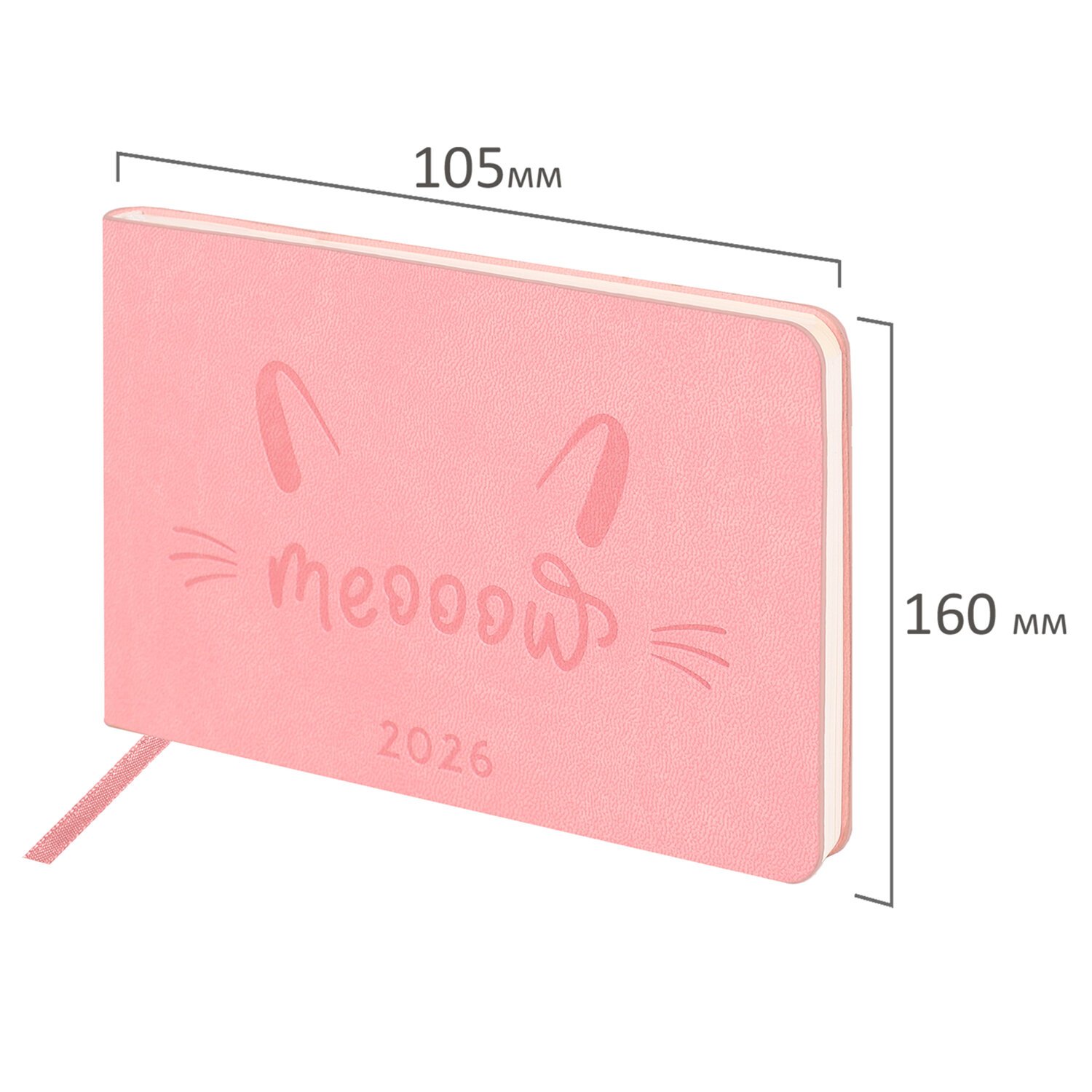 Еженедельник датированный 2026 МАЛЫЙ ФОРМАТ 105х160мм А6 BRAUBERG Imprint, тиснение, розовый, 117213