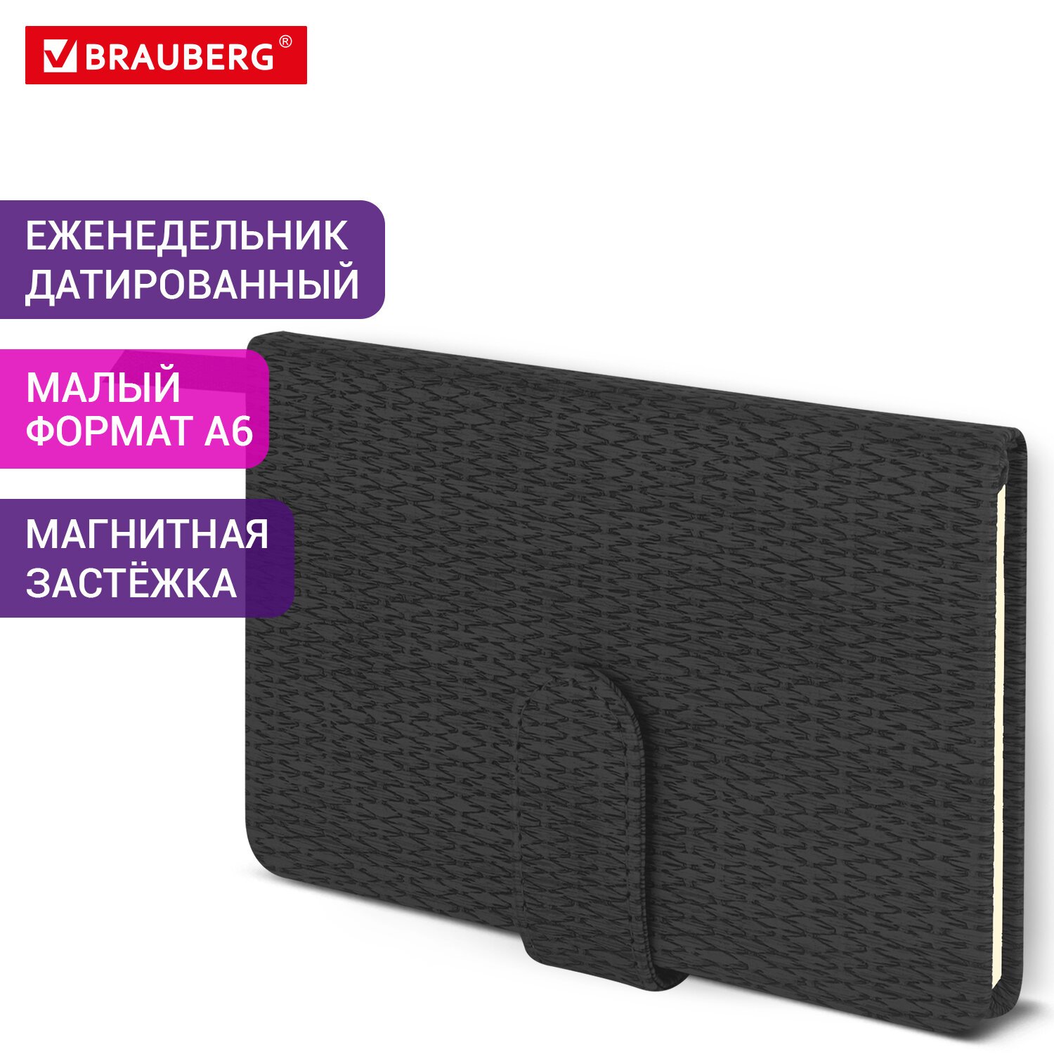 Твердая обложка еженедельника BRAUBERG "Augustus" стилизована под кожу с текстурной выработкой и фиксируется магнитной застежкой, поэтому еженедельник не откроется в сумке или портфеле и страницы не помнутся. Подходит для горячего тиснения.