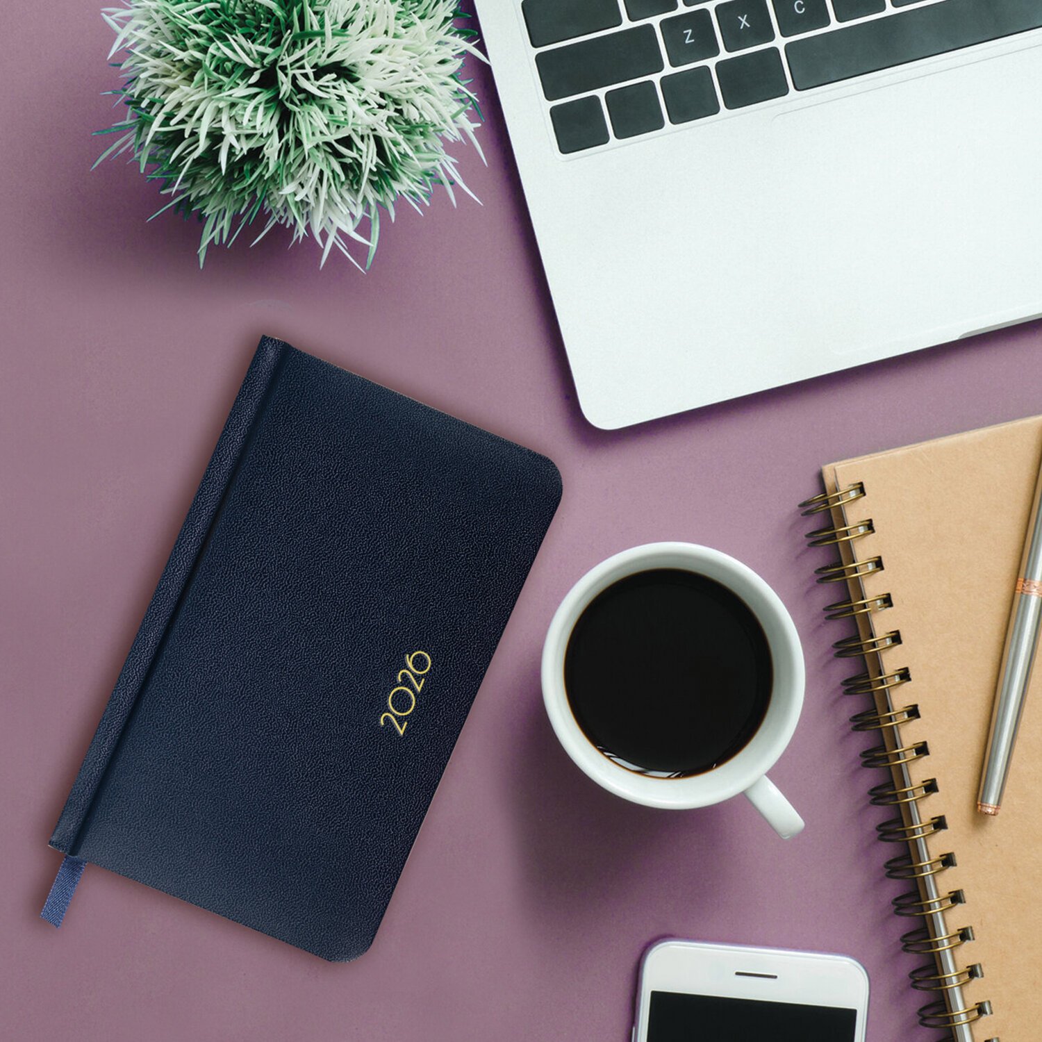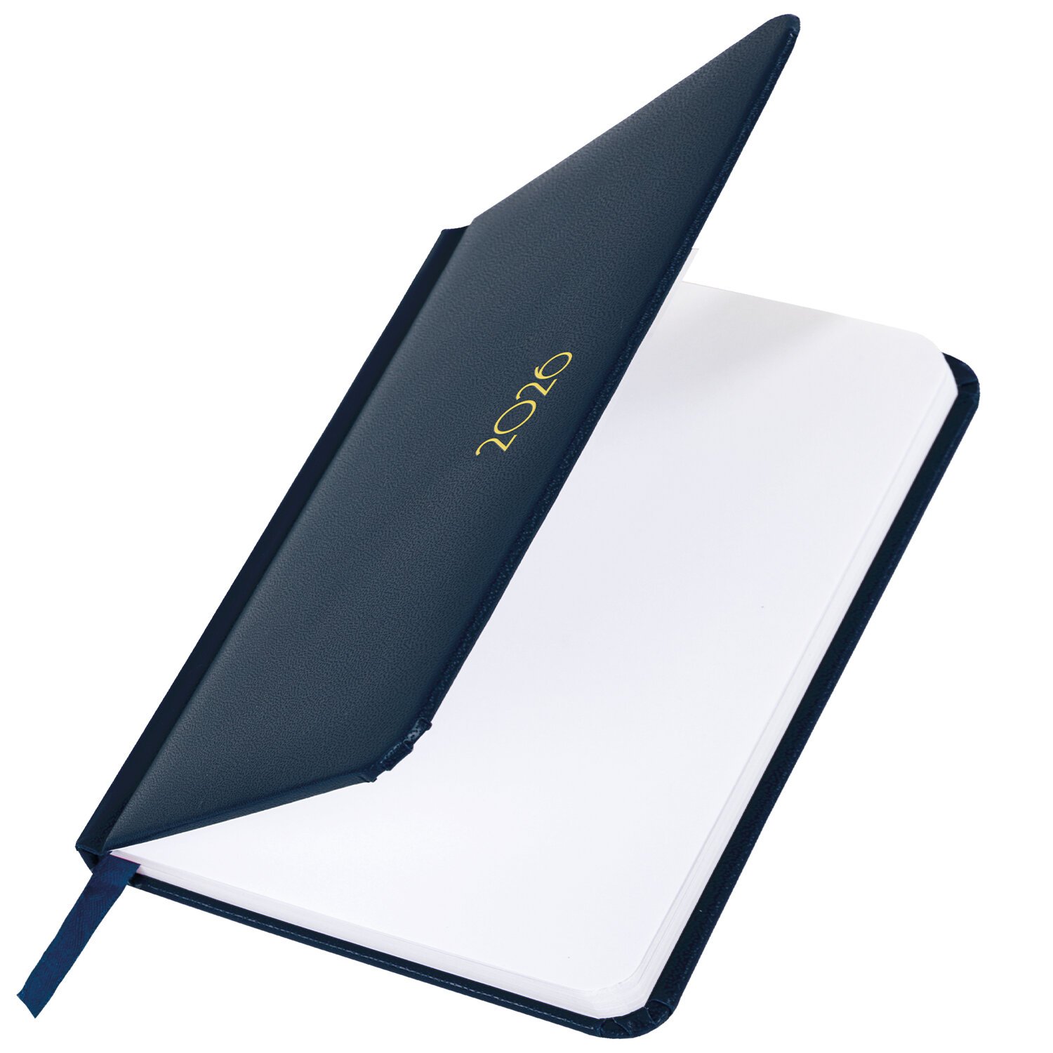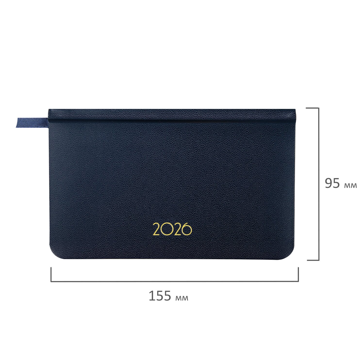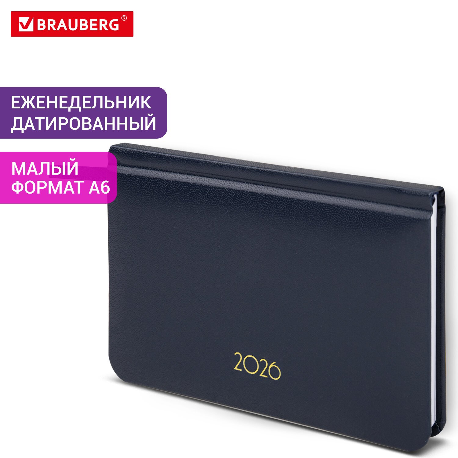 Еженедельник датированный 2026 МАЛЫЙ ФОРМАТ 95х155мм А6 BRAUBERG Select, балакрон, темно-синий, 117192