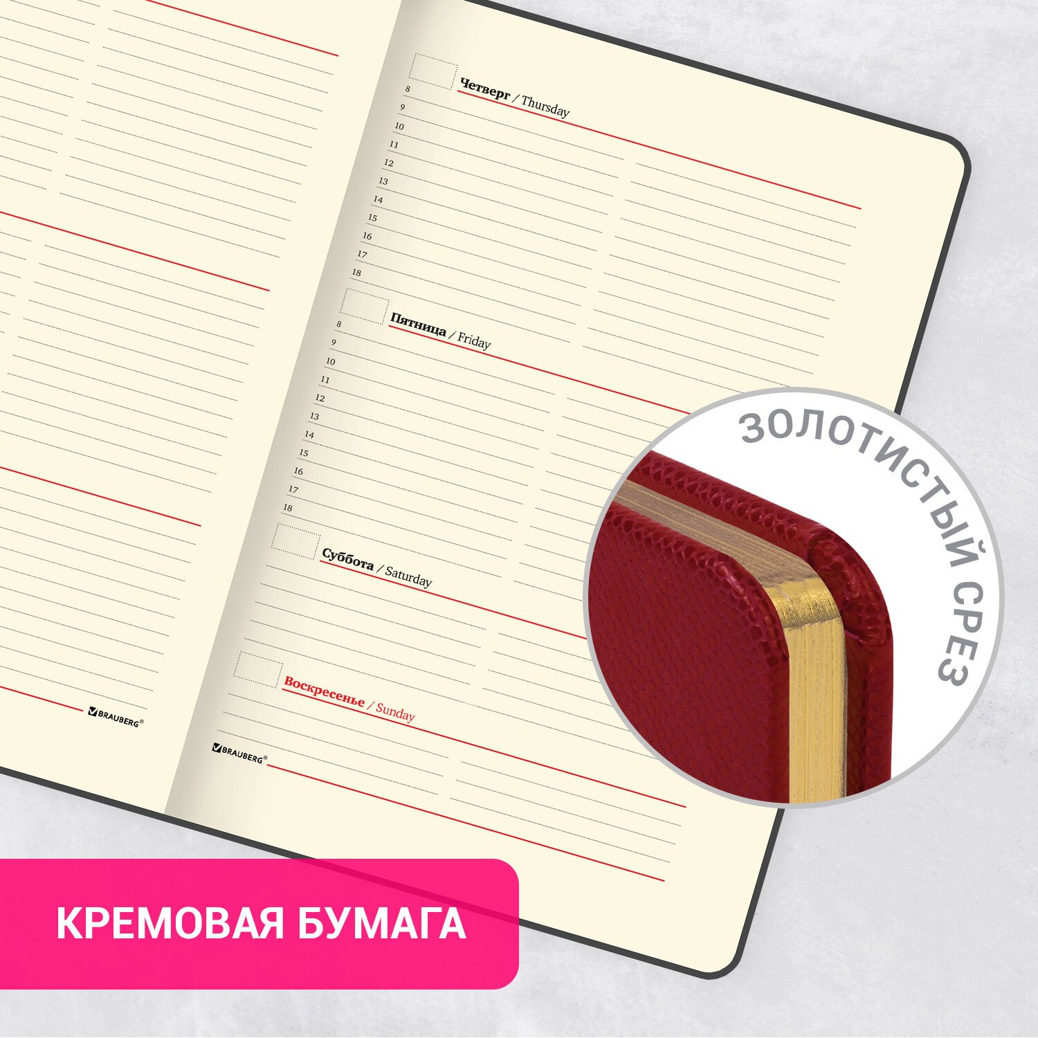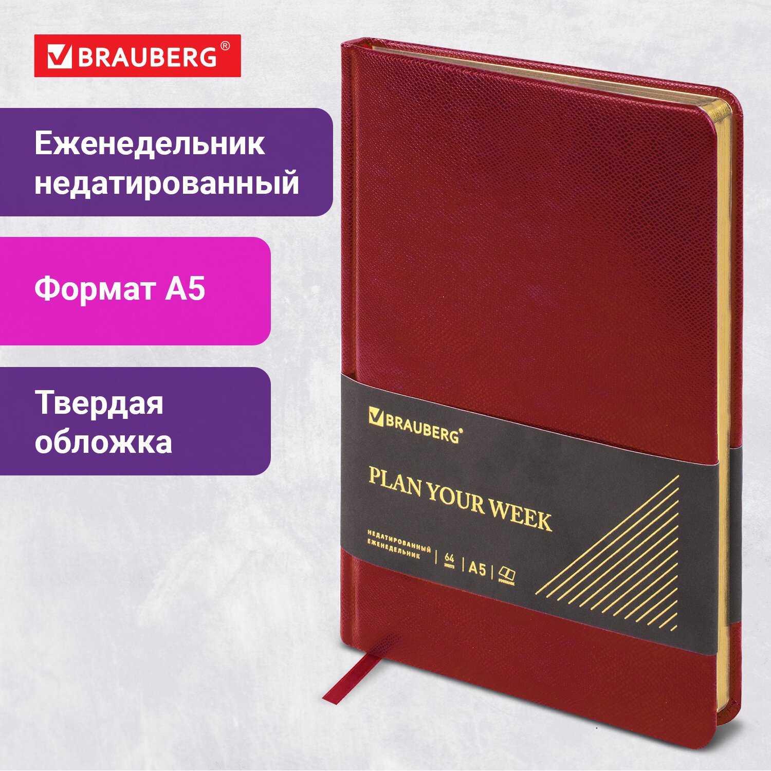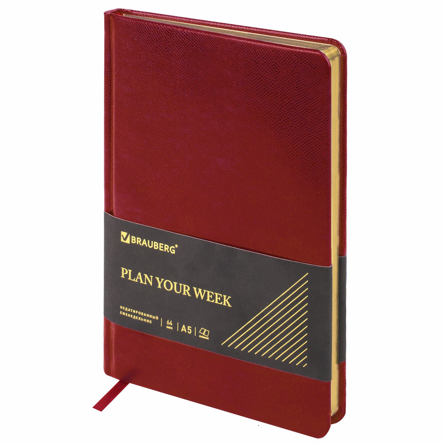 Еженедельник недатированный А5 145х215 мм, BRAUBERG "Party", под кожу, 64 л., красный, 114474