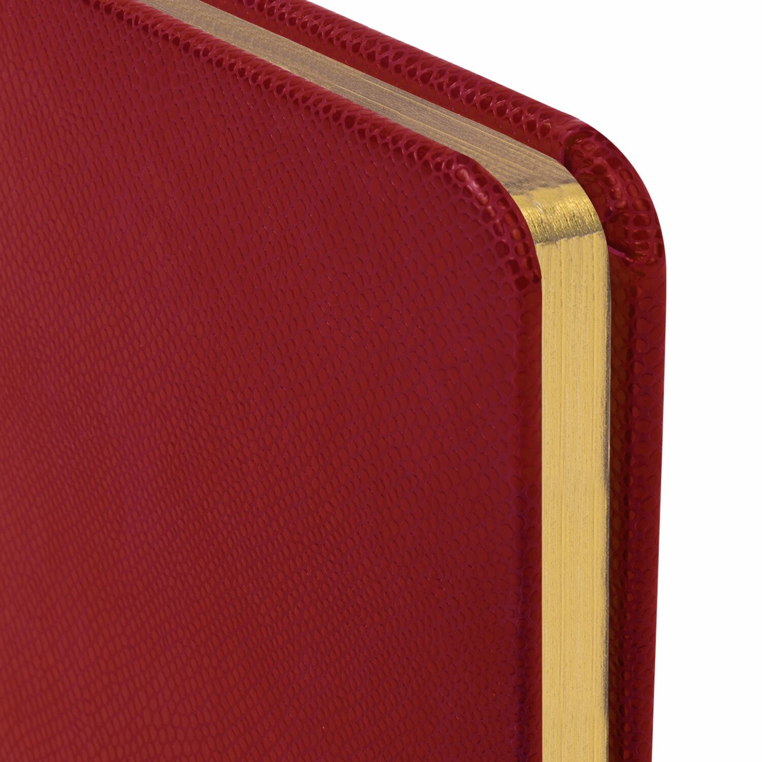 Внутренний блок включает 64 листа тонированной бумаги плотностью 70 г/м2. Благодаря стандартному формату А5 еженедельник удобно использовать как в офисе, так и на выездных деловых встречах. Твердая обложка, стилизованная под кожу рептилии, подходит для горячего тиснения. Срез еженедельника фольгирован золотой фольгой, что придает ему особый шарм. Дополнением является закладка-ляссе, с помощью которой при необходимости можно быстро открыть еженедельник на нужной странице. Помимо прочего, еженедельник снабжен обширным справочным материалом. Выполнен в ярком красном цвете.