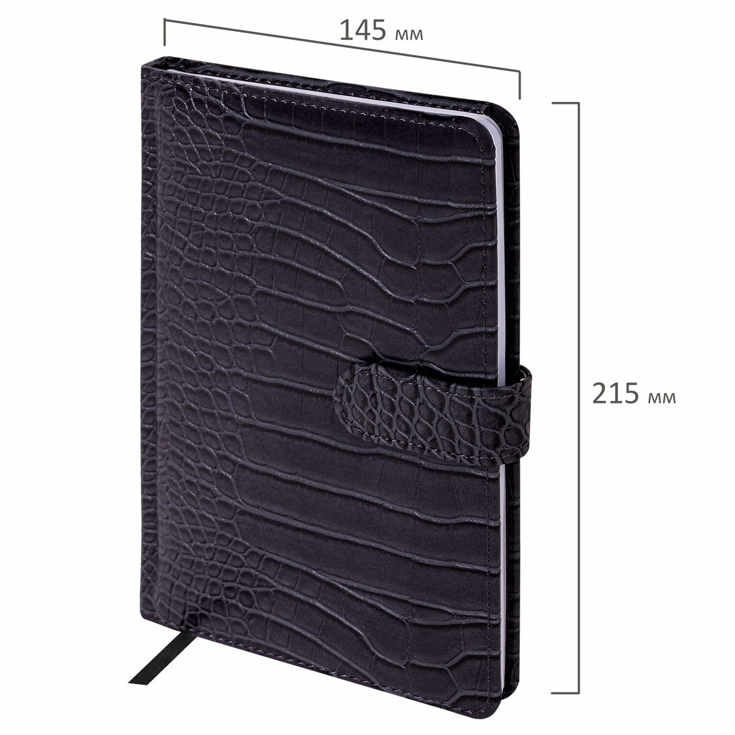 Еженедельник недатированный А5, 145х215 мм, BRAUBERG "Iguana", под кожу, 64 л., черный, 114478