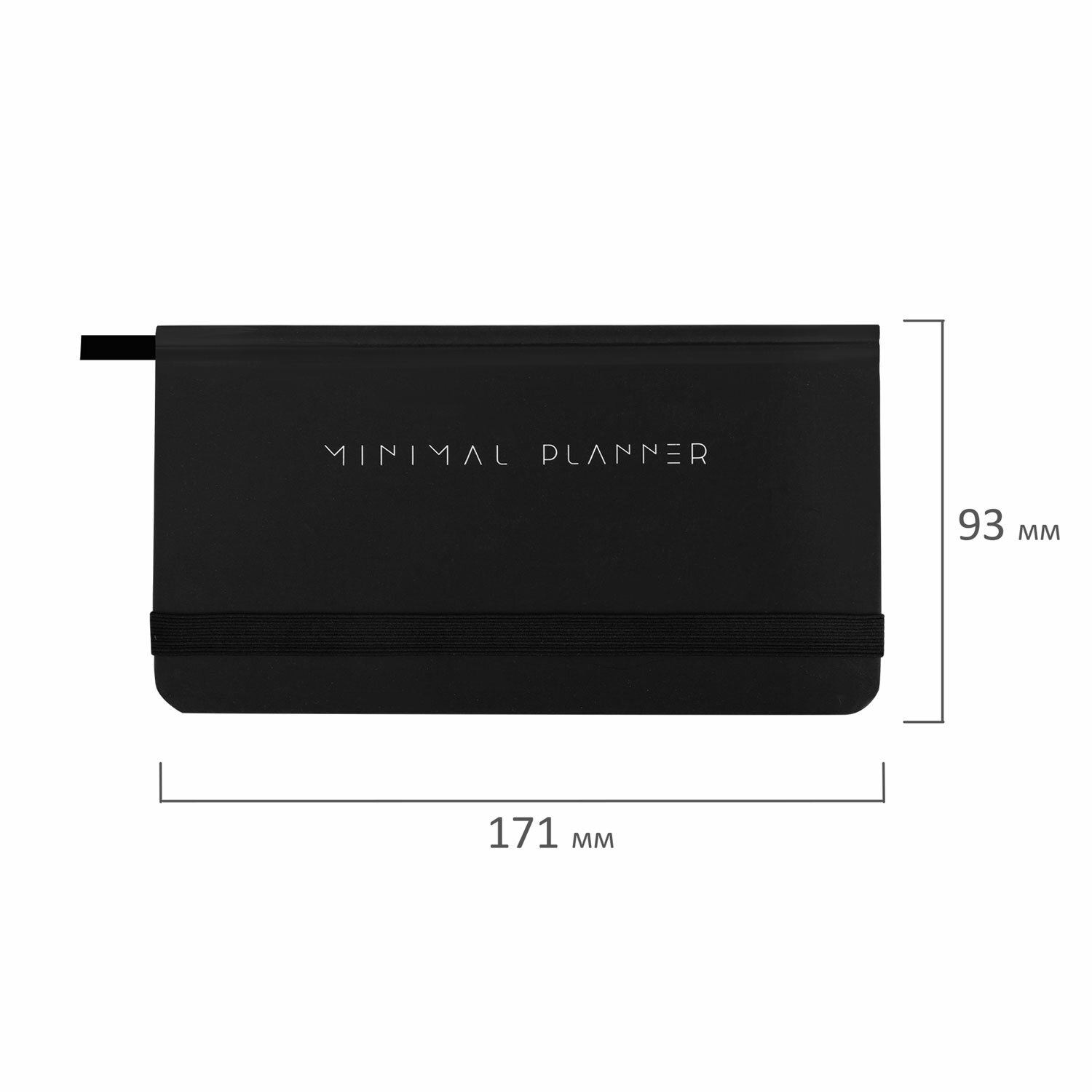 Еженедельник недатированный с резинкой 171х93мм, BRAUBERG, твердый, черный, 64л, Minimal, 116309