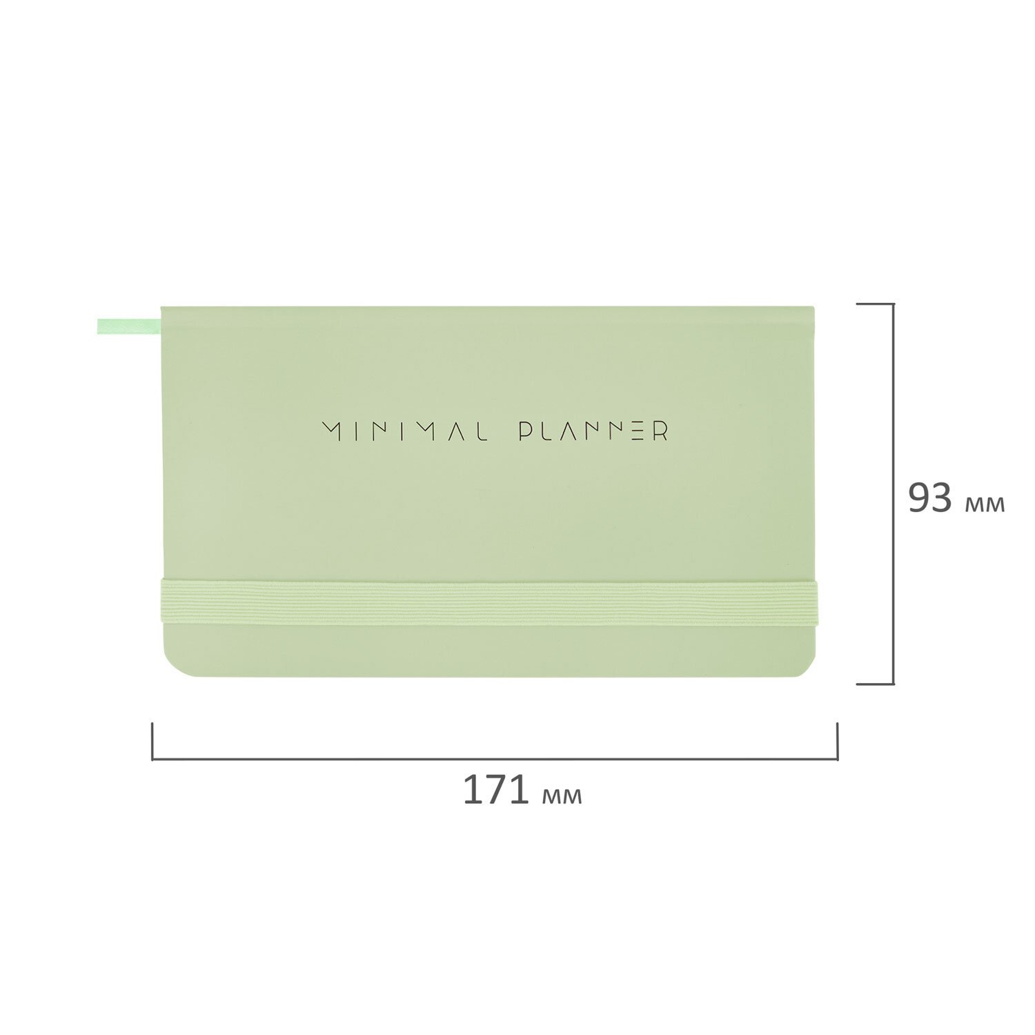 Еженедельник недатированный с резинкой 171х93мм, BRAUBERG, твердый, зеленый, 64л, Minimal, 116314