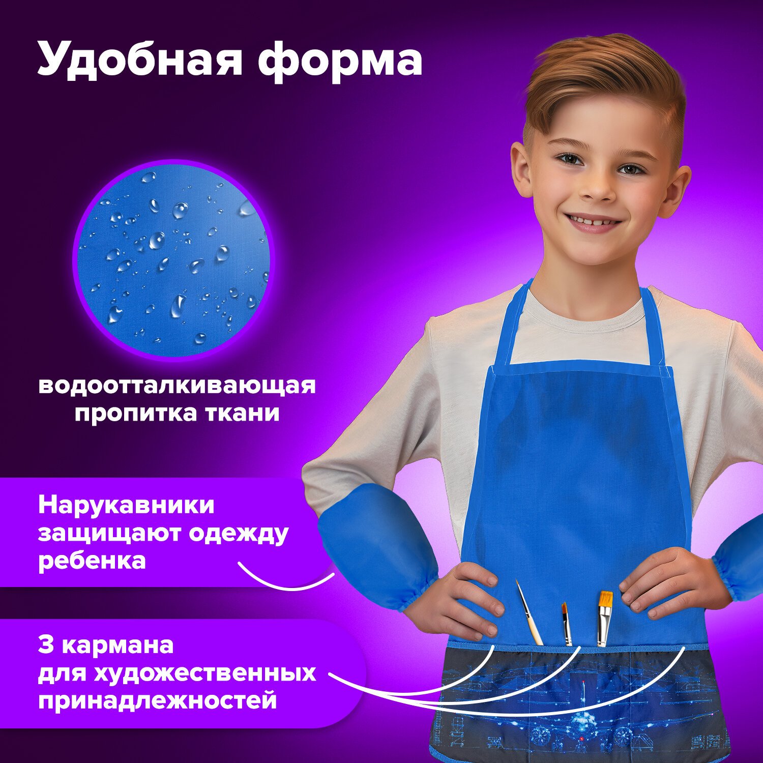 Фартук с нарукавниками BRAUBERG - незаменимая вещь для защиты одежды на уроках труда и занятиях творчеством. Фартук изготовлен из водоотталкивающего материала, предназначен для многоразового использования.