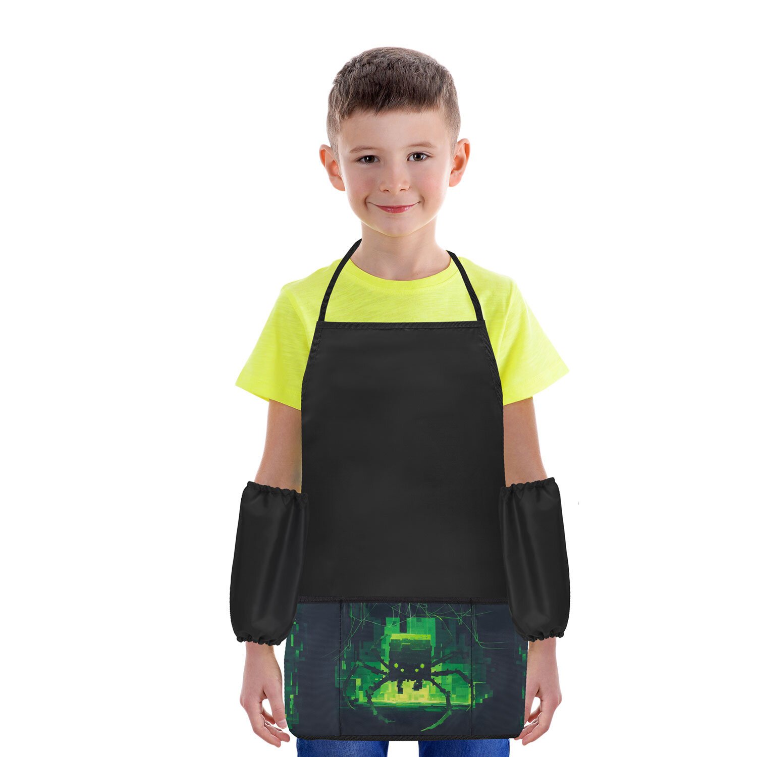 Фартук с нарукавниками для уроков труда BRAUBERG, 3 кармана, 46x54 см, Digital spider, 273644
