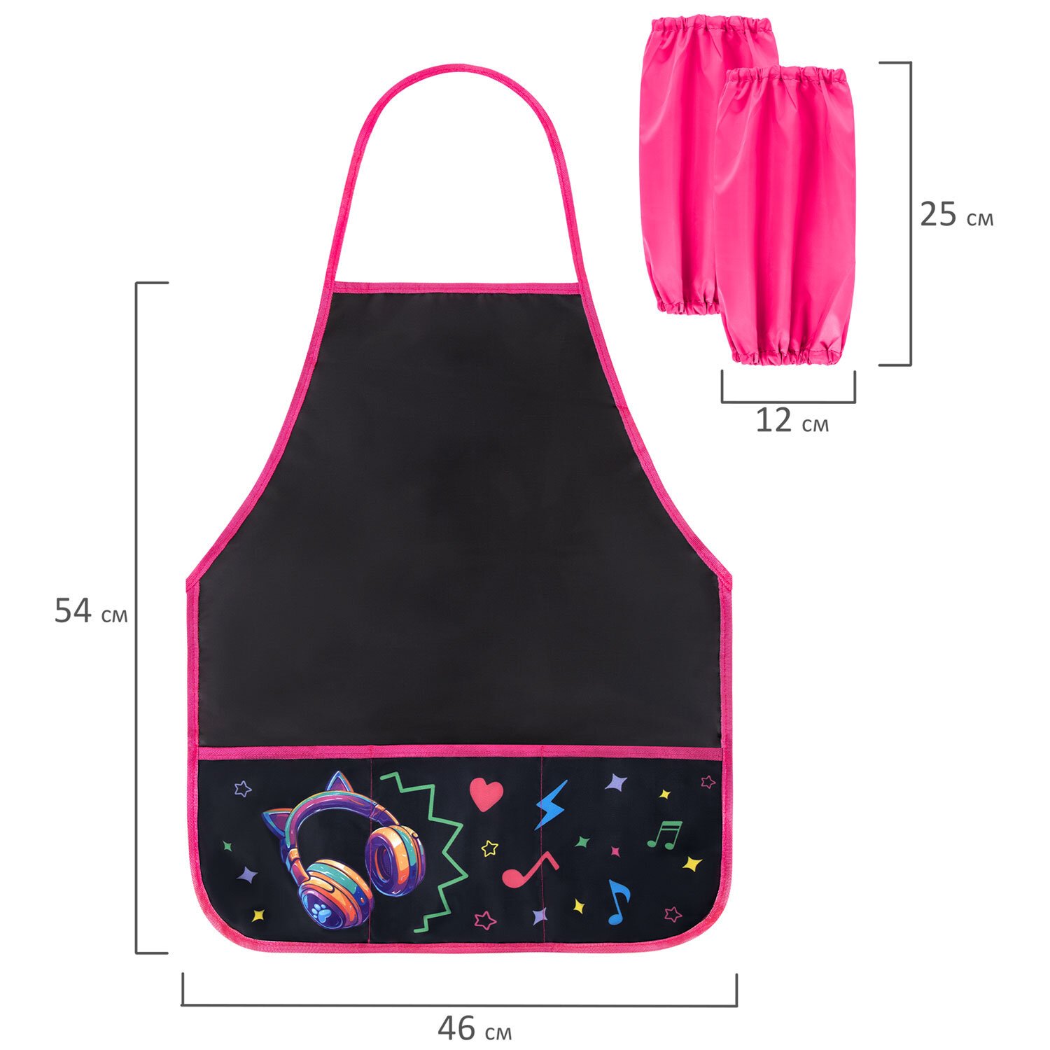 Фартук с нарукавниками для уроков труда BRAUBERG, 3 кармана, 46x54 см, Headphones, 273643