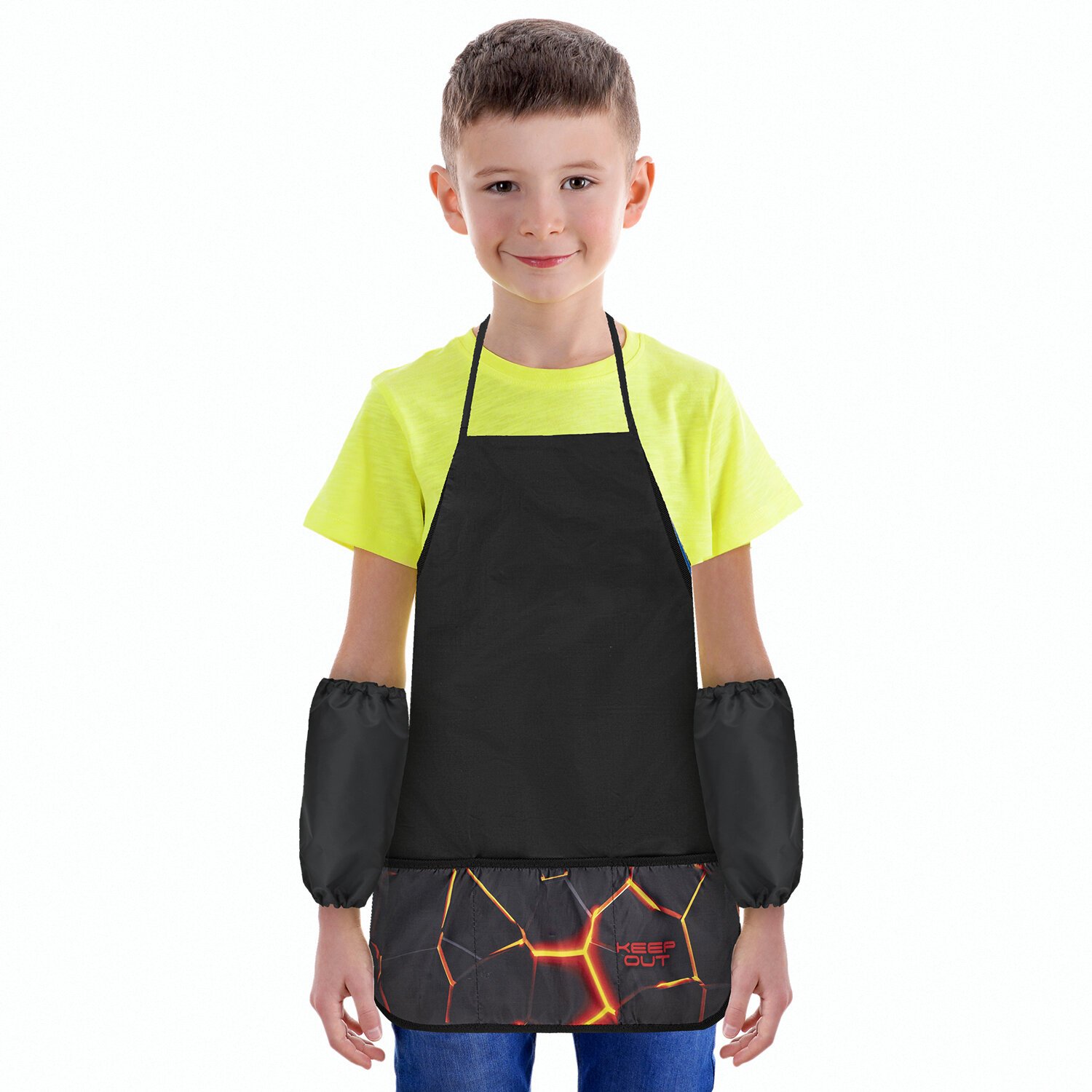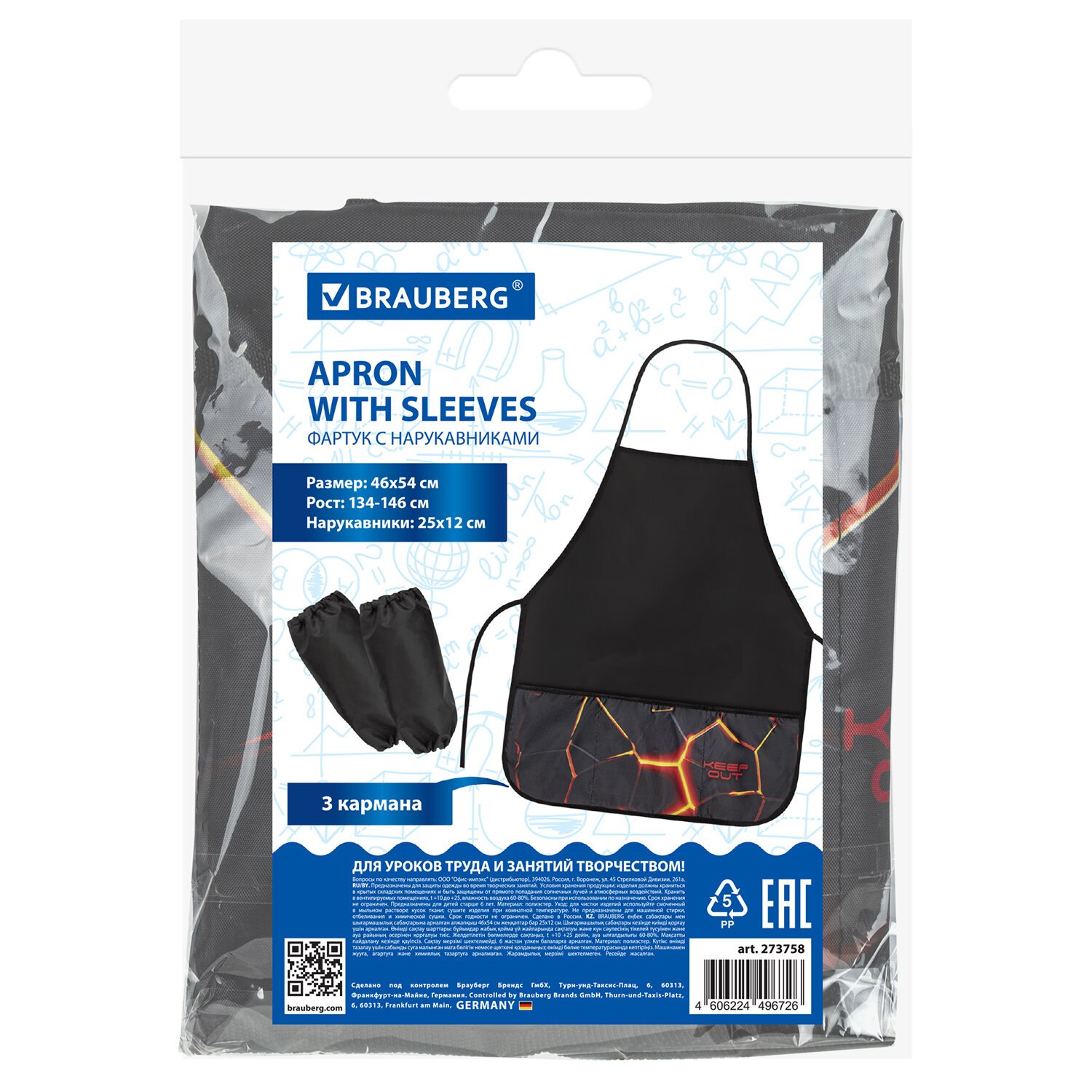 Фартук с нарукавниками для уроков труда BRAUBERG, 3 кармана, 46x54 см, Keep out, 273758